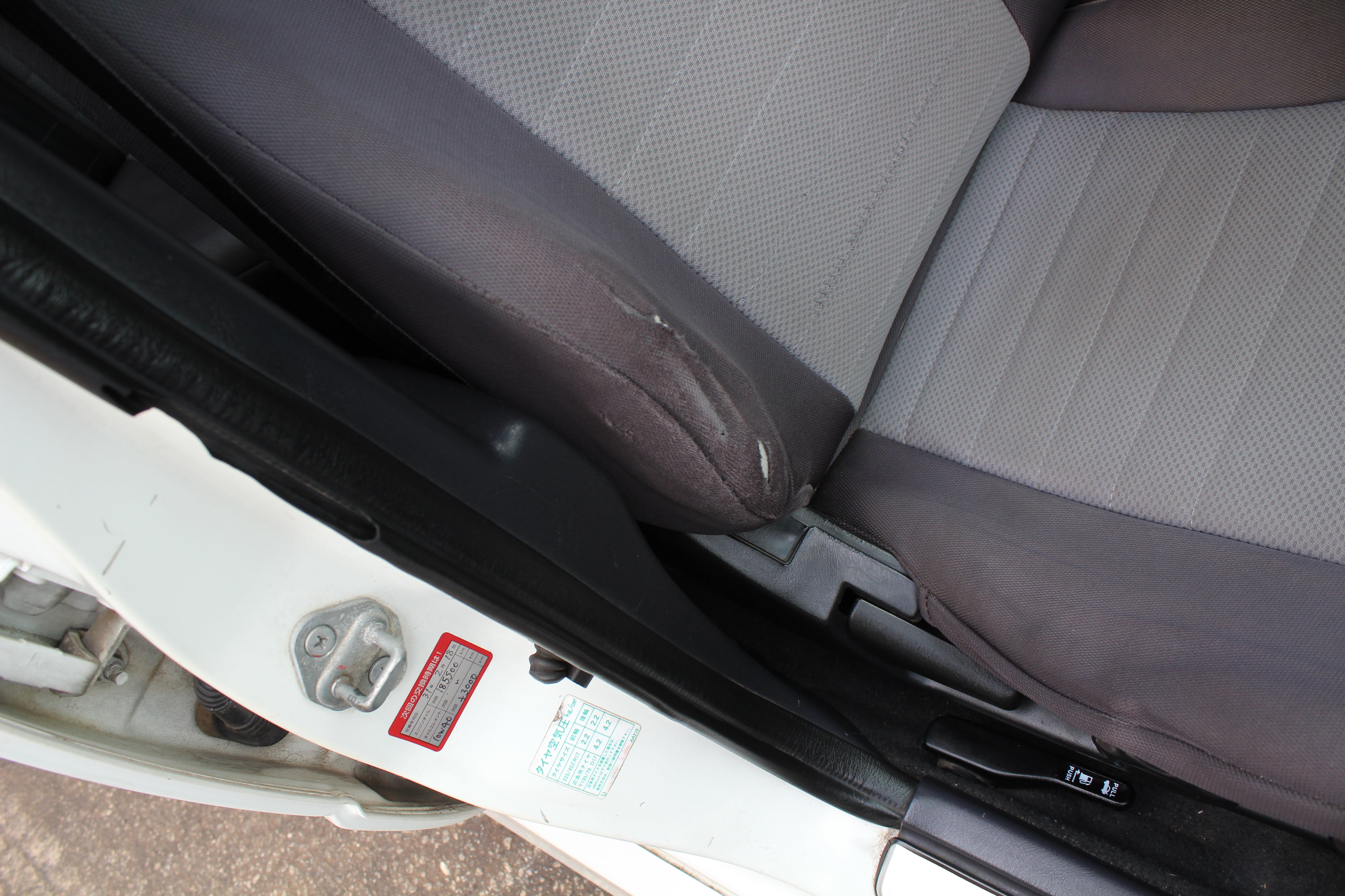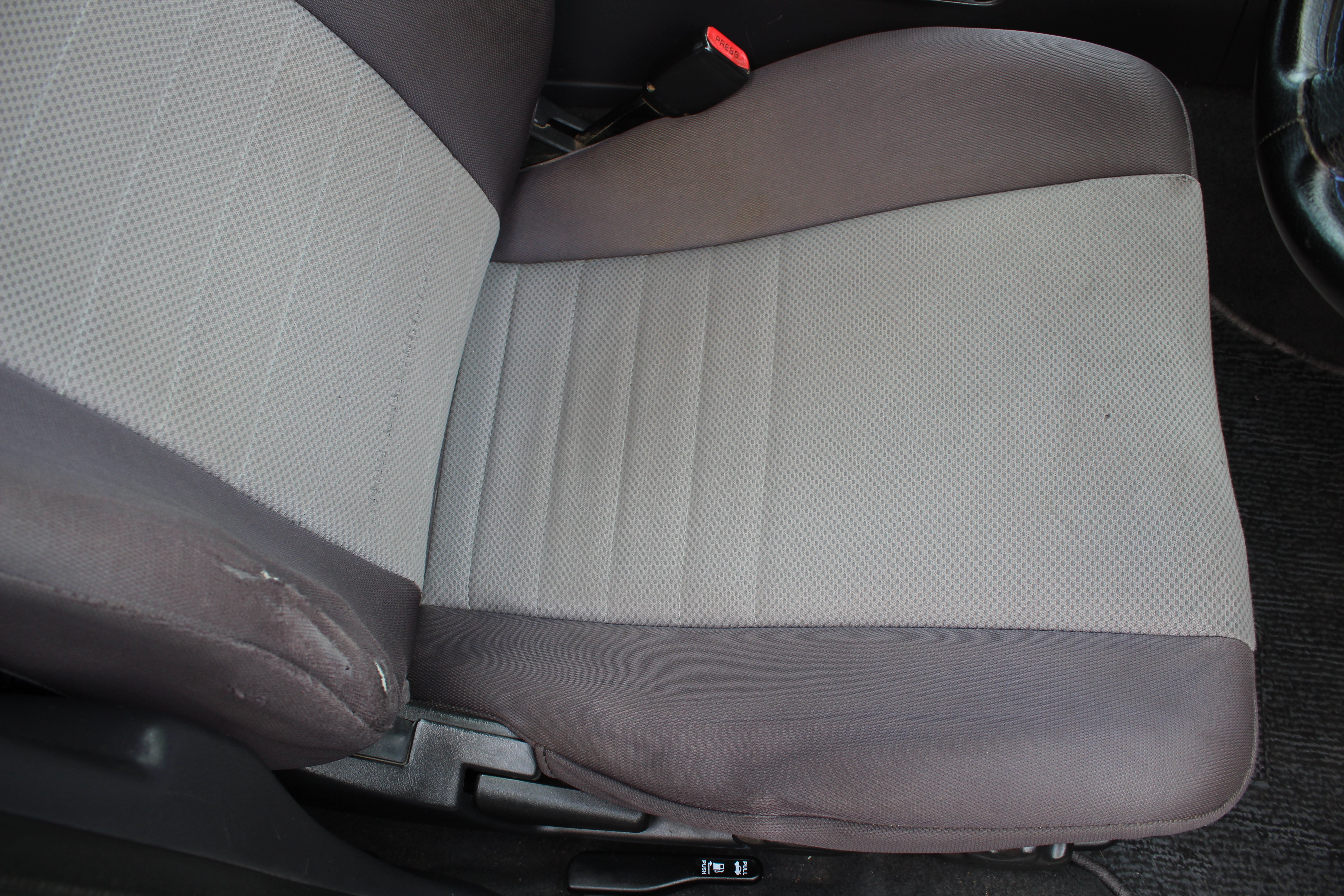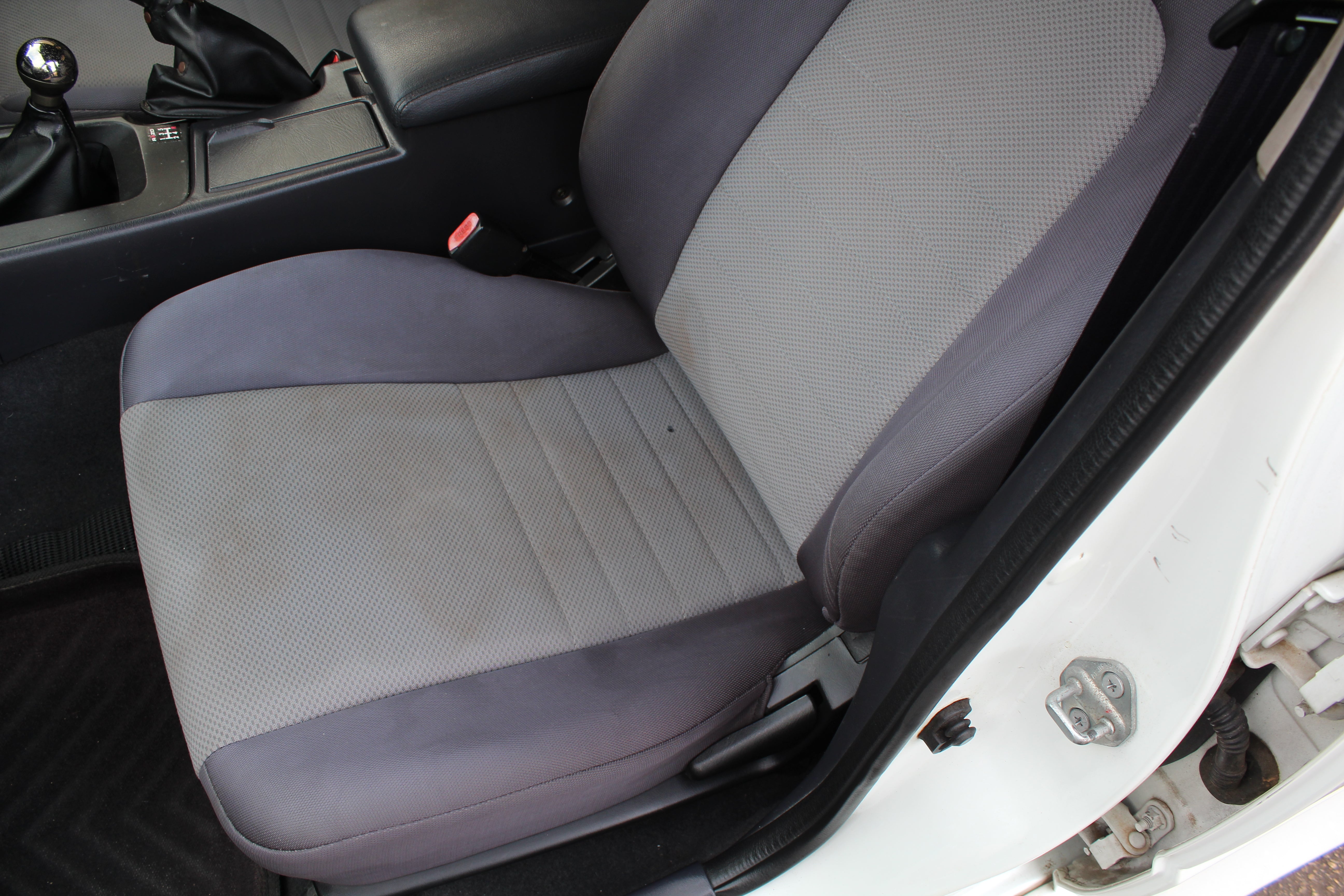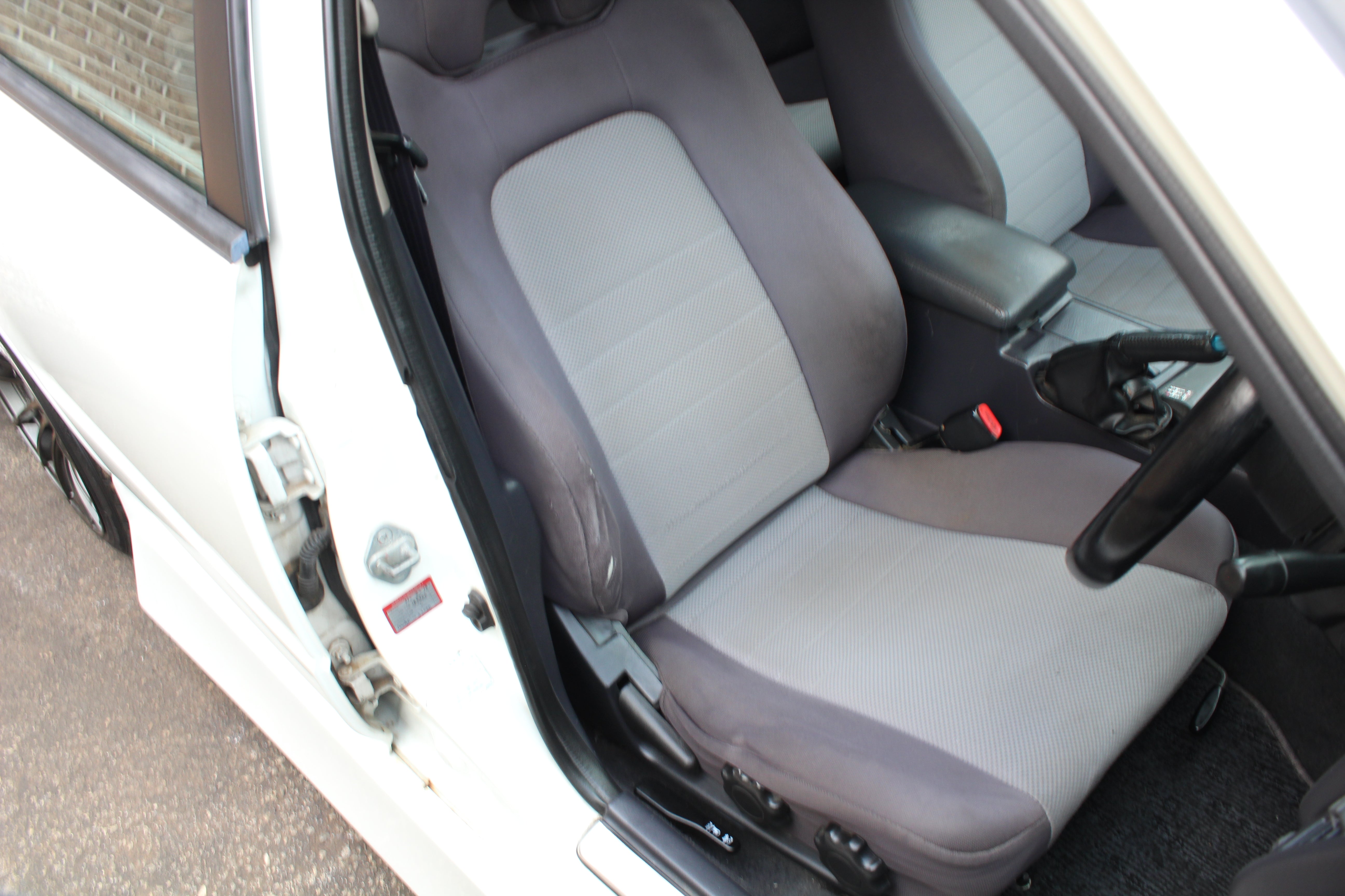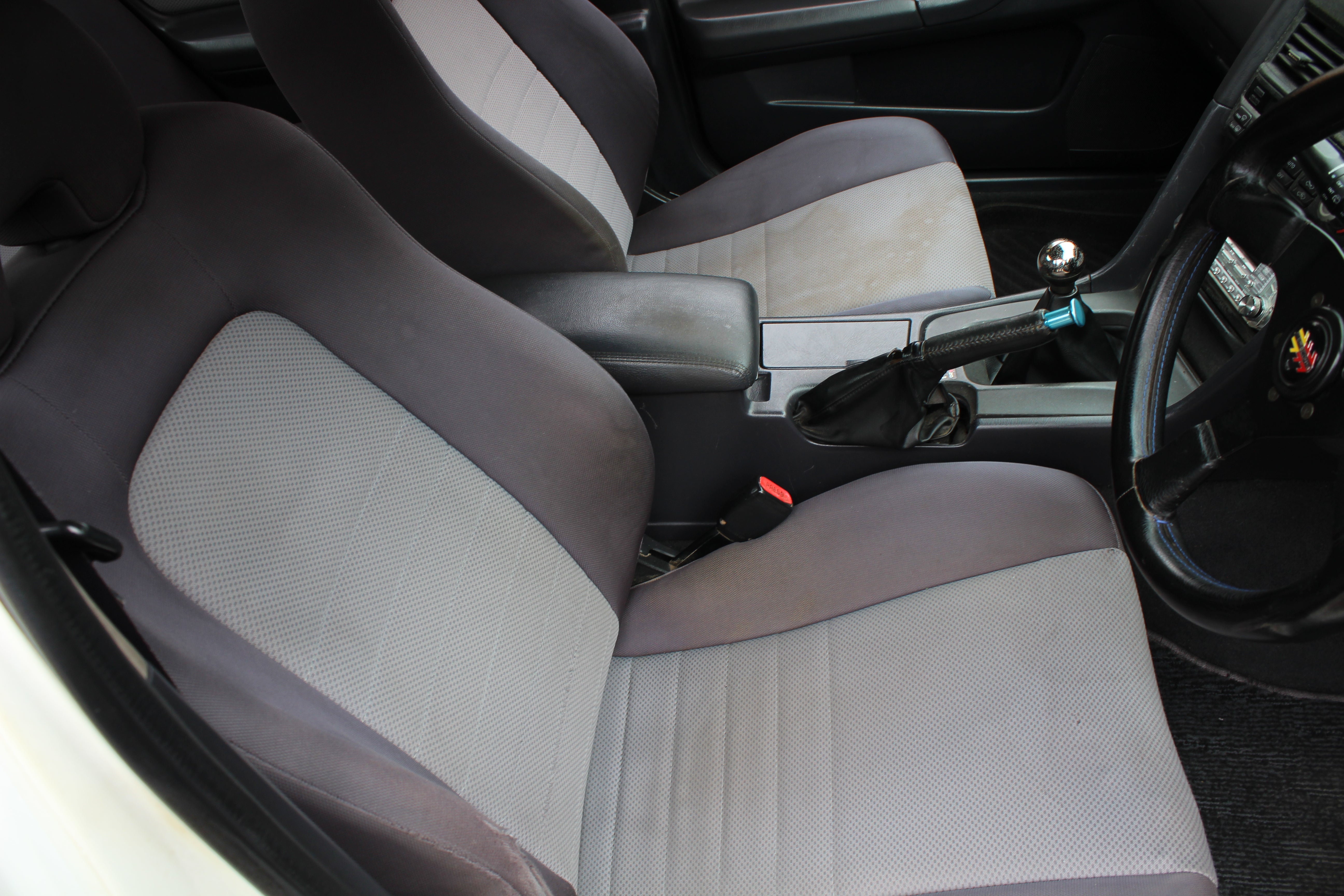 Interior: Driver seat bolster wear, seat stains, cigarette burn in passenger seat