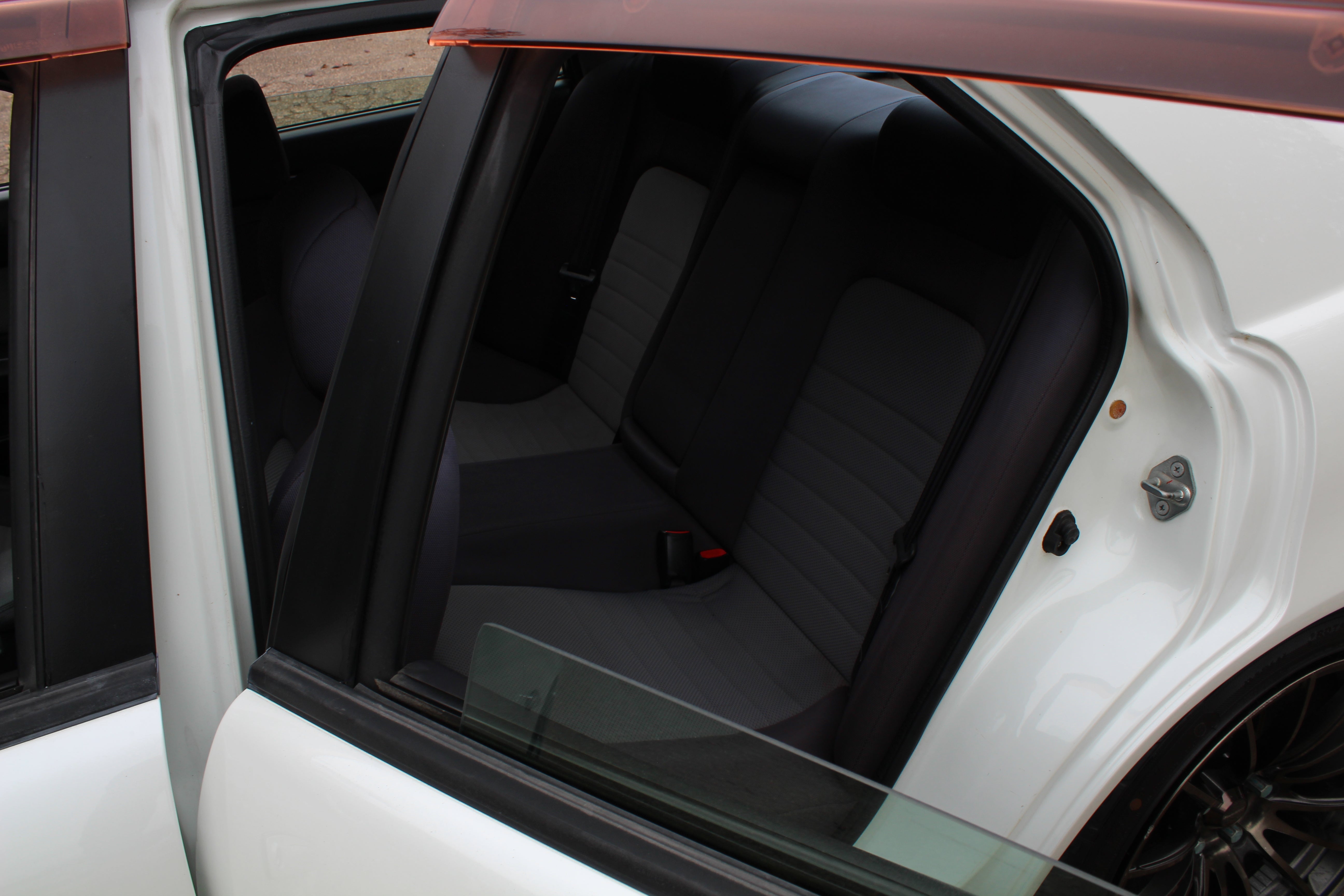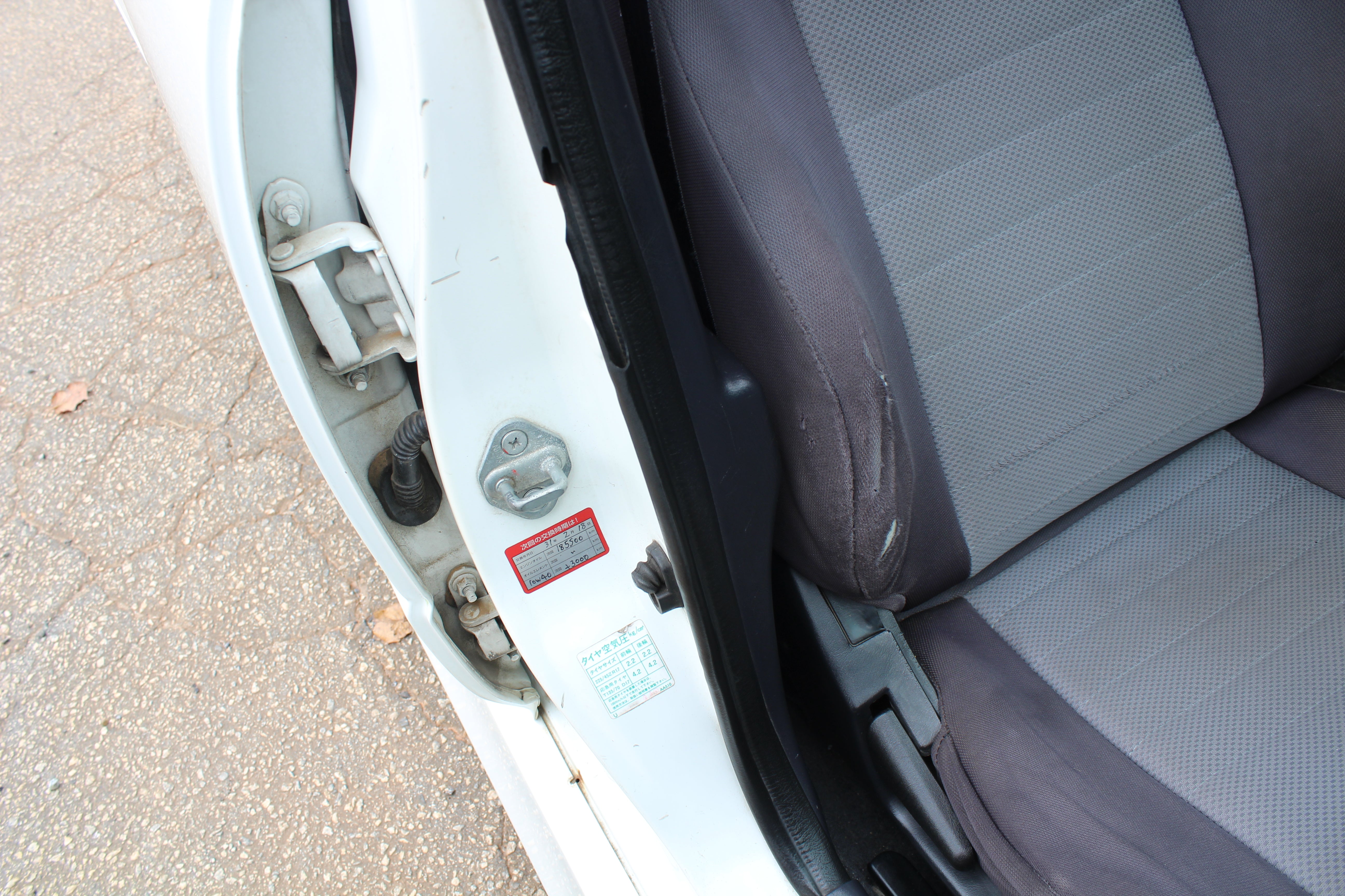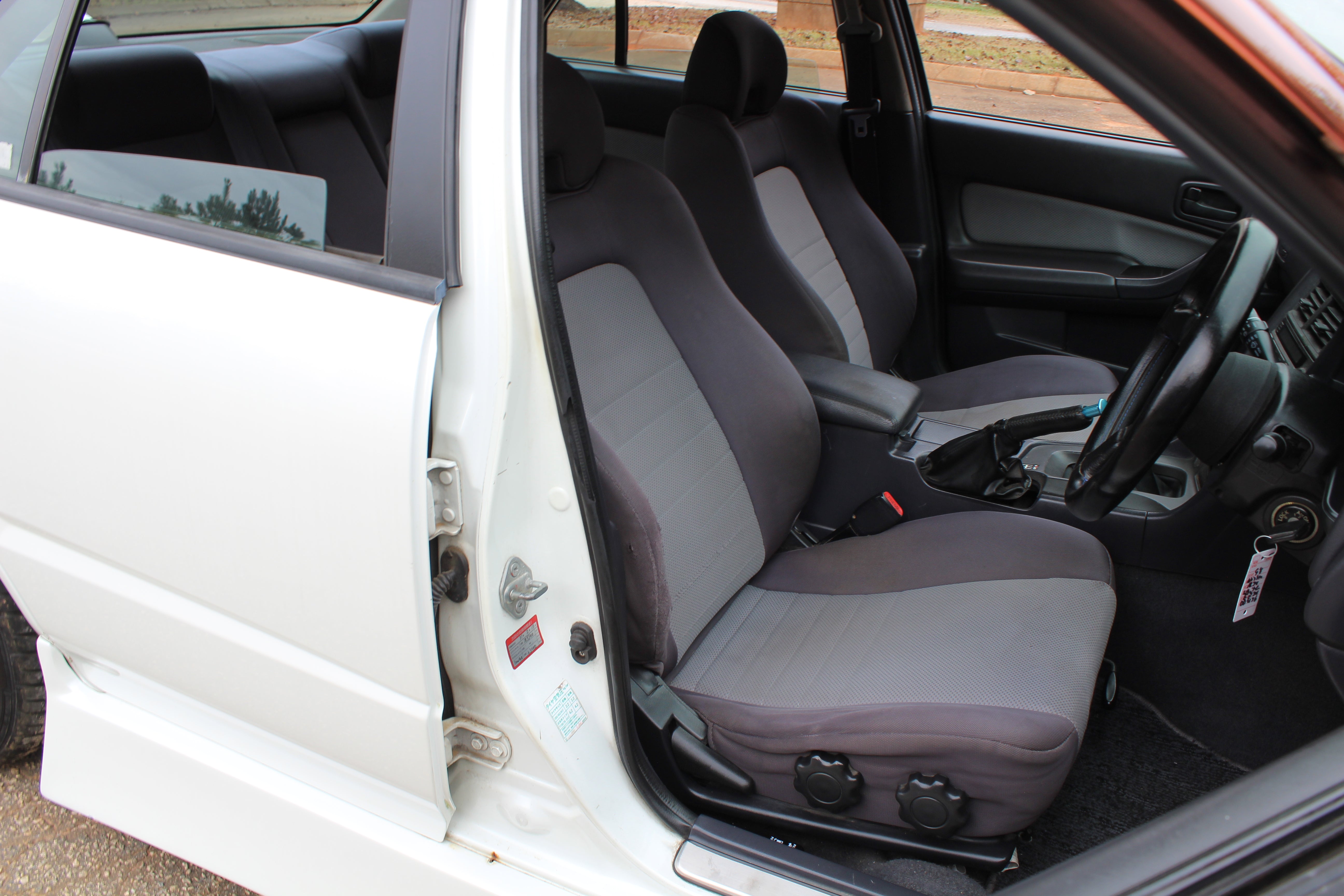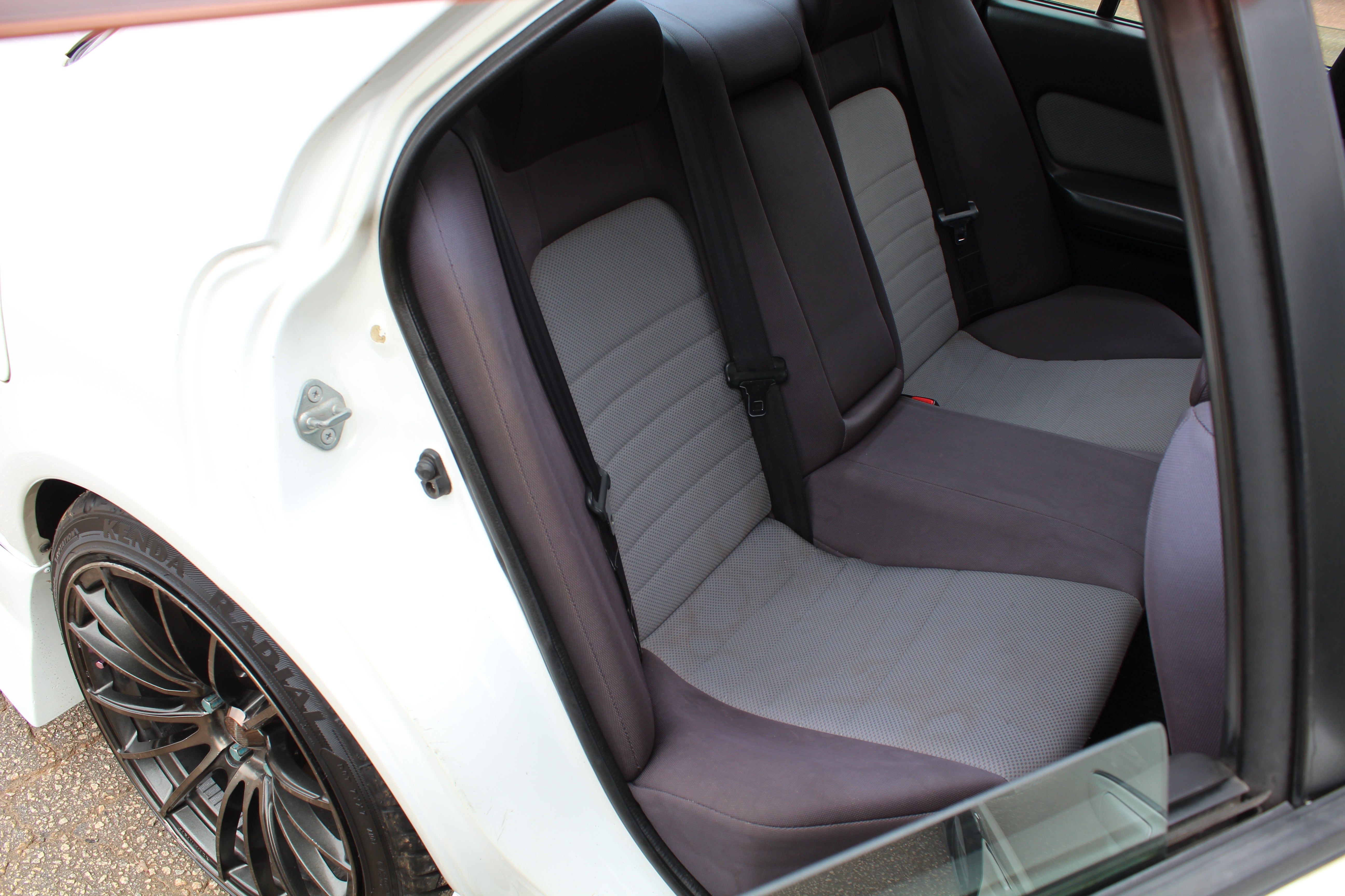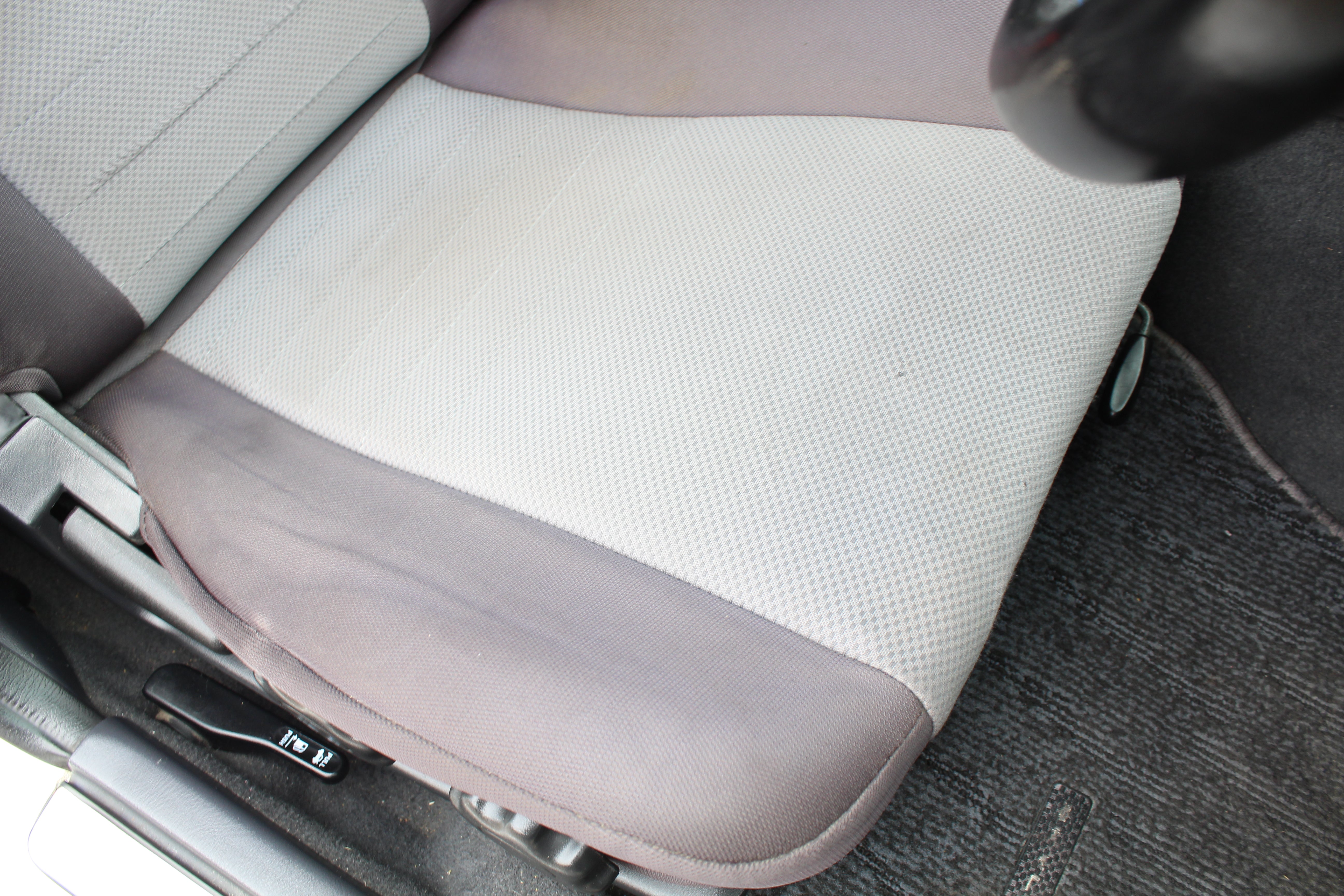 Interior: Driver seat bolster wear, seat stains, cigarette burn in passenger seat