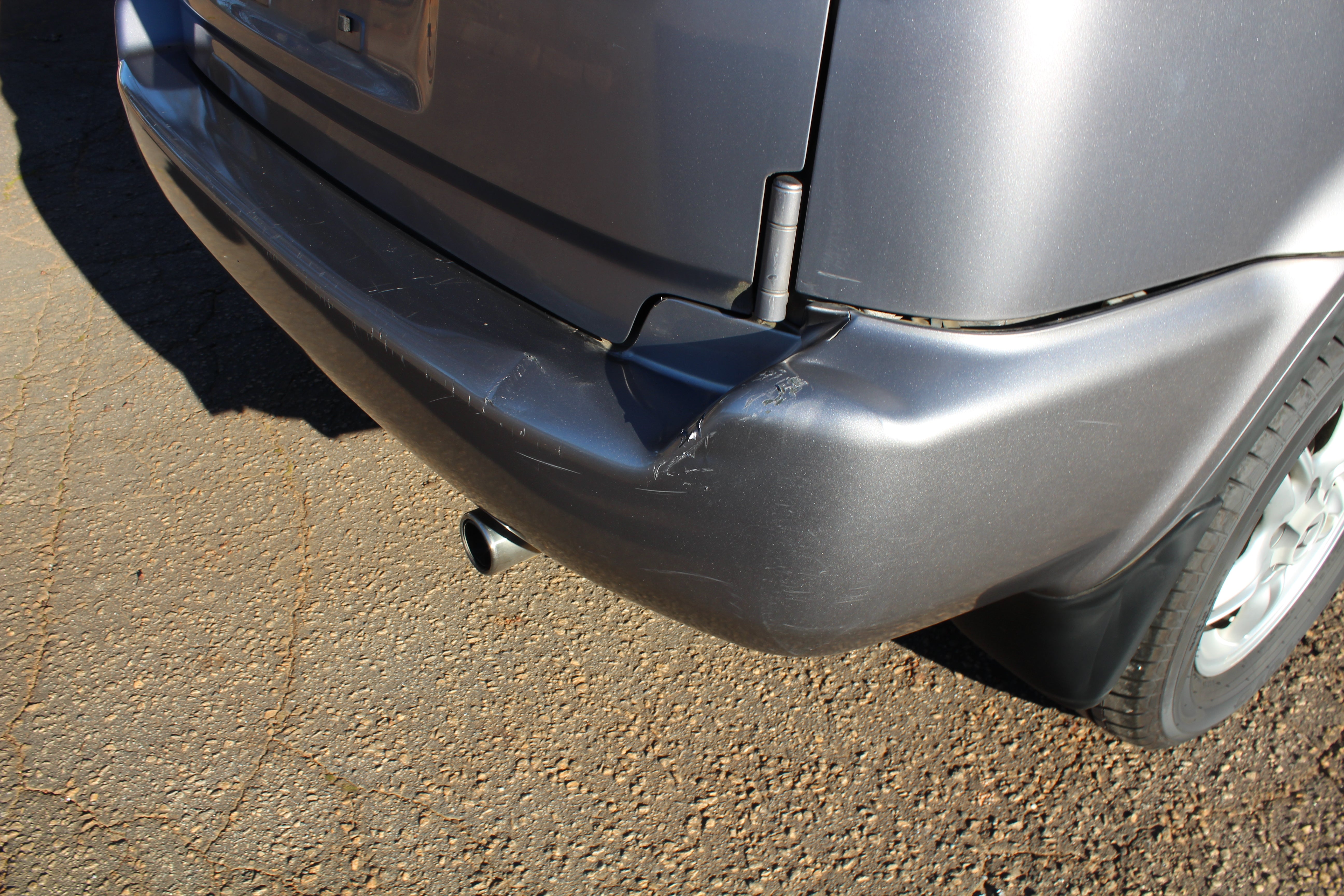 Rear bumper has minor nicks and indents