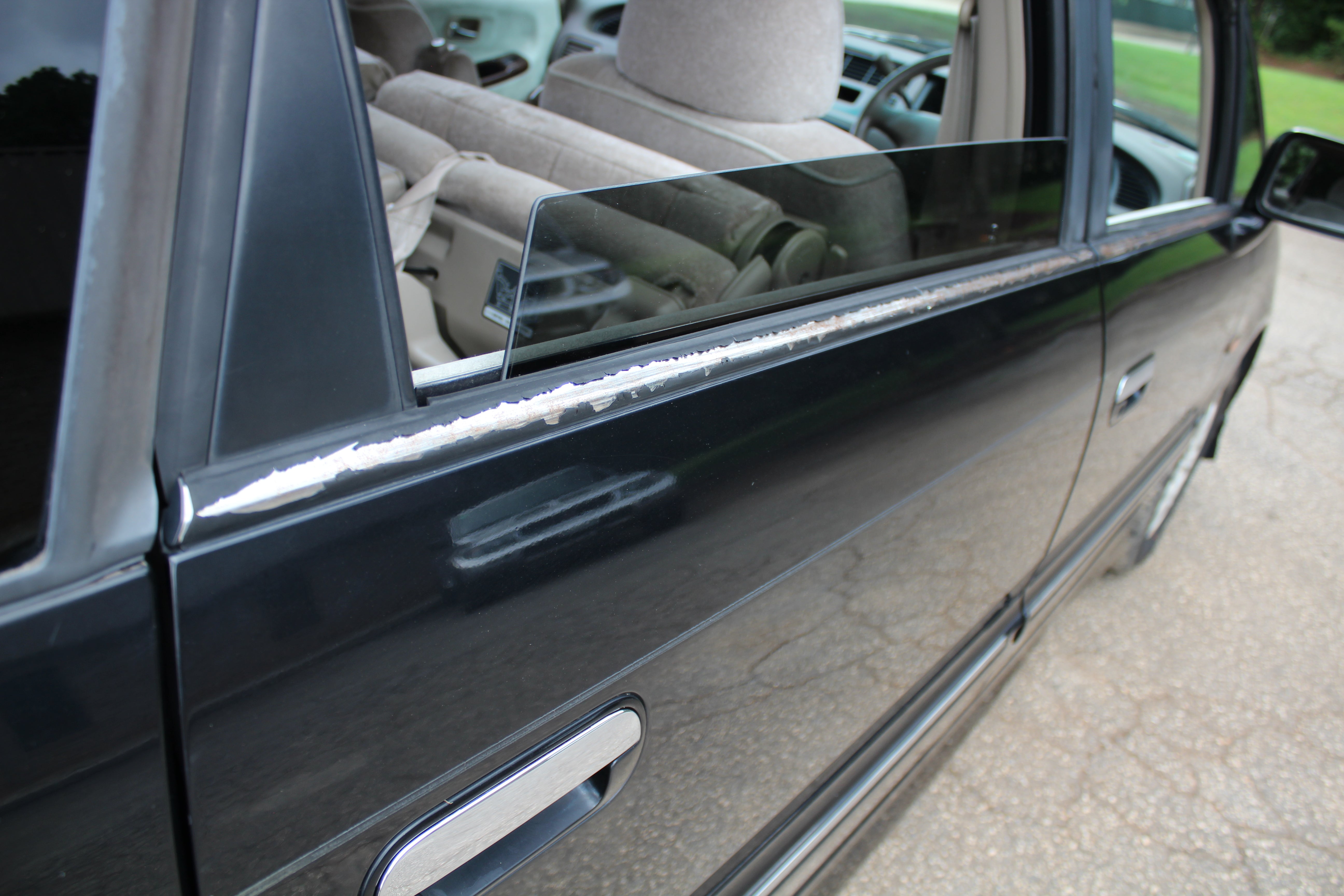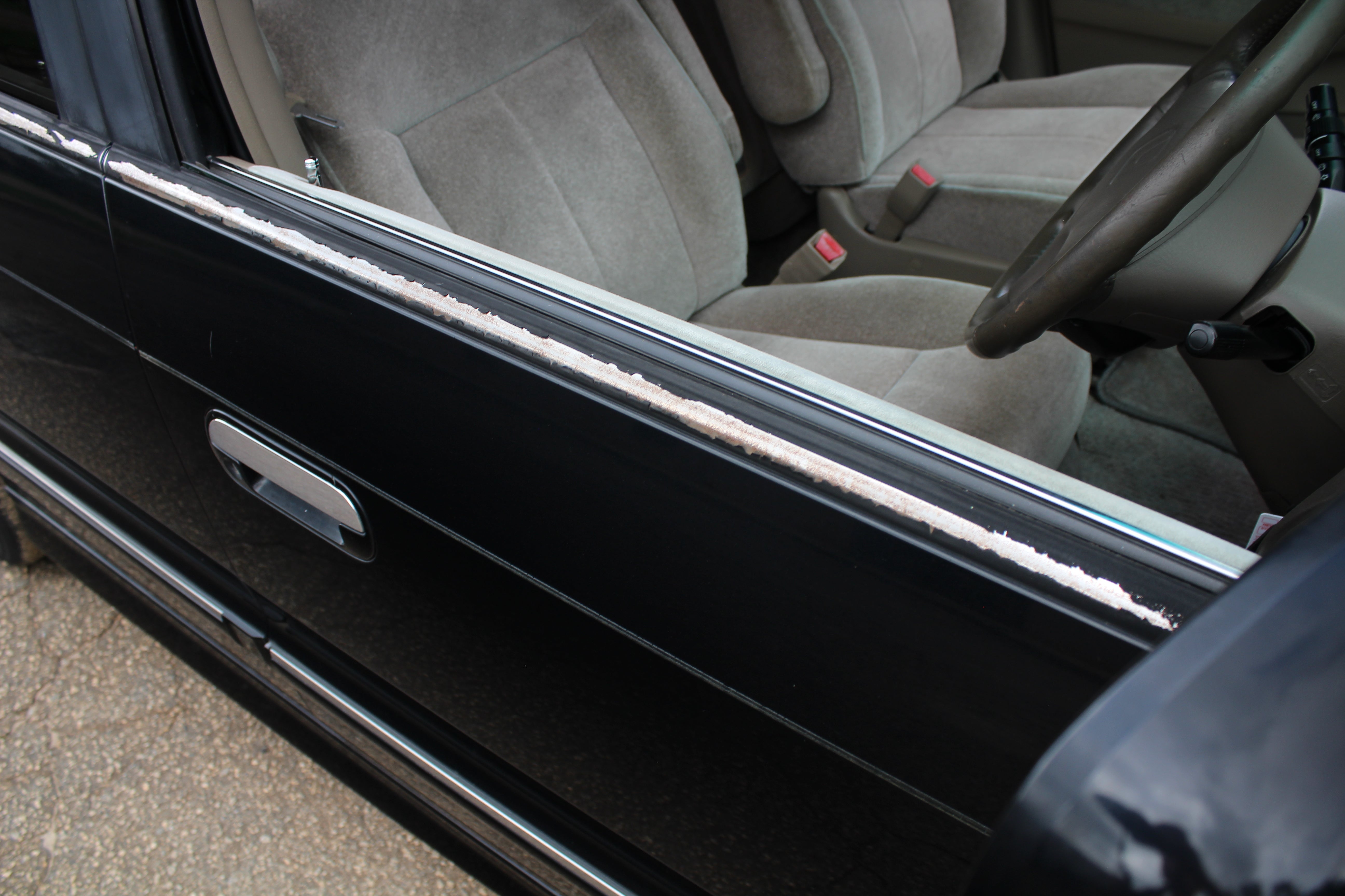 Peeling black trim above doors