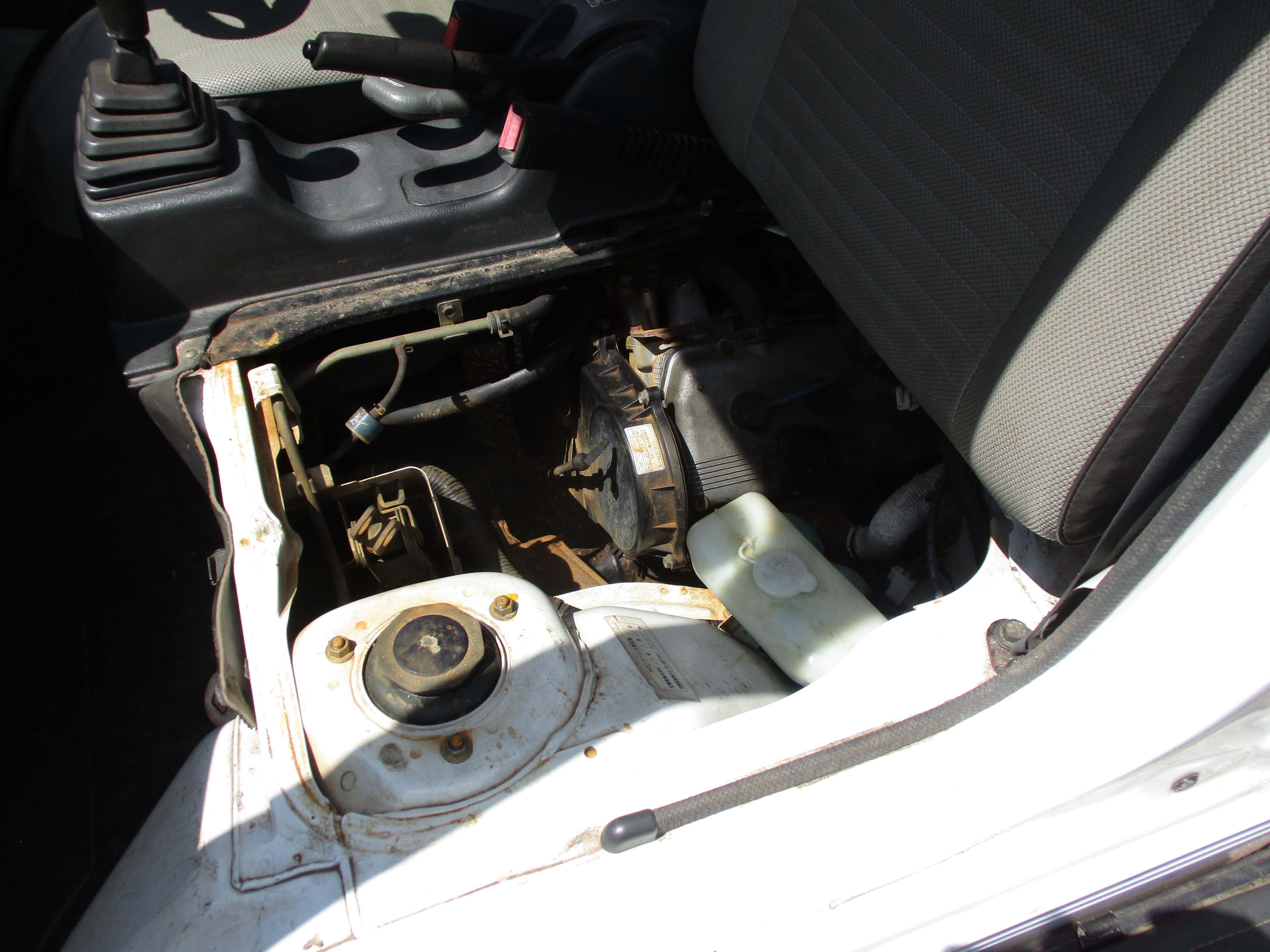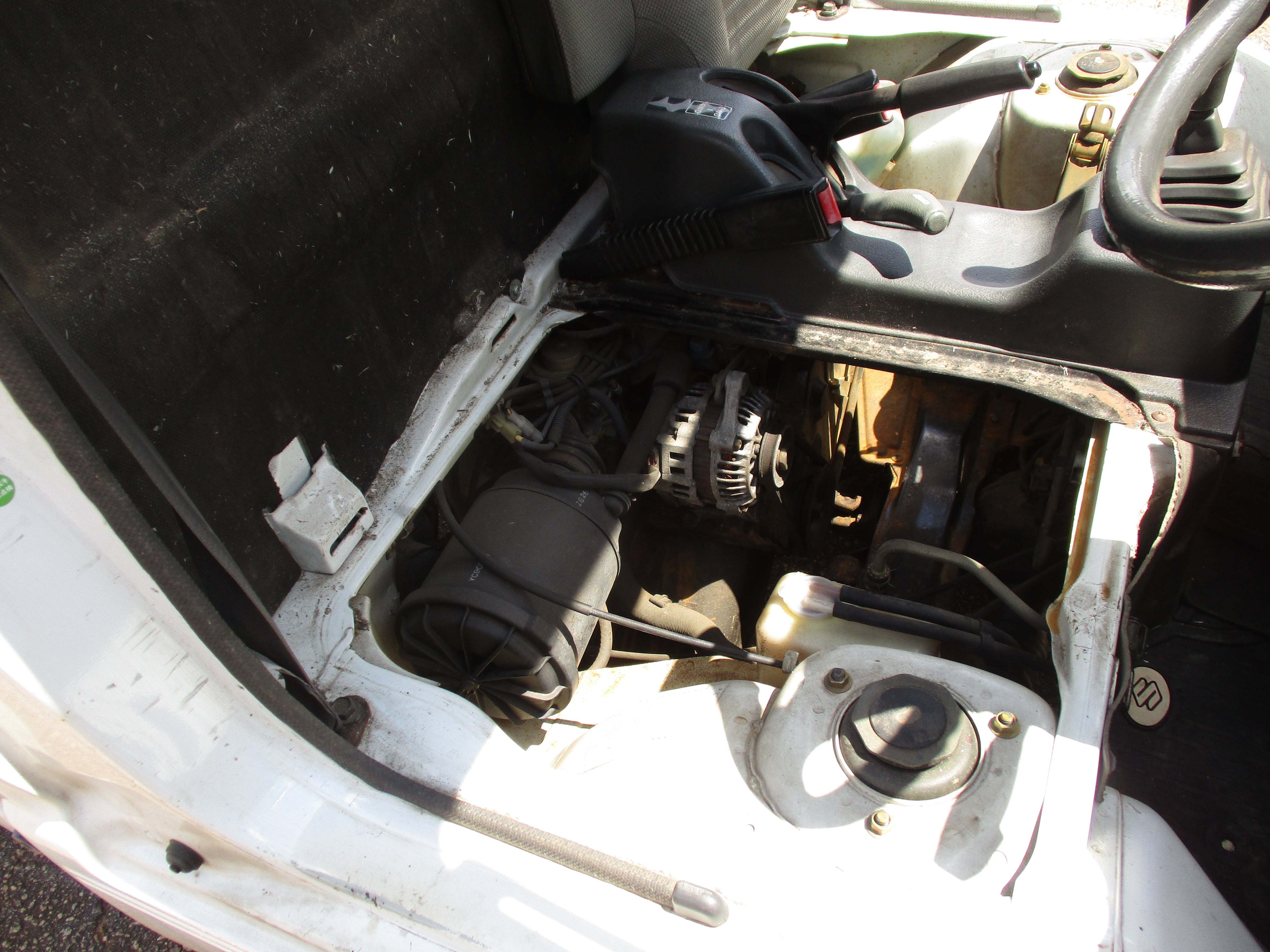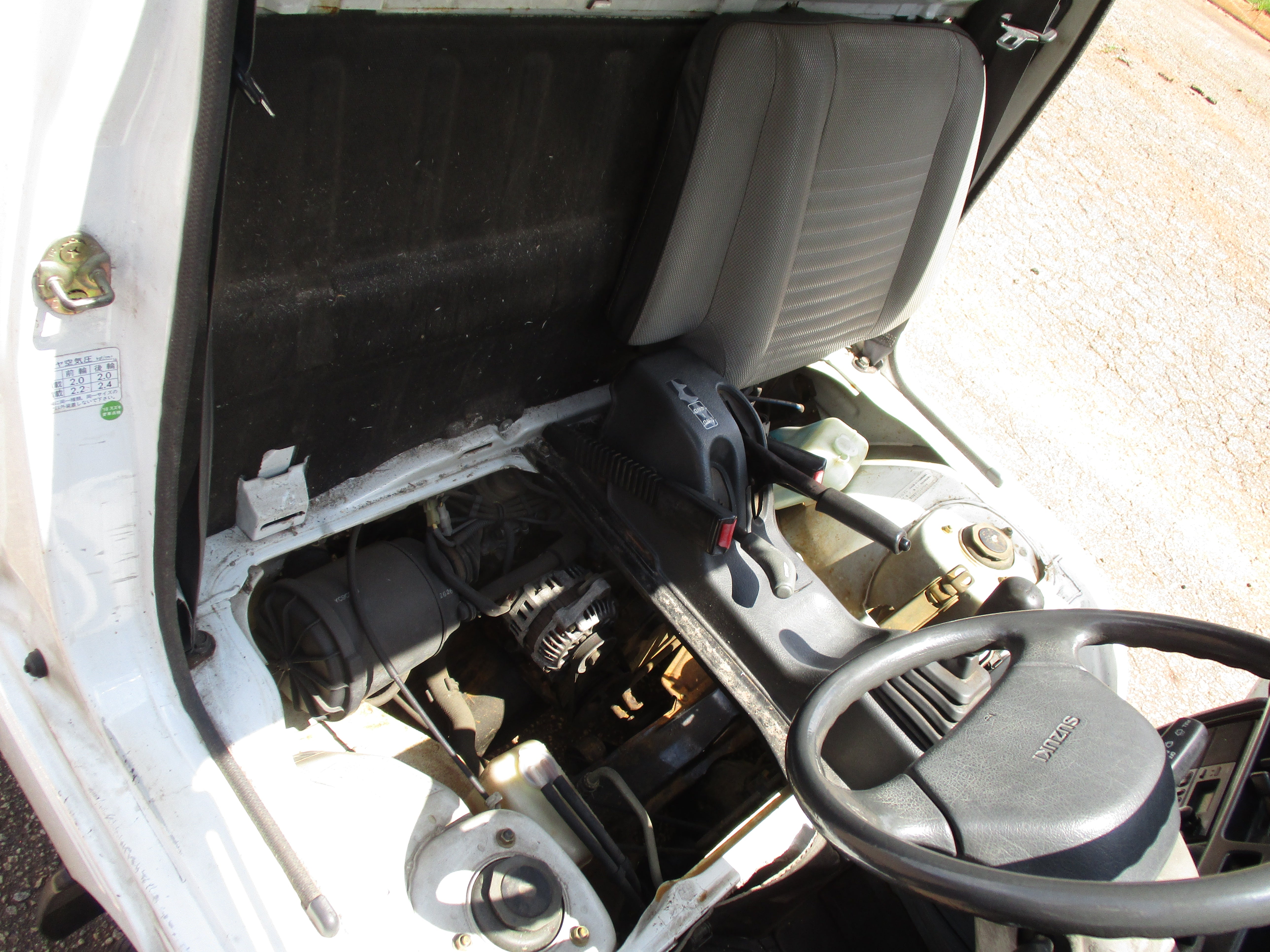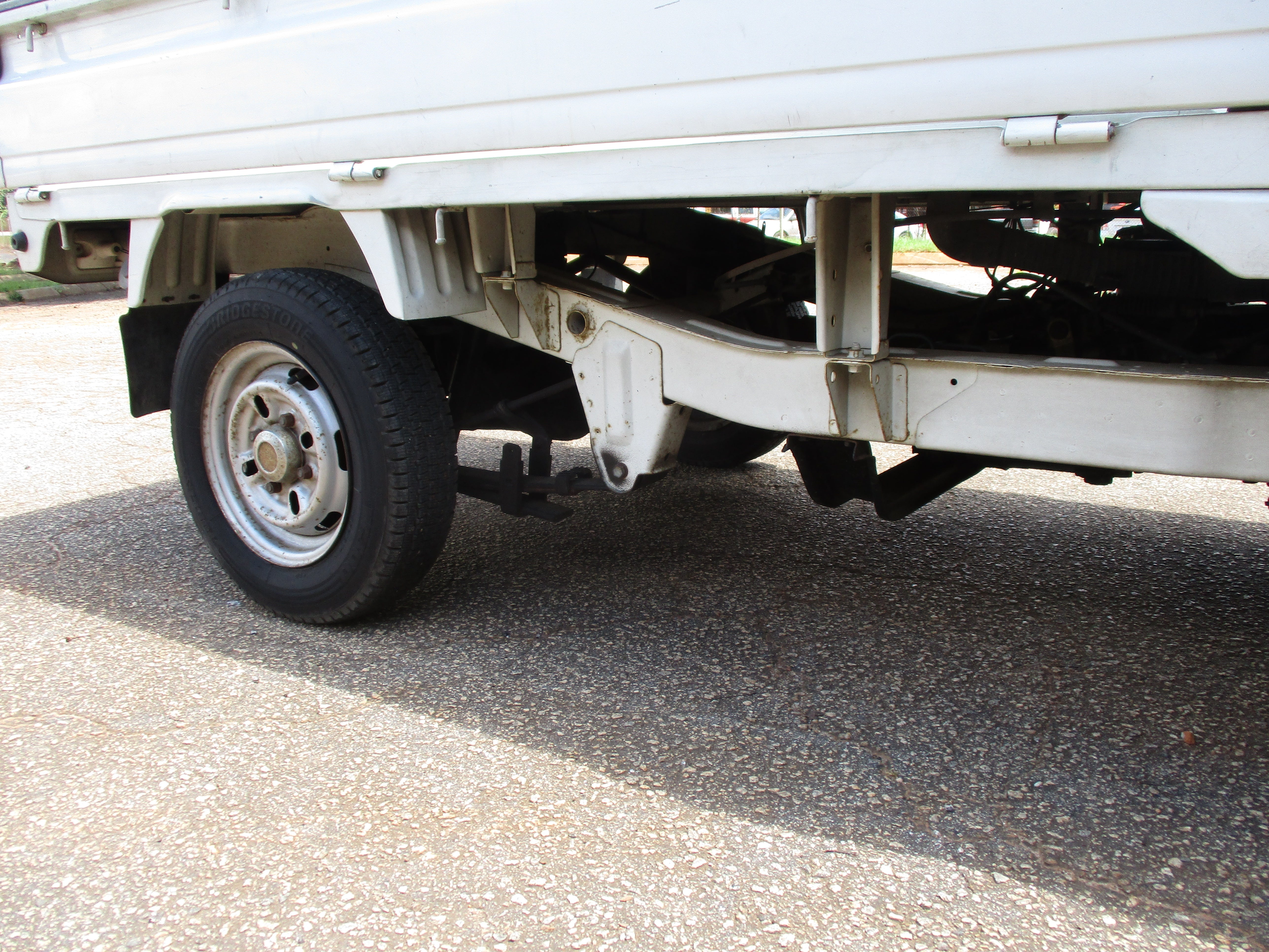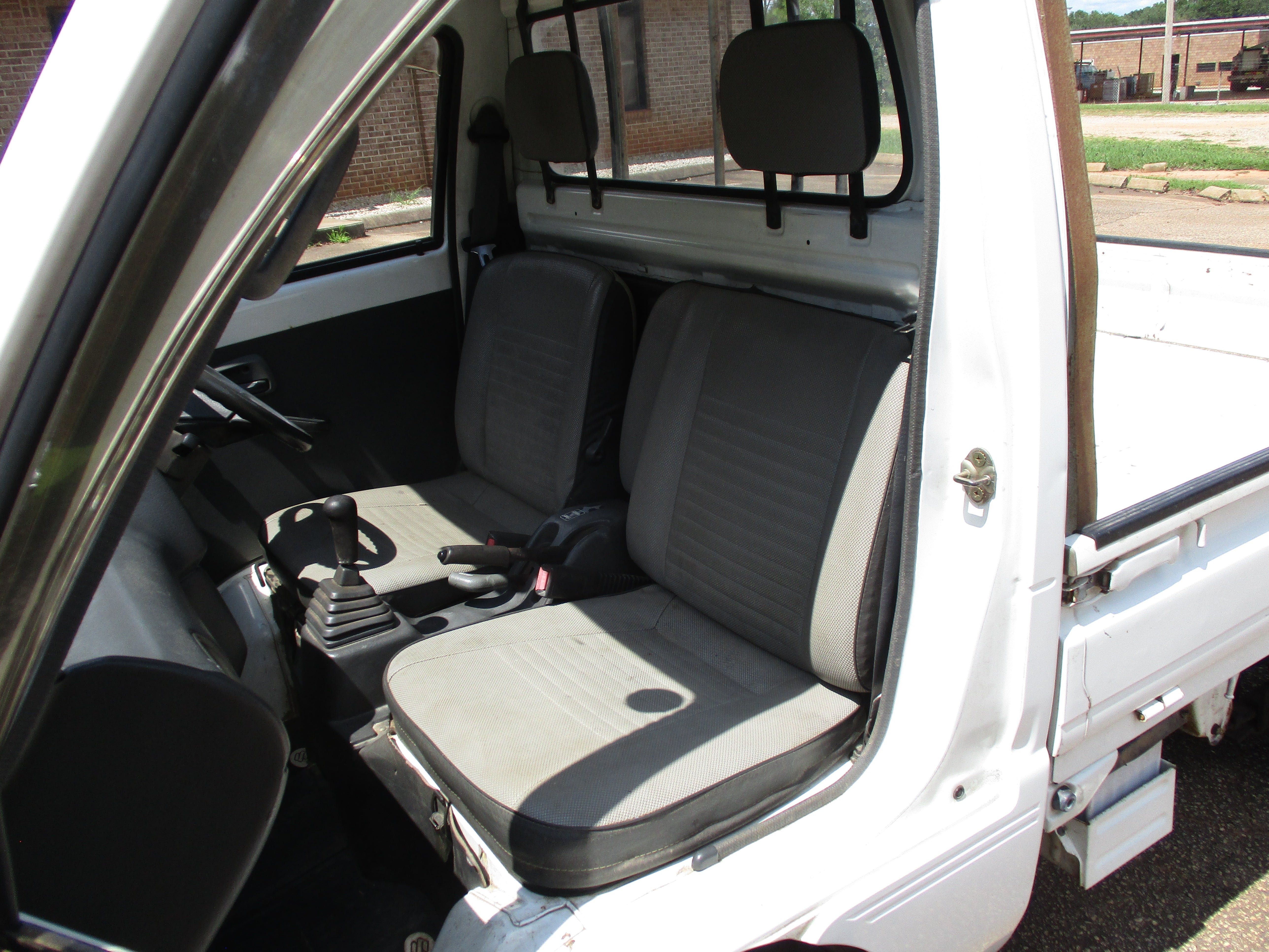 3 Cylinder 660cc engine, 5 Speed Manual Transmission 4WD with rear locking diff button and 2WD/4WD, has a extra low gear, these trucks are great to have especially if you have some property to work on. They're work horses and do not come with AC. Has Heat and everything works, it will do 65mph down the road. Bedsides fold down and are removable.