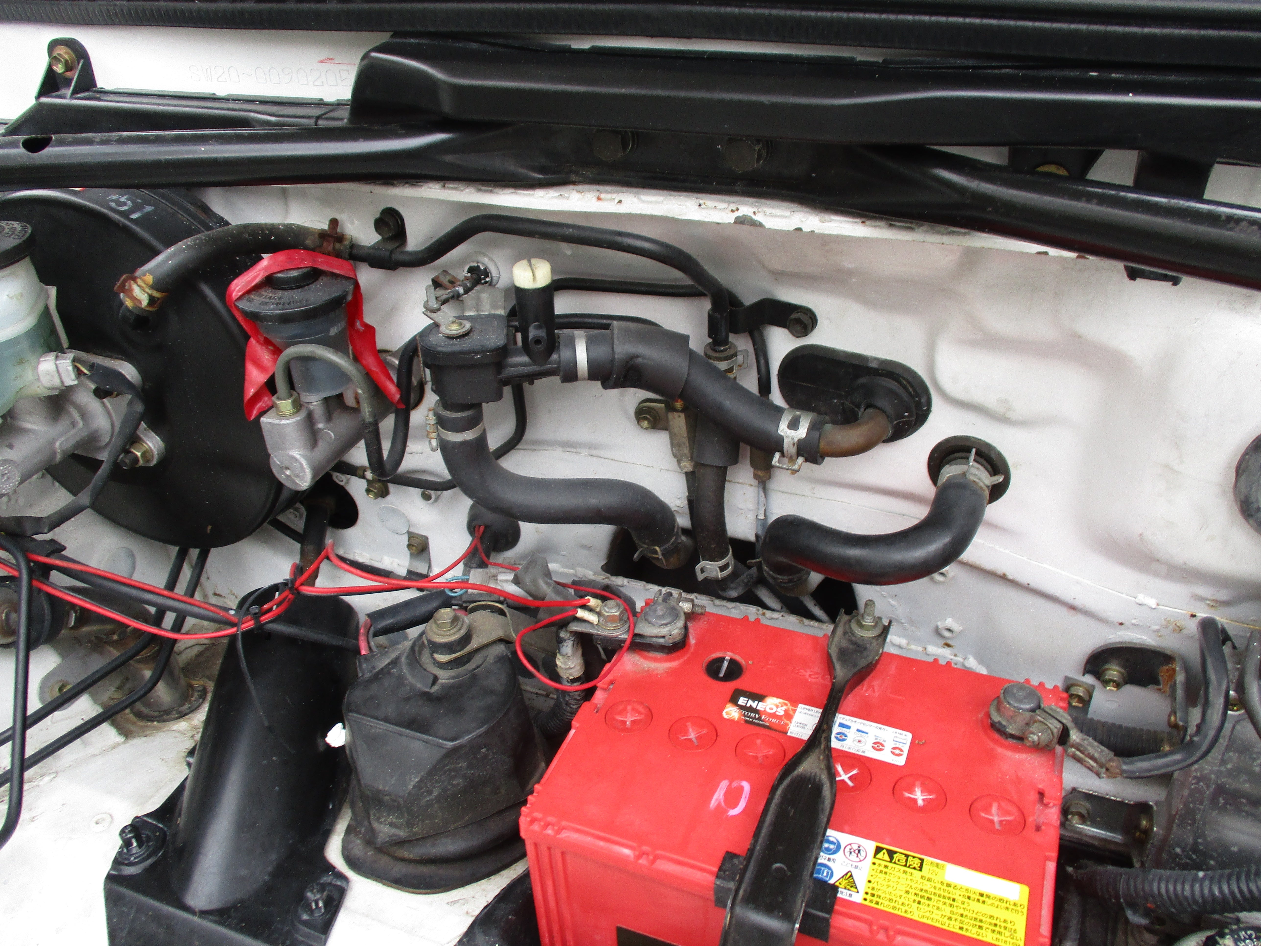 The Toyota MR2 is a two-seat, mid-engined, rear-wheel-drive sports car manufactured in Japan and marketed globally by Toyota A economical and sporty car, the MR2 has straight forward design elements, including fully independent MacPherson strut front and rear suspensions, four-wheel disc brakes, and a transverse-mounted inline-four engine. The name MR2 stands for either "mid-ship run-about 2-seater" or "mid-engine, rear-wheel-drive, 2-seater" The MR2 went through a redesign in 1989 (though North America did not receive them until early 1990 as 1991 models). The new car was larger, weighed 350 to 400 lb (159 to 181 kg) more than its predecessor due to having a more luxurious and spacious cabin, larger engine sizes, sturdier transaxle, and a more durable suspension setup. Toyota spent countless hours fine-tuning the handling capabilities of the SW20, seeking advice from professional race car drivers, including Dan Gurney of Formula One, NASCAR, and Le Mans fame. Japanese market trim levels: G with an NA 2.0L 3S-GE engine producing 165 PS (121 kW; 163 hp); with an A/T standard and an optional M/T. The G was the base model of the SW20 line-up. Standard features included: climate control, electric mirrors, and fabric door/seat trim. G-Limited with the NA 2.0L 3S-GE engine; an A/T was standard or an M/T was optional. The G-Limited was the higher-specification naturally aspirated SW20. Additional standard features: electric folding mirrors, steering fog lamps, and rear spoiler. GT-S with a turbocharged 2.0L 3S-GTE engine producing 221 PS (163 kW; 218 hp); an M/T was the only choice. The GT-S had the same standard features as the G-Limited. GT with the turbocharged 2.0L 3S-GTE engine and manual transmission. The GT was considered as the luxury specification in the SW20 line-up and had alcantera/leather door and seat trim in addition to G-Limited standard features. All Japanese market cars came equipped with electronic climate control featuring 2 stage air conditioning. Differences between the normally aspirated and turbocharged models include the "Turbo" emblem (US) on the rear trunk, 'TWIN CAM 16 TURBO' decal above the side intake (Japanese market), a fiberglass engine lid with raised vents, fog lights, and an added interior center storage compartment located between the two seats. All SW20 MR2s came with a staggered wheel setup, with wider wheels and tires in the rear than in the front. Mechanical differences on the Turbo models include: 3S-GTE engine with associated air-to-air intercooler and different exhaust configuration; Stronger and heavier E153 gearbox with different ratios and stronger axles; Larger fuel pump and radiator. Models with 3S-GE and 3S-GTE engines had twin-piston front brake calipers. Models with the 5S-FE engine had only single-piston calipers.