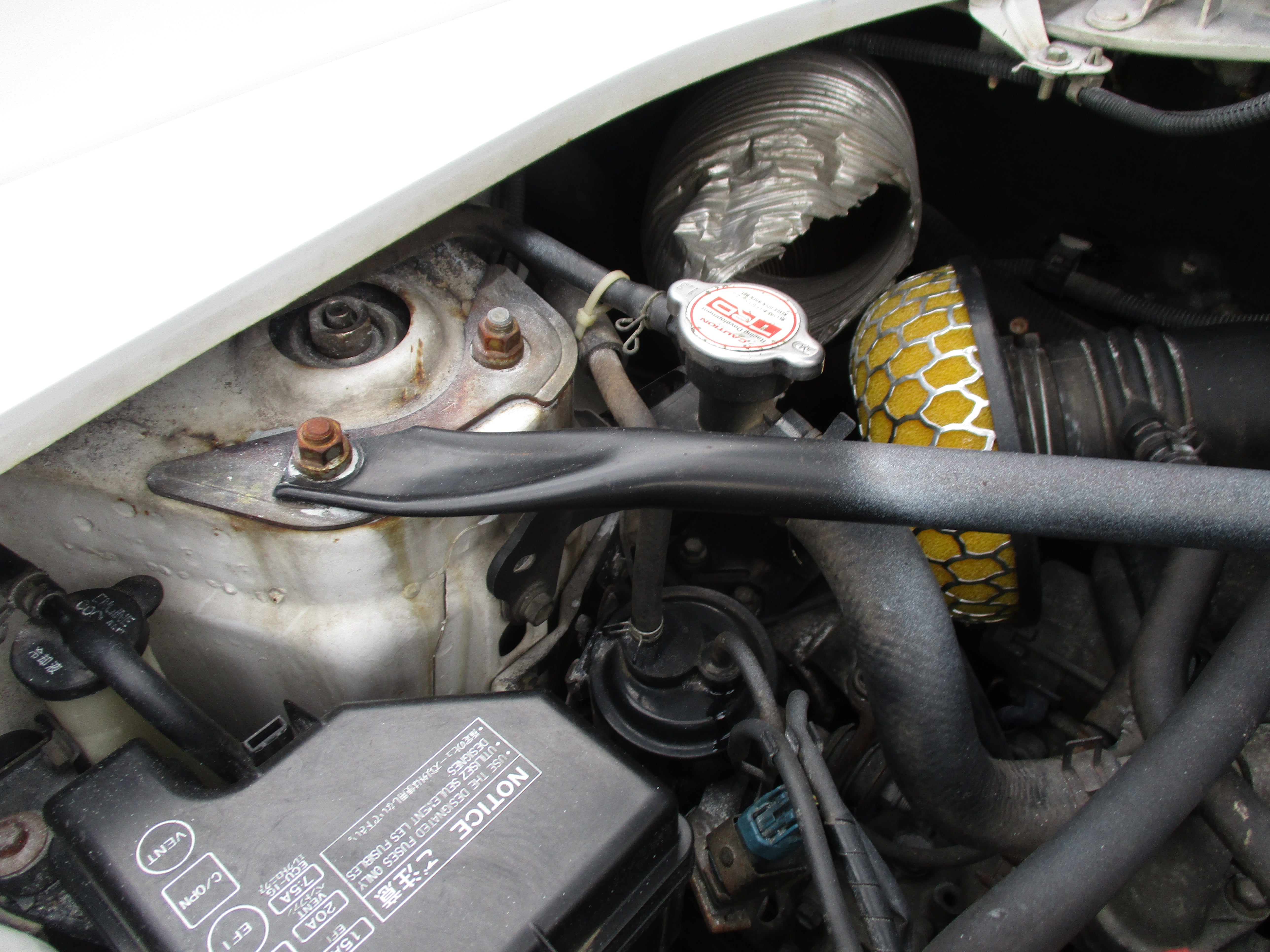In all my years Importing and Parting out JDM Cars this is the 1st street car ive ever seen that has been reinforced like this, many hours were put in(thousands of dollars) stich welding the whole entire chassis with fender brace reinforcements and a Full Roll Cage on Top, this car is stiff and a great candidate for racing. You can see by all the pics they did a really nice job, has a little surface rust here and there but minor and no rot. Car also has high end(5k) 2 way adjustable coilovers rebound adjustable up top and compression adjustable on bottom, look to be Ohlins. Racing brake pads and slotted front rotors. Schnider 15" rims with sticky street tires R1R tires up front and rivals in the back