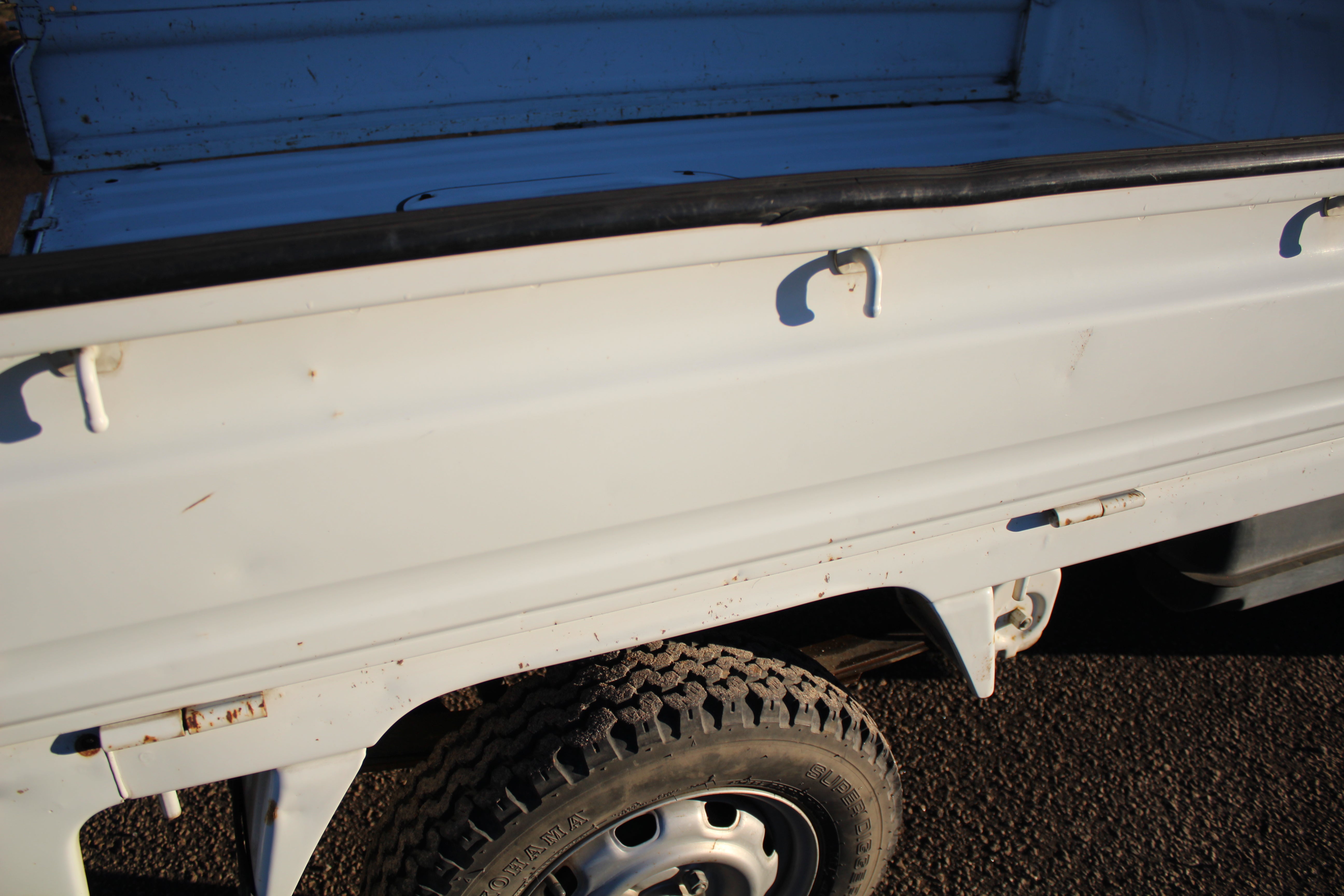 All flaws are pictured just some minor scuffs and scratches but in good condition. Small scuff on bottom of left door, small scuffs on bedsides and corners . Rear left taillight has a crack. Left fog light does not work and driver seat has some wear. Please look at pictures carefully as all flaws are pictured.