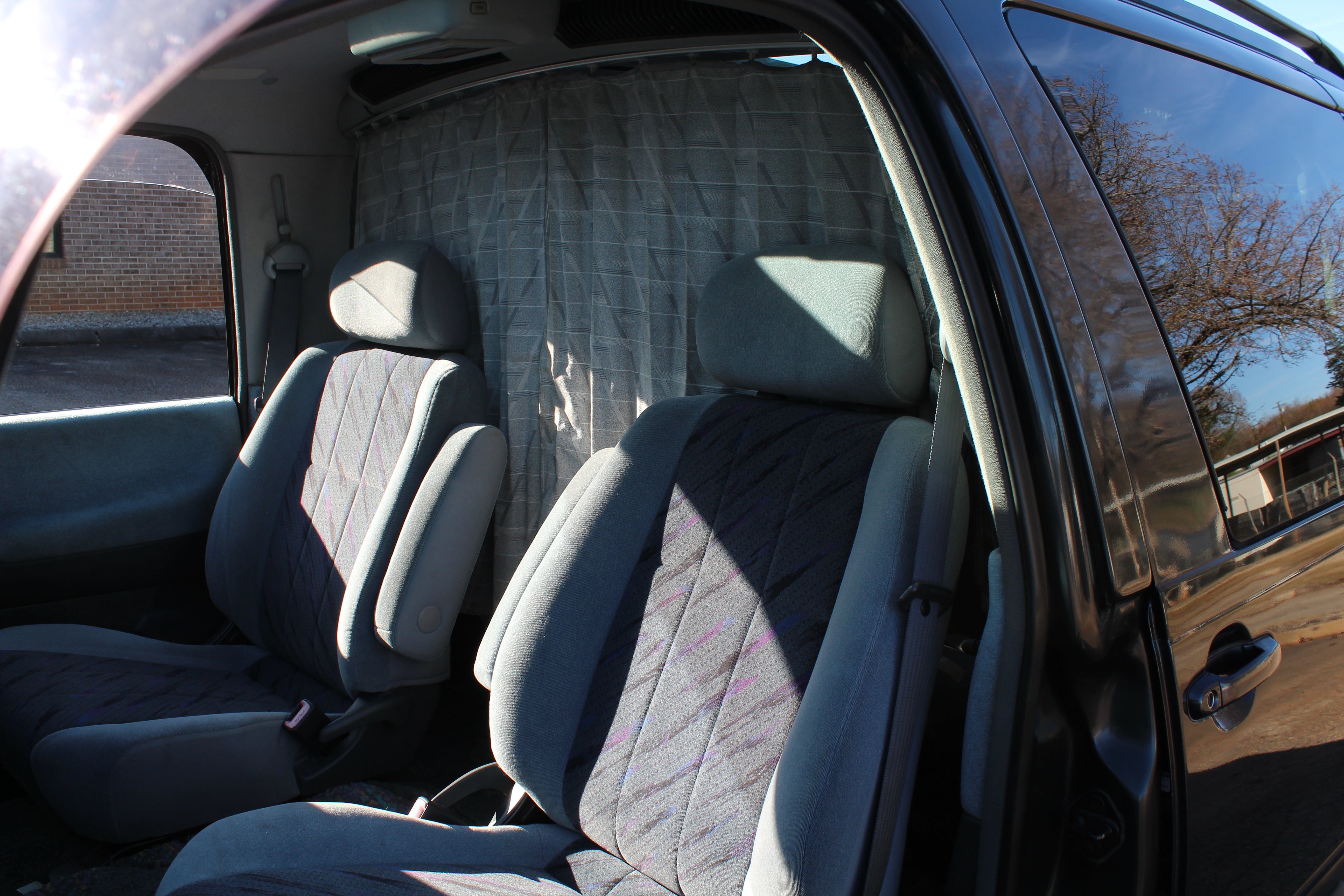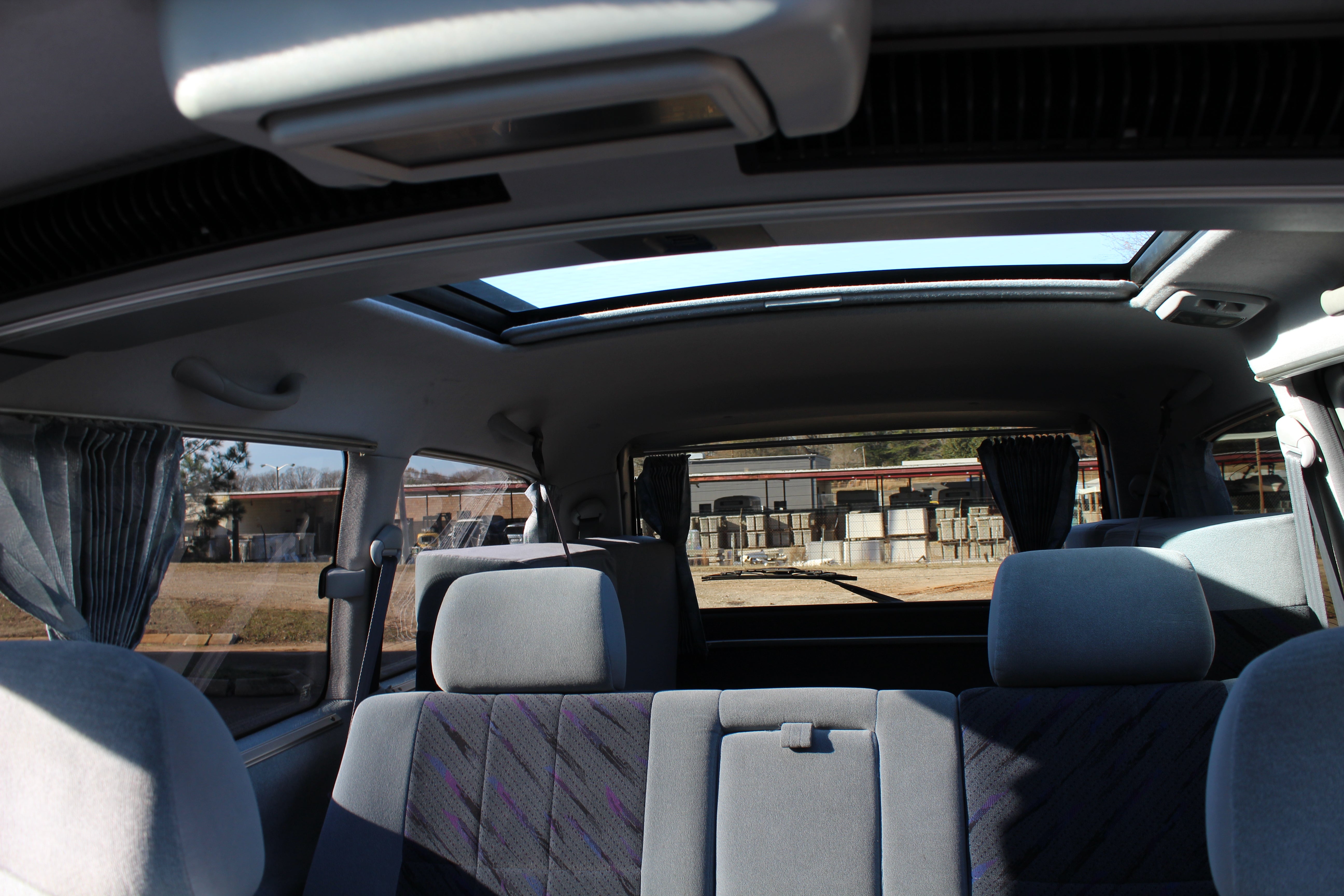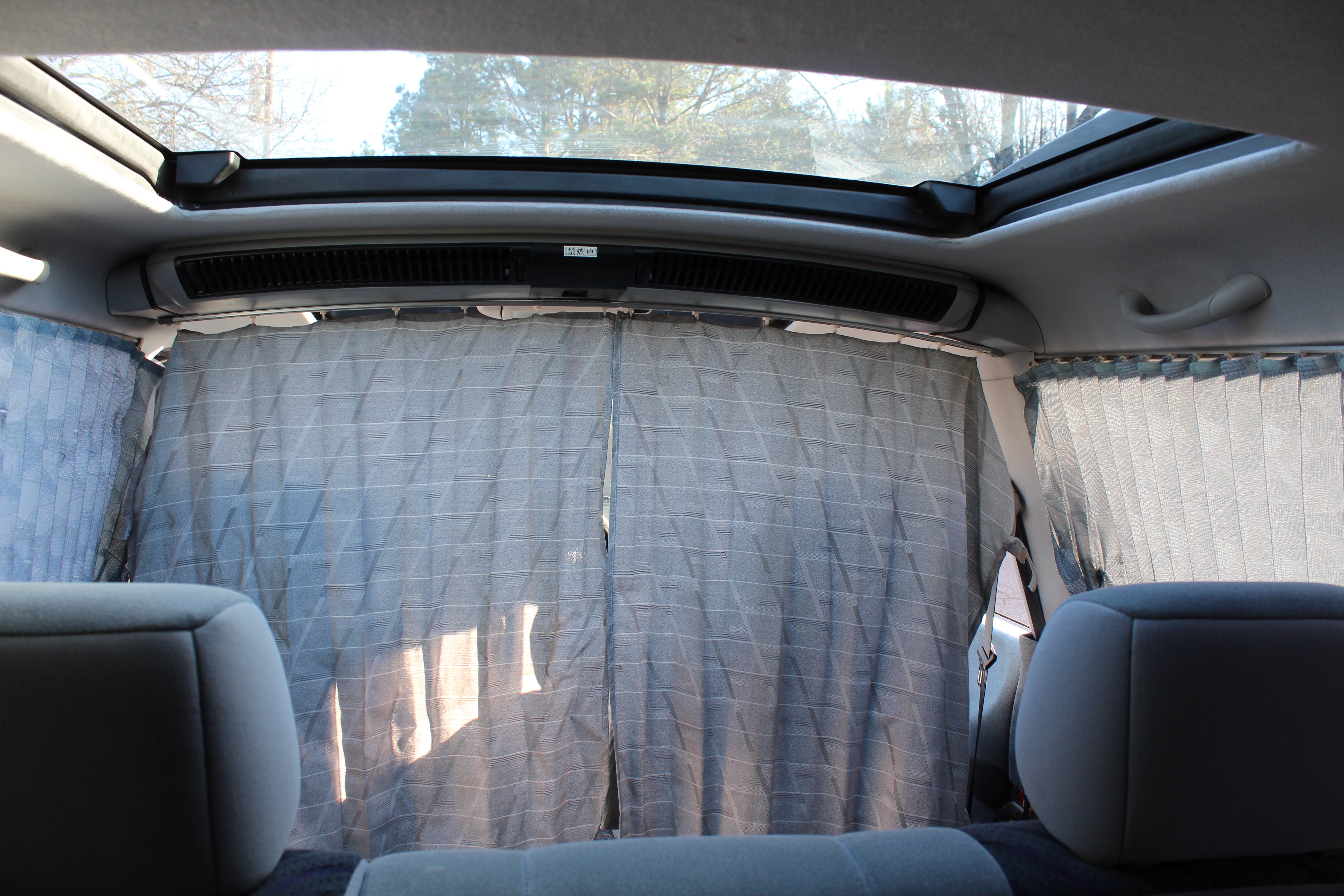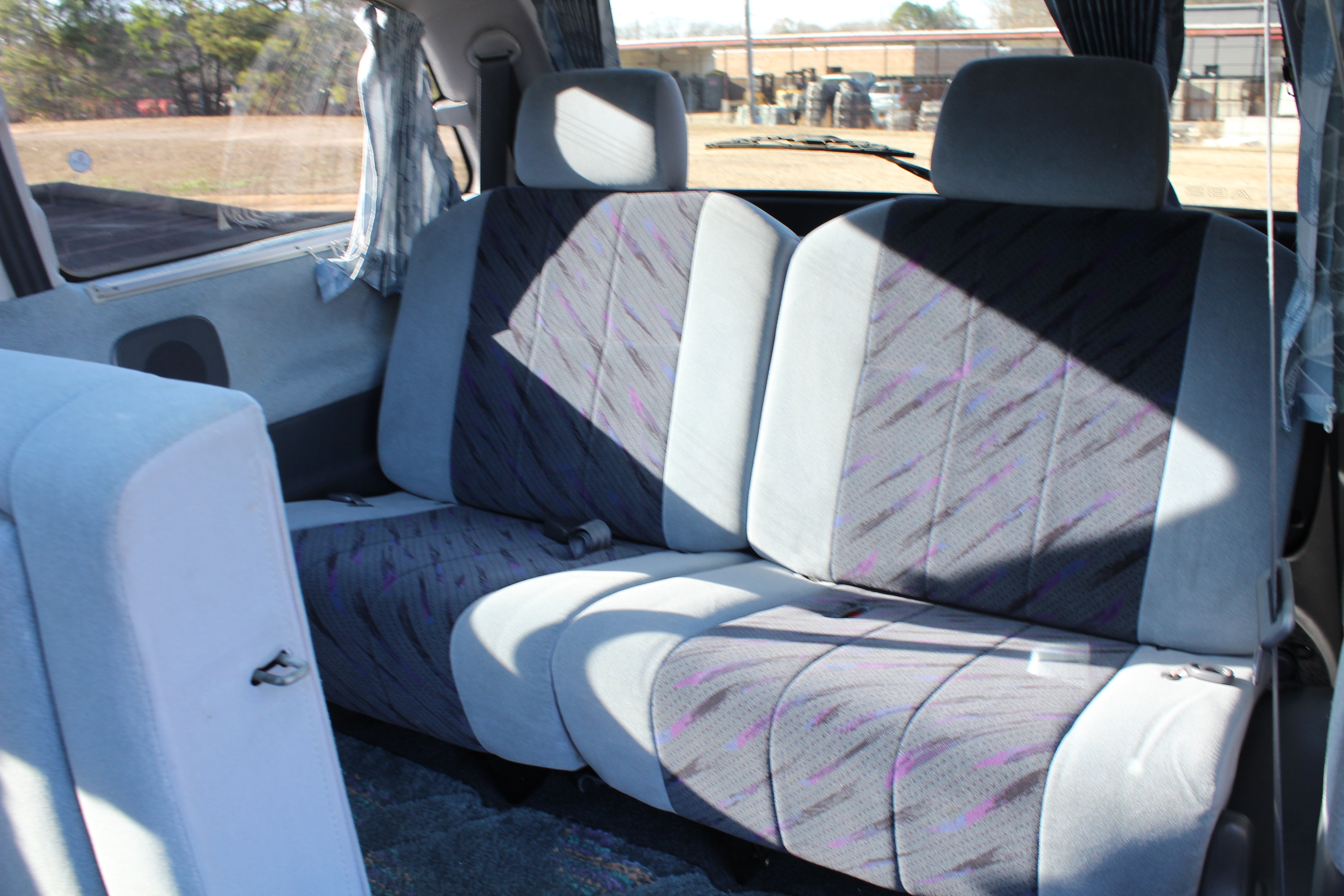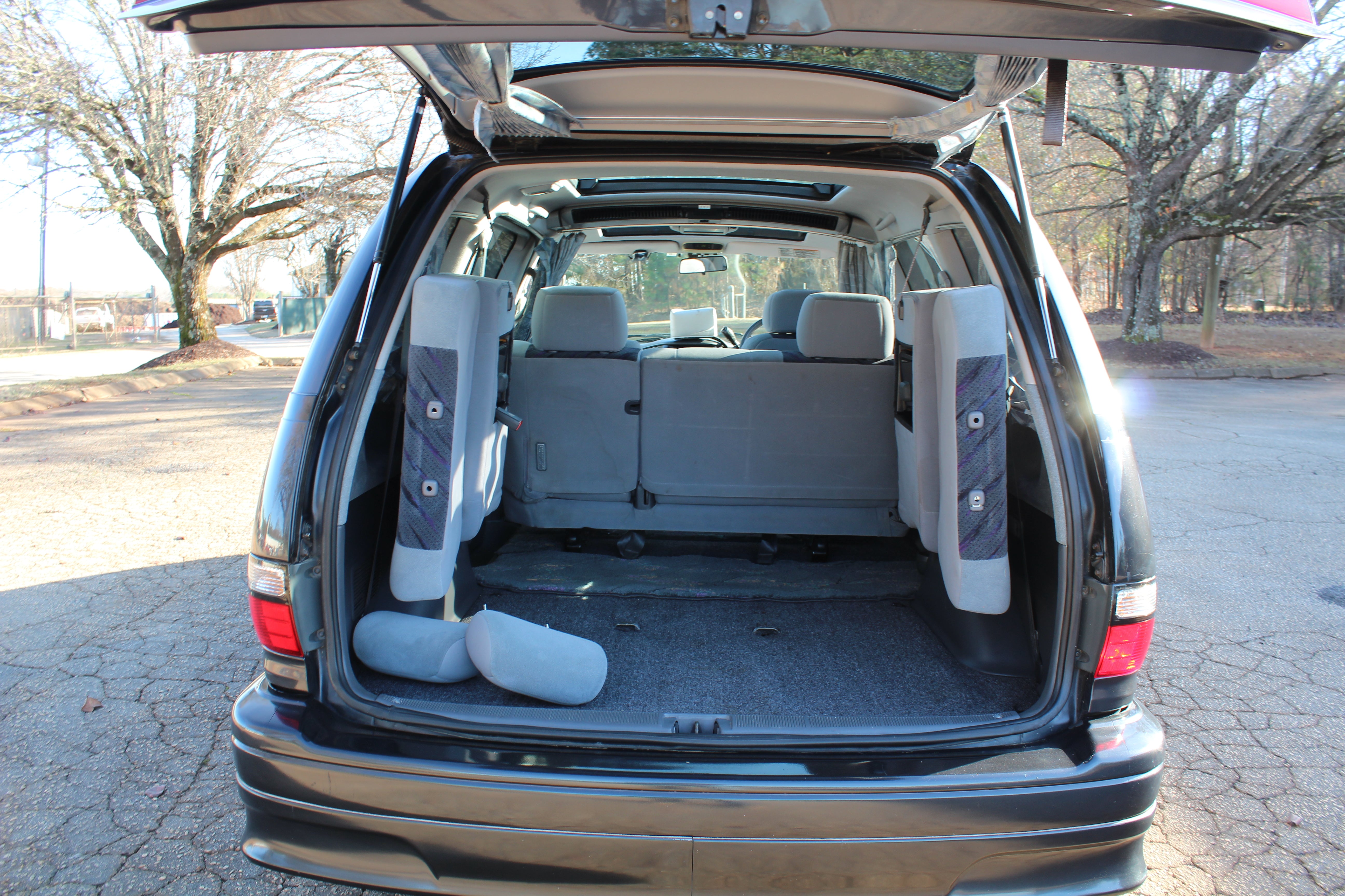 Just has some cosmetic flaws as pictured, dent on rear left quarter, scuffs on front and back bumpers, has paint fade on rear hatch, scratch on rear left sliding door side molding, and someone painted on Japanese writing on it. Interior is good besides for some stains as pictured.