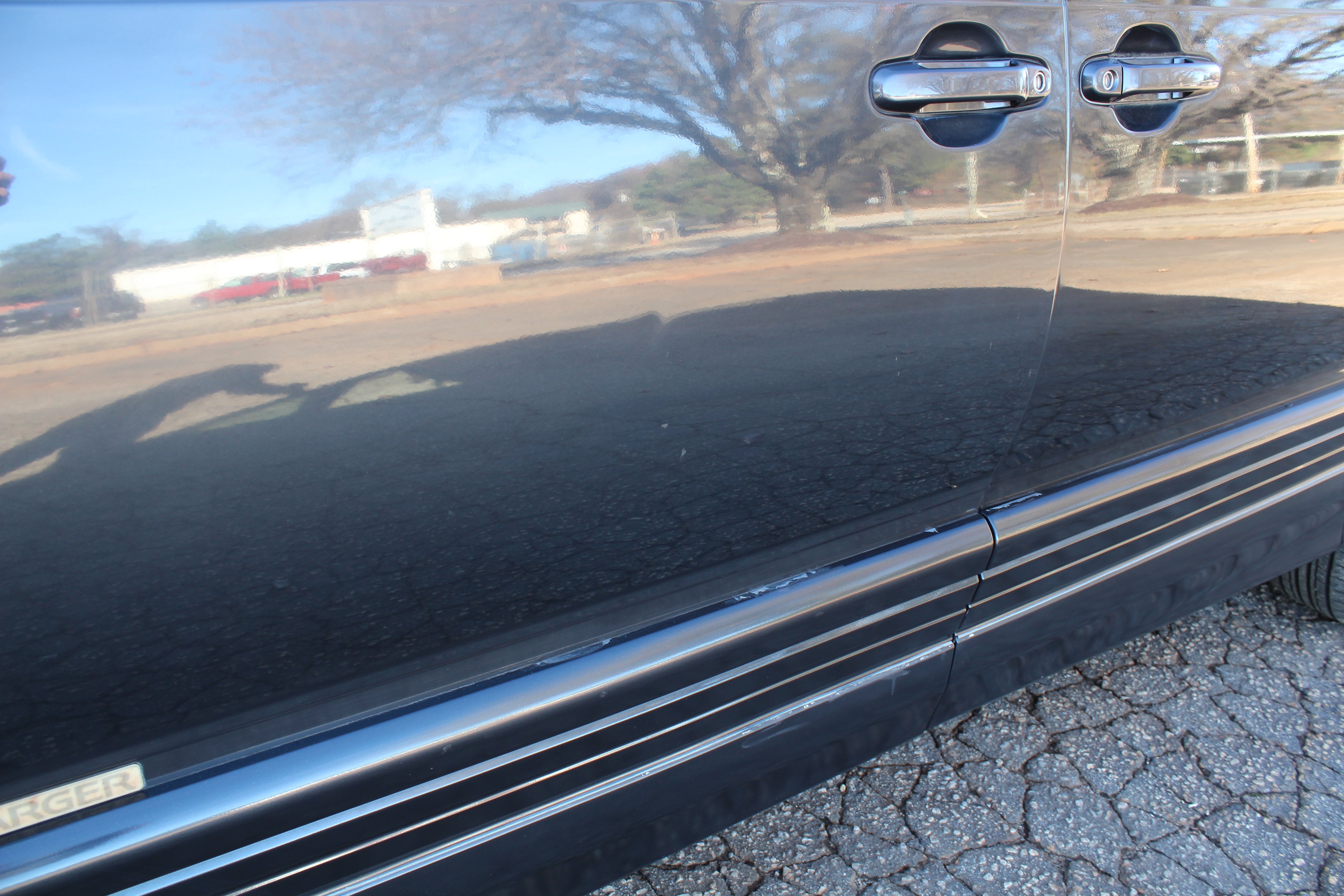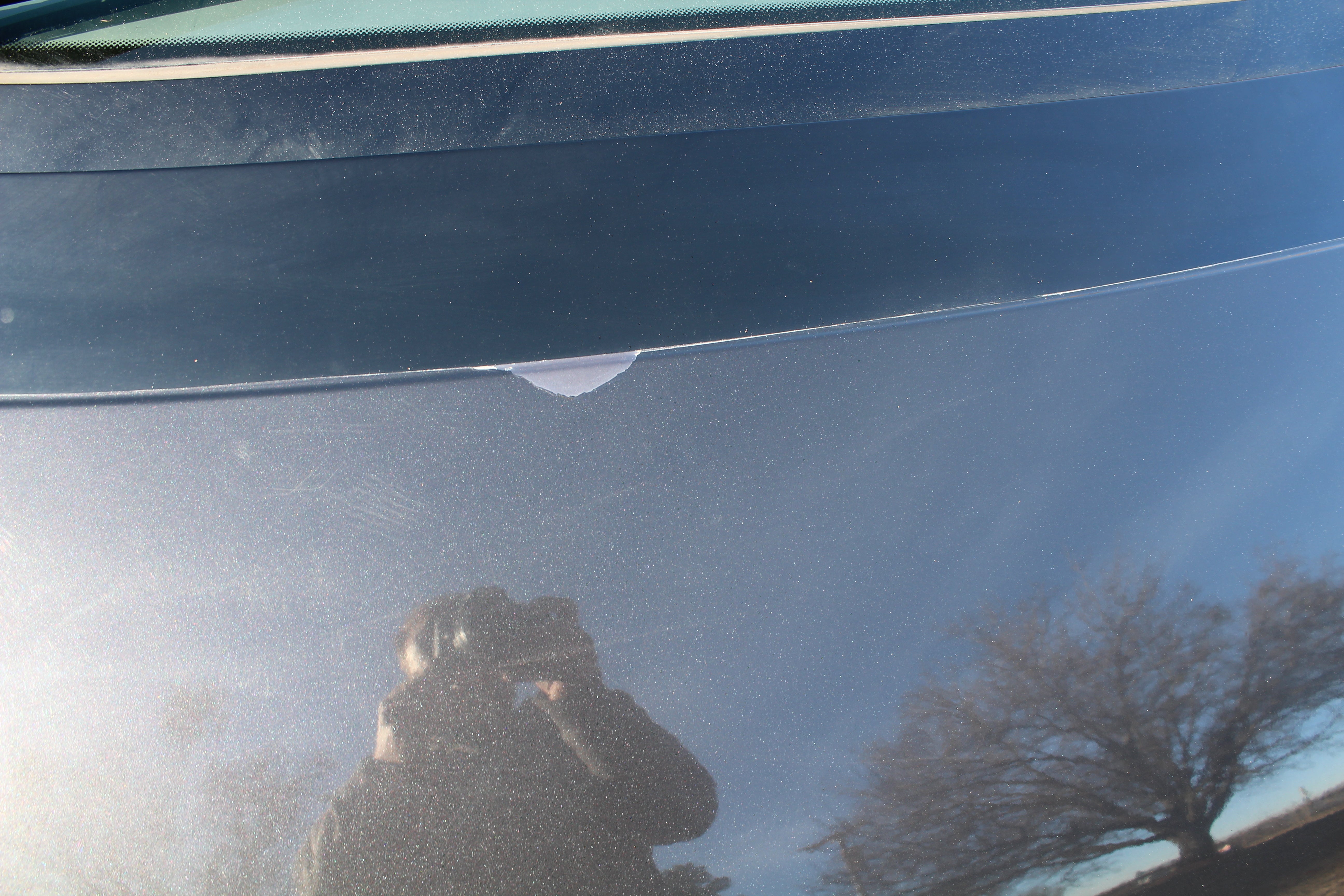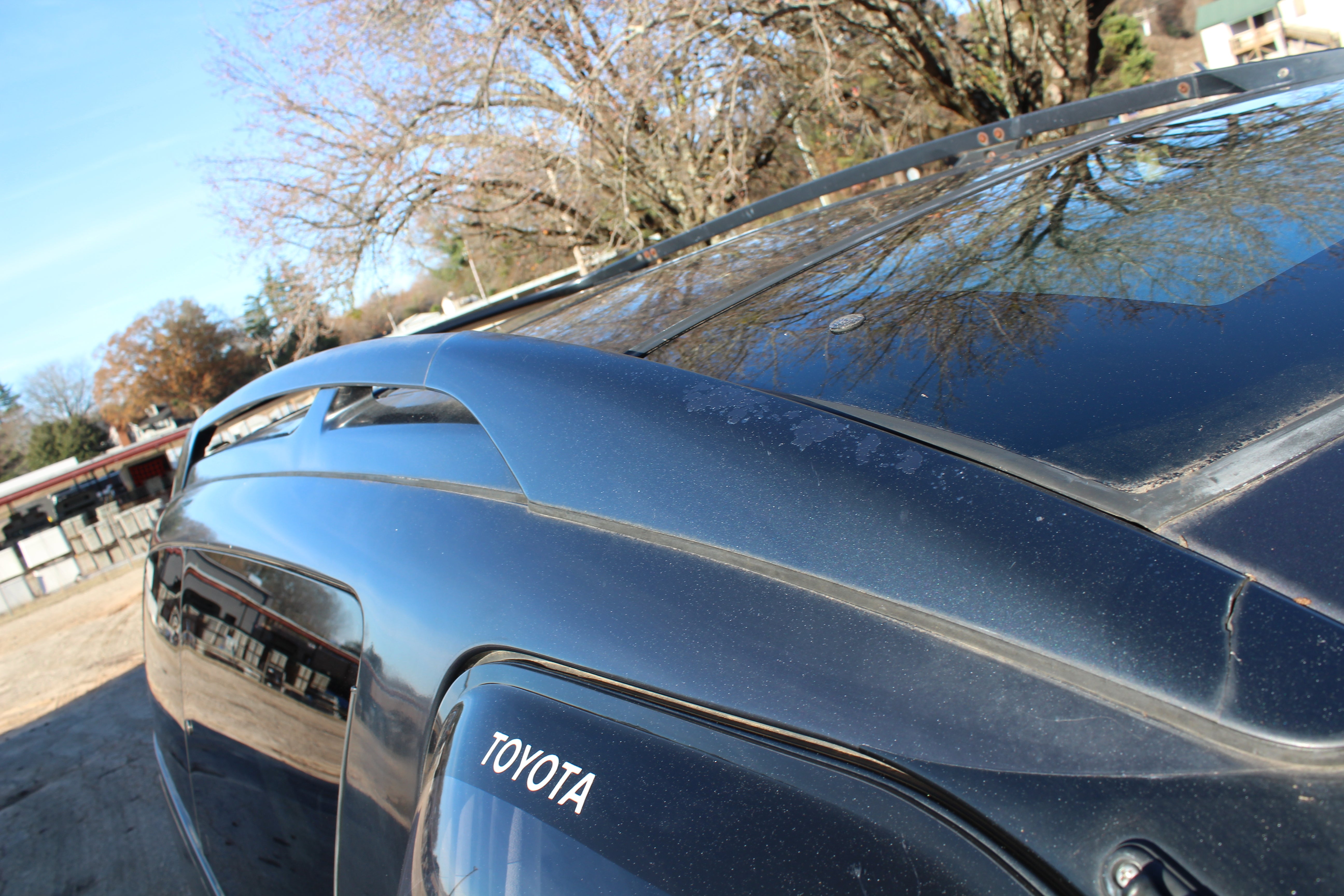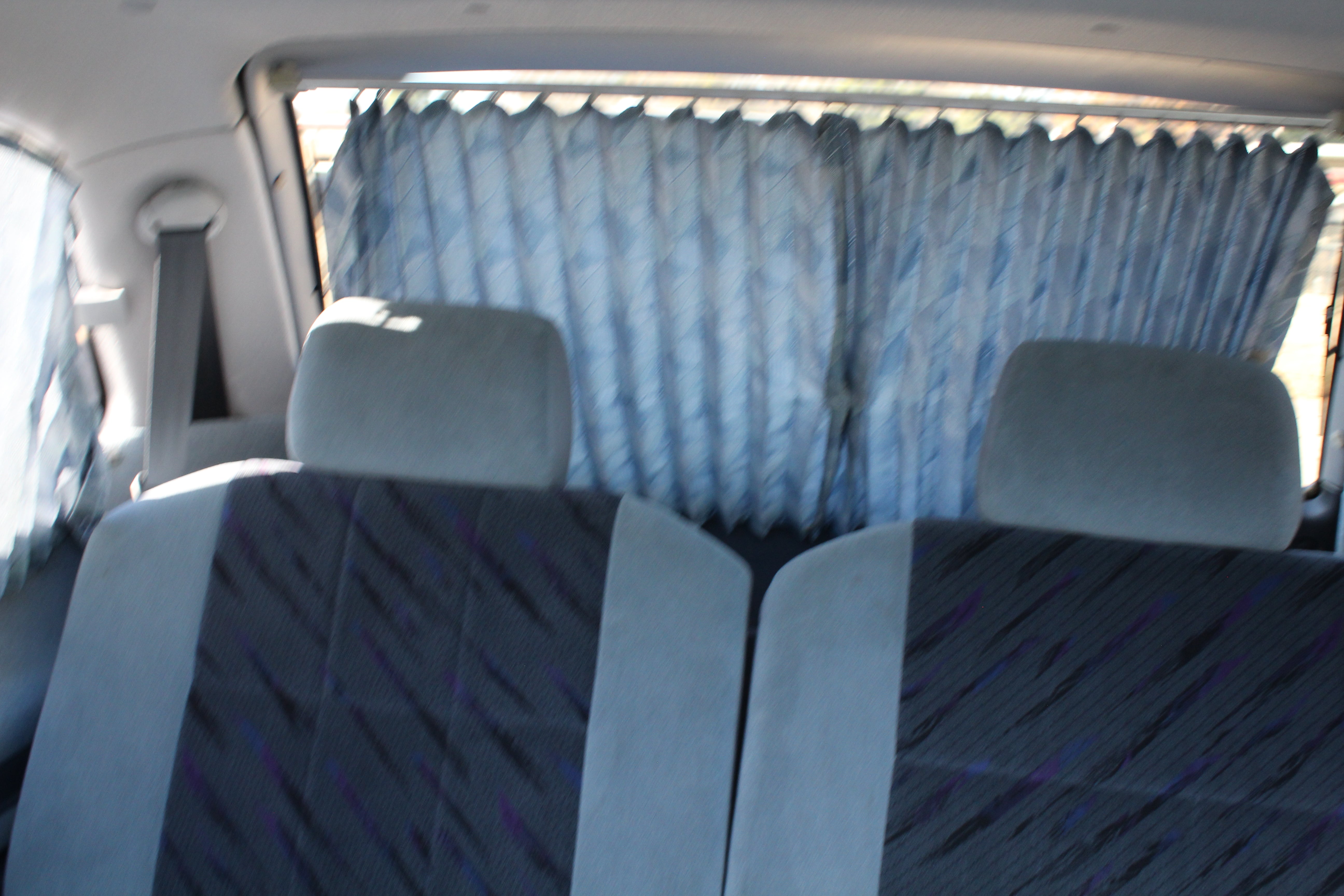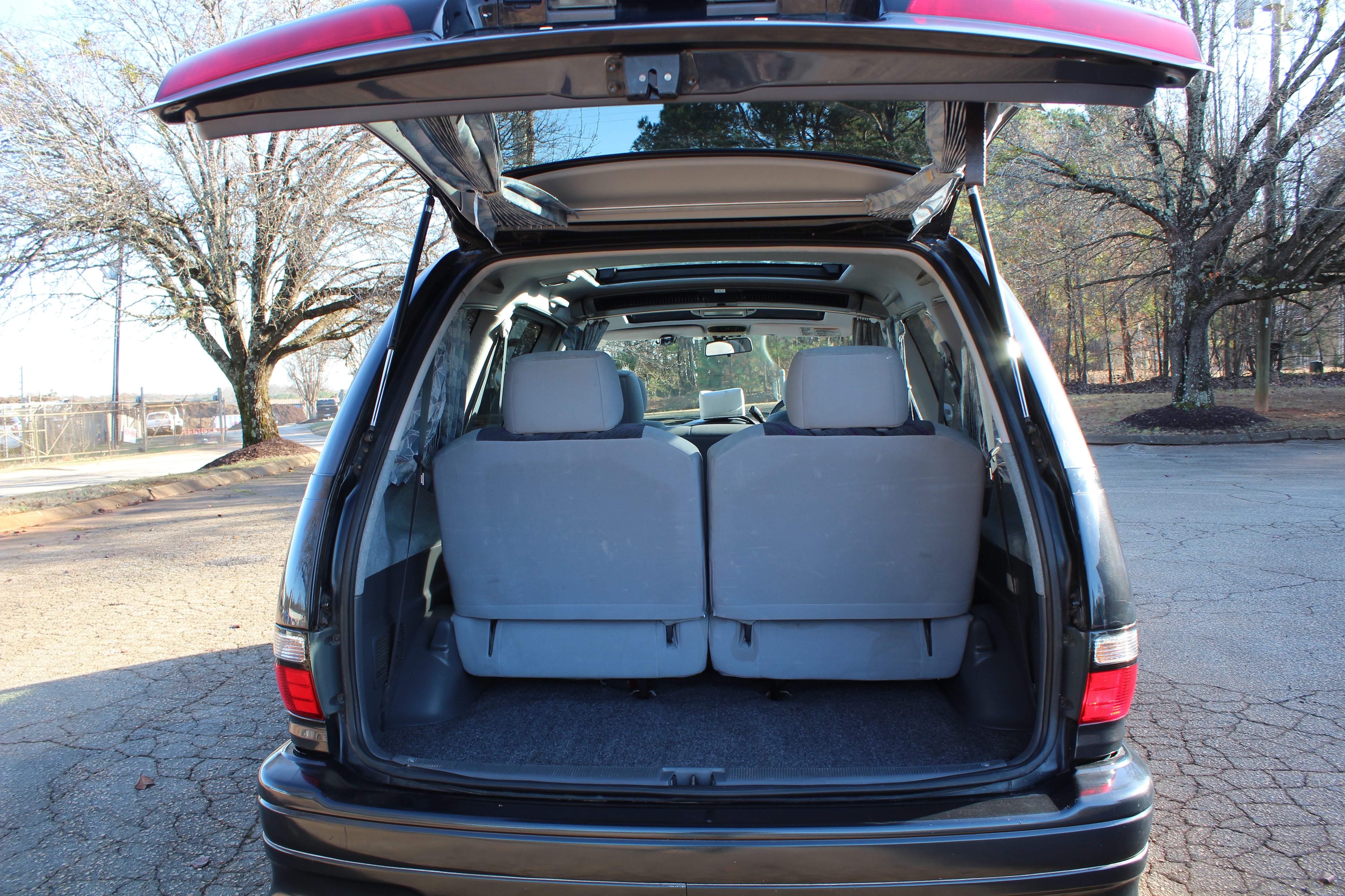 Just has some cosmetic flaws as pictured, dent on rear left quarter, scuffs on front and back bumpers, has paint fade on rear hatch, scratch on rear left sliding door side molding, and someone painted on Japanese writing on it. Interior is good besides for some stains as pictured.