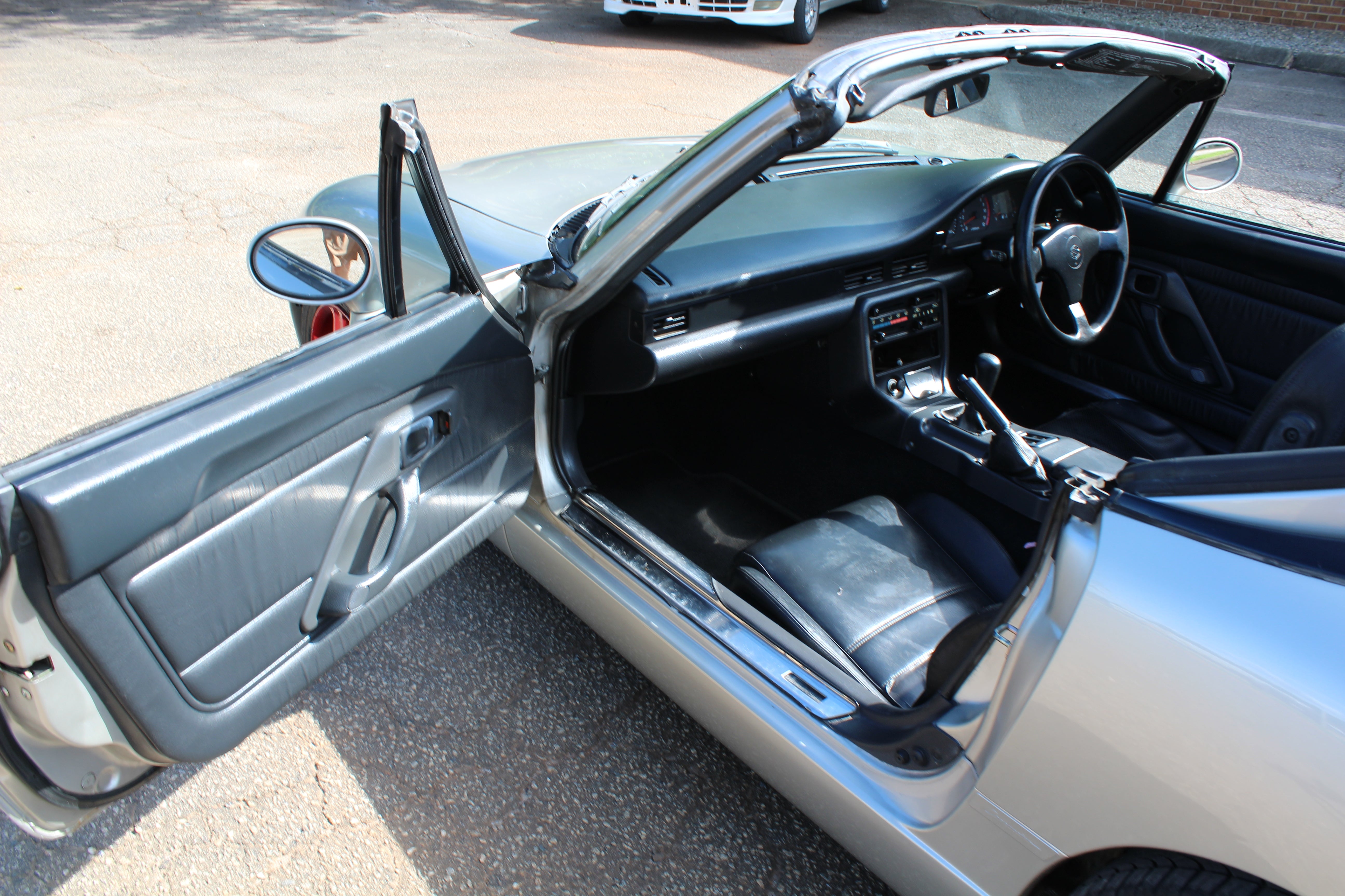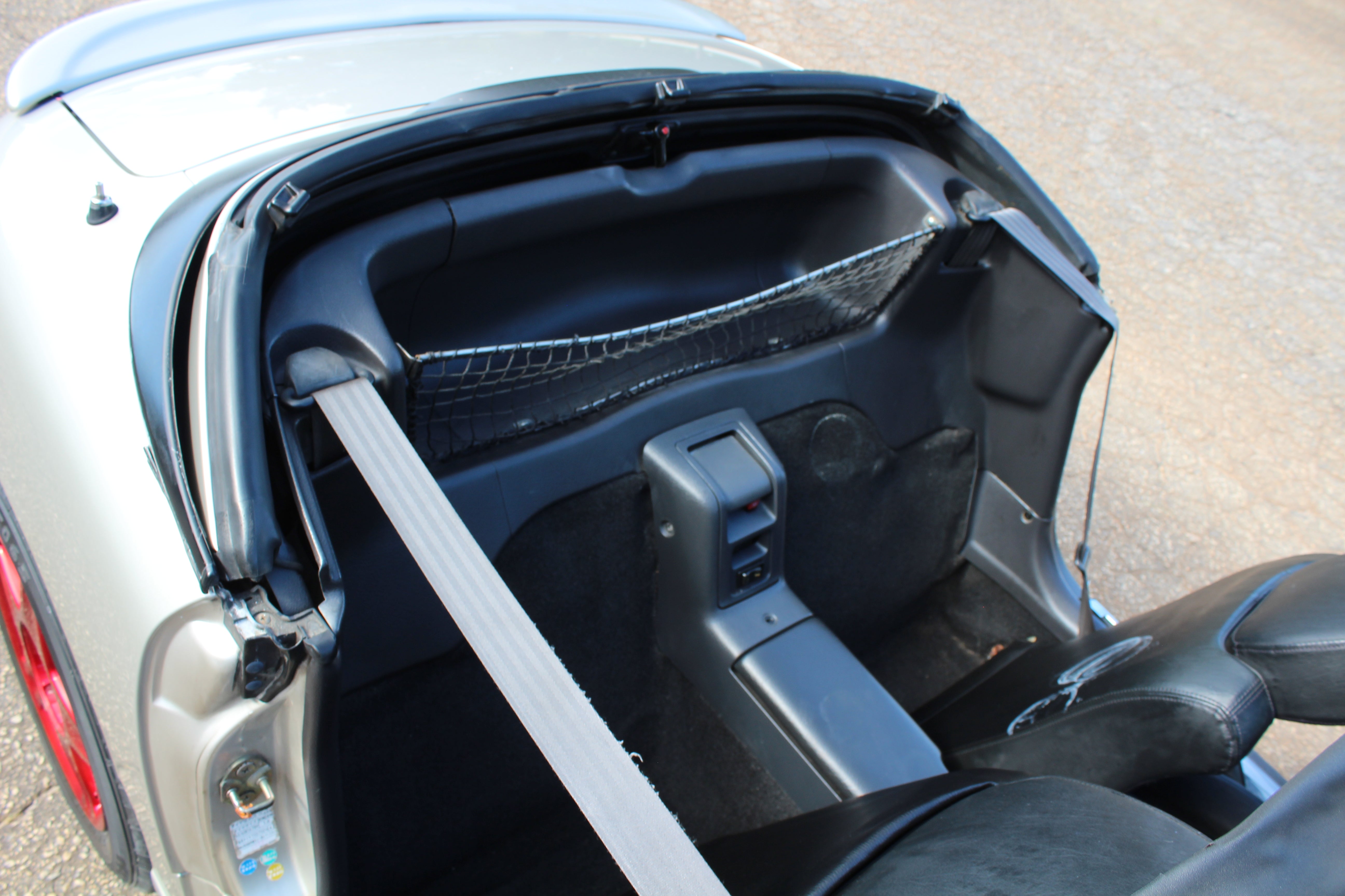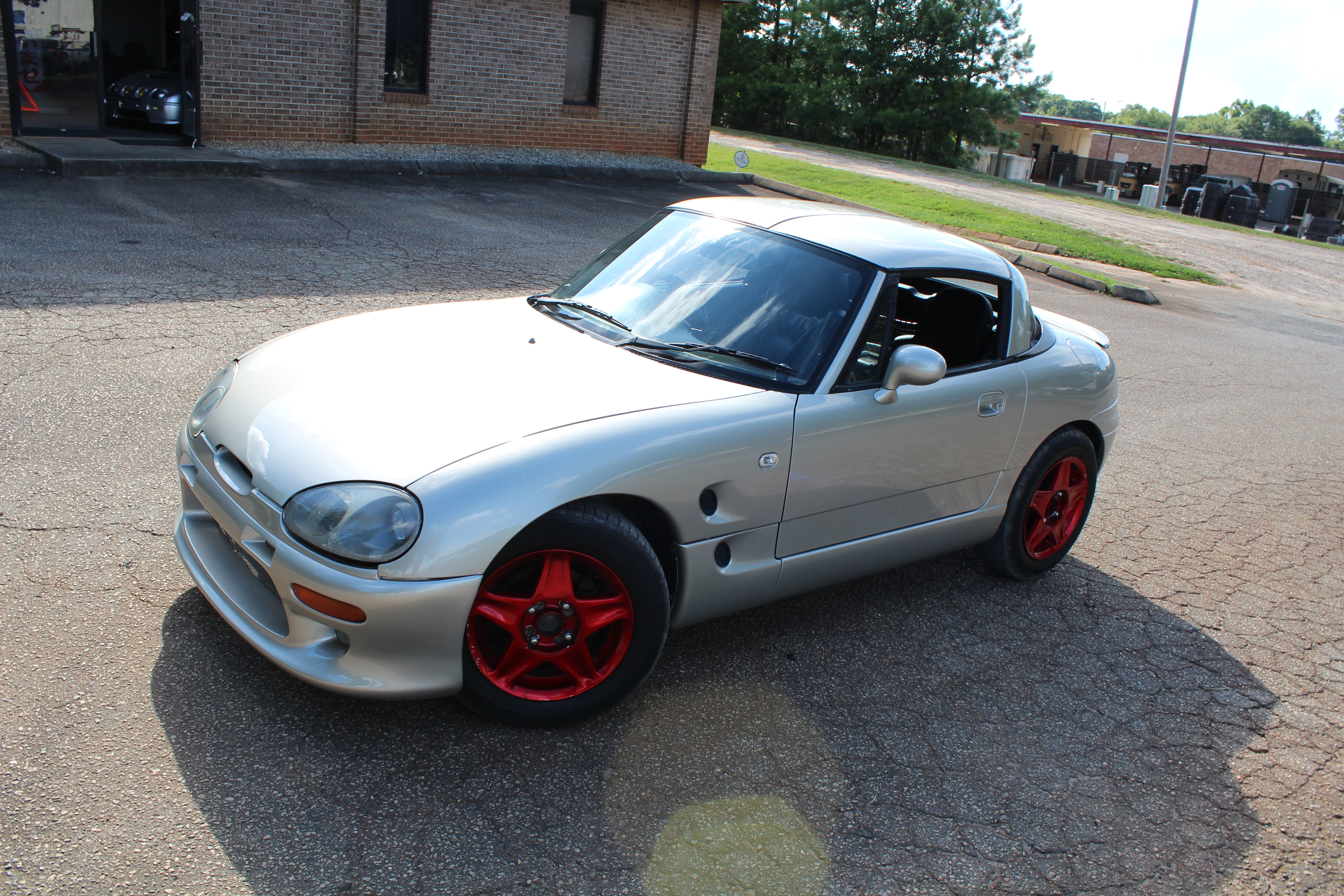 3 Cylinder Turbo Manual Sporty Kei car, weighs in at around 1600lbs, 50/50 weight distribution, fun little cars to drive. The Roof is 3 panels and the rear glass folds back, something really different from any other car.