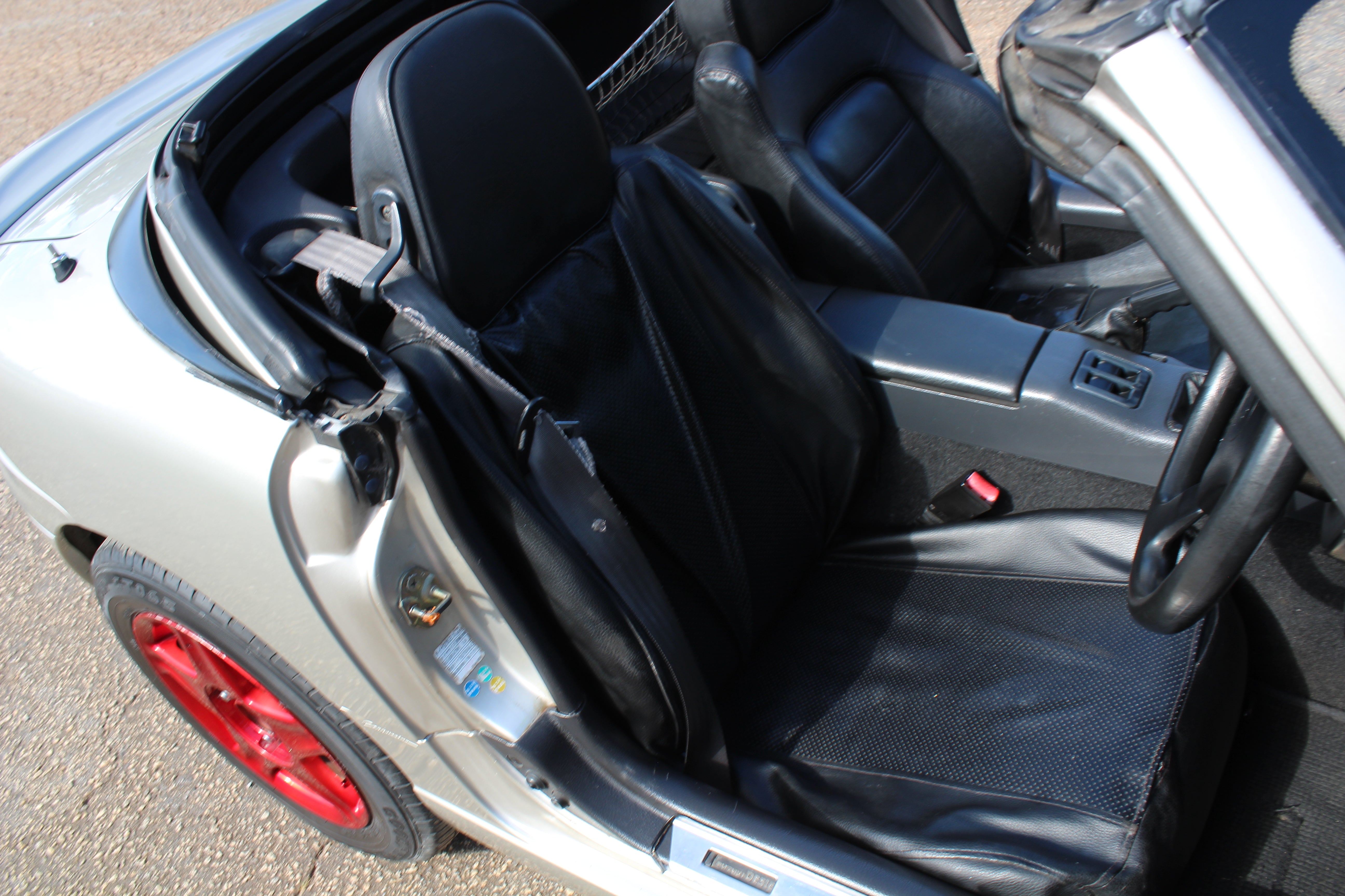 The rear spoiler has some cracks in the paint but besides that nice professional paint job. Both seats have wear, crack in dash above cluster and some holes above glove box. The black trim on top of the doors has some fade. All flaws pictured so please look at pictures carefully.