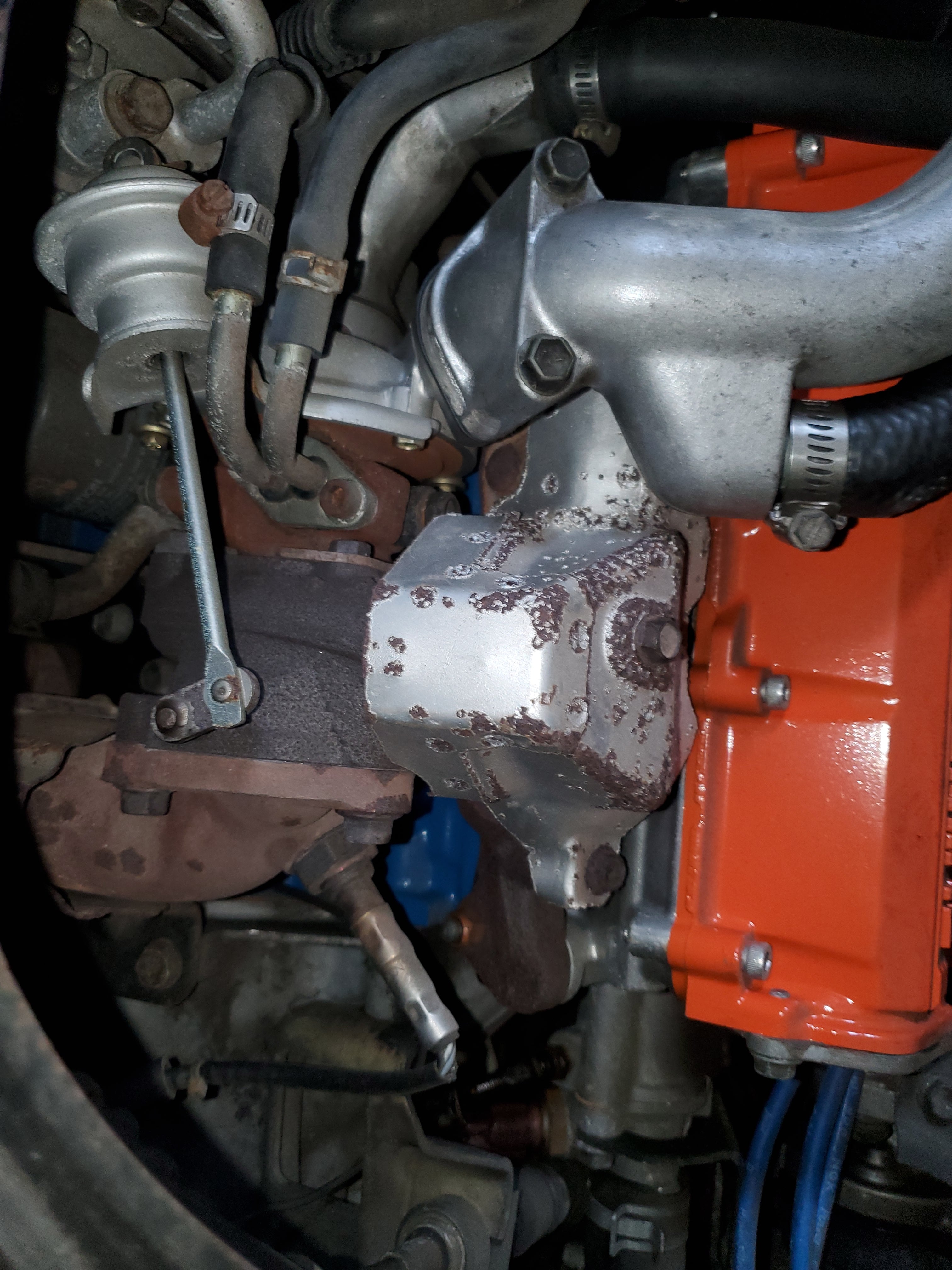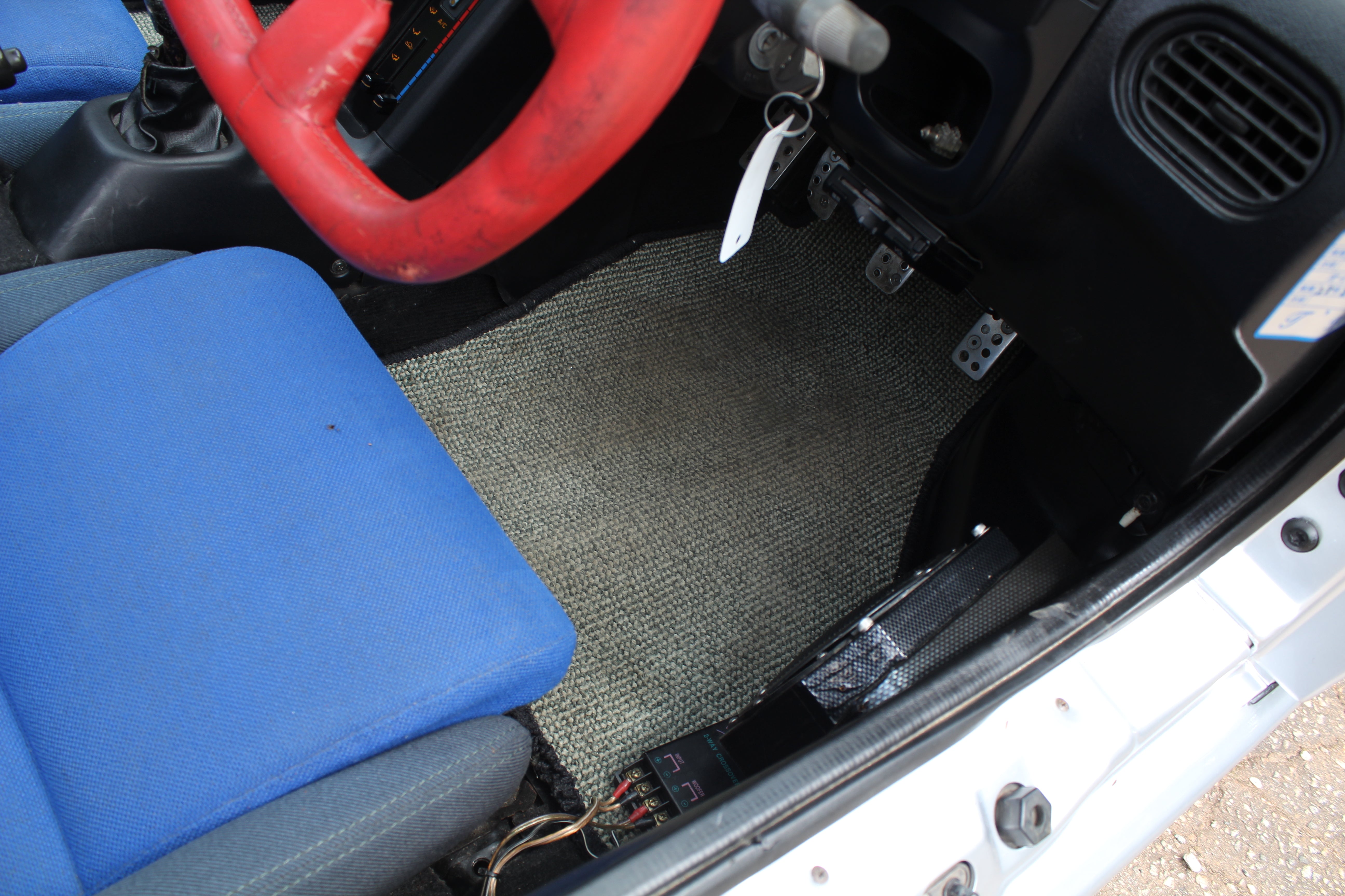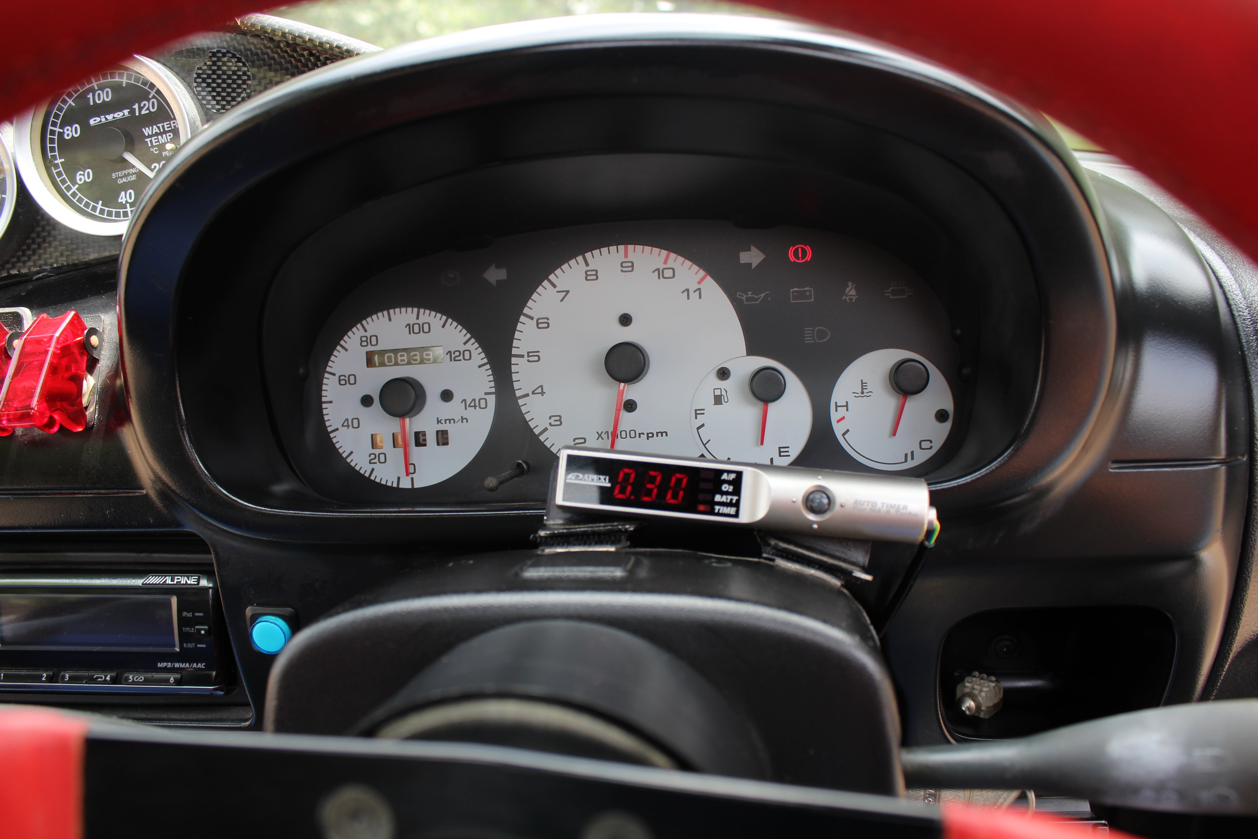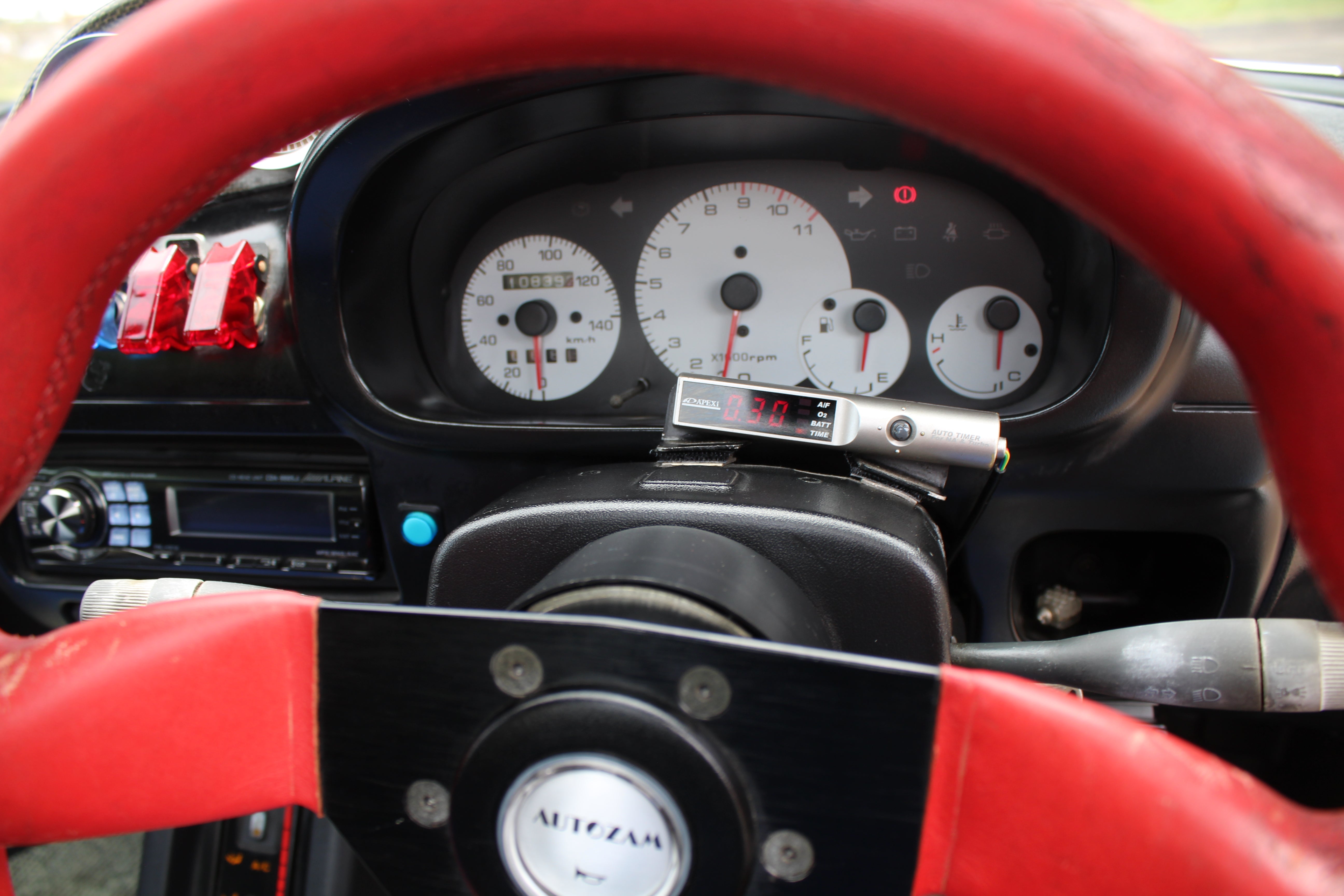 Engine Upgrades: Built engine with blue-painted block and orange valve cover, aftermarket suspension, exhaust, ARC intake box, blow-off valve, boost controller, and gauges