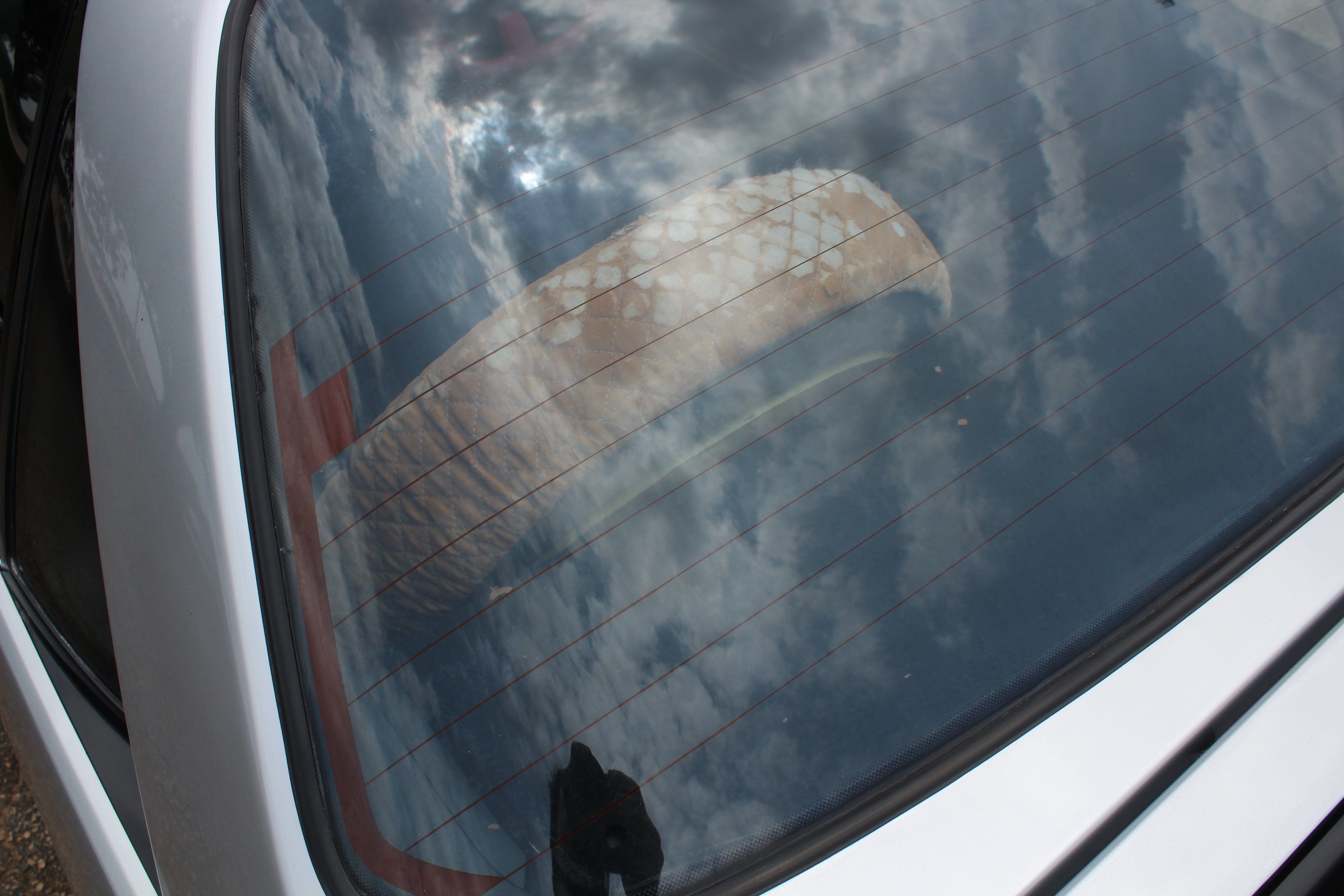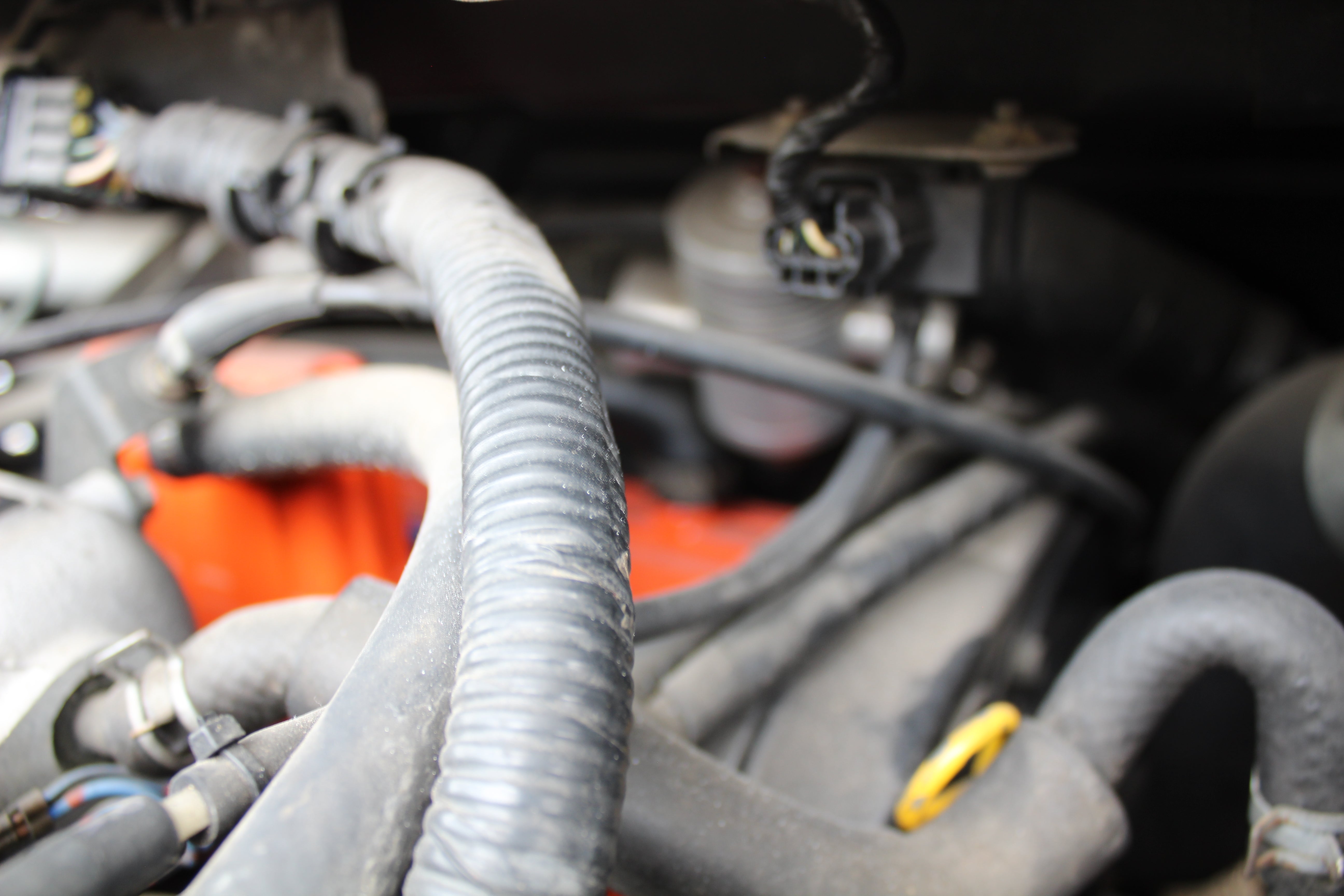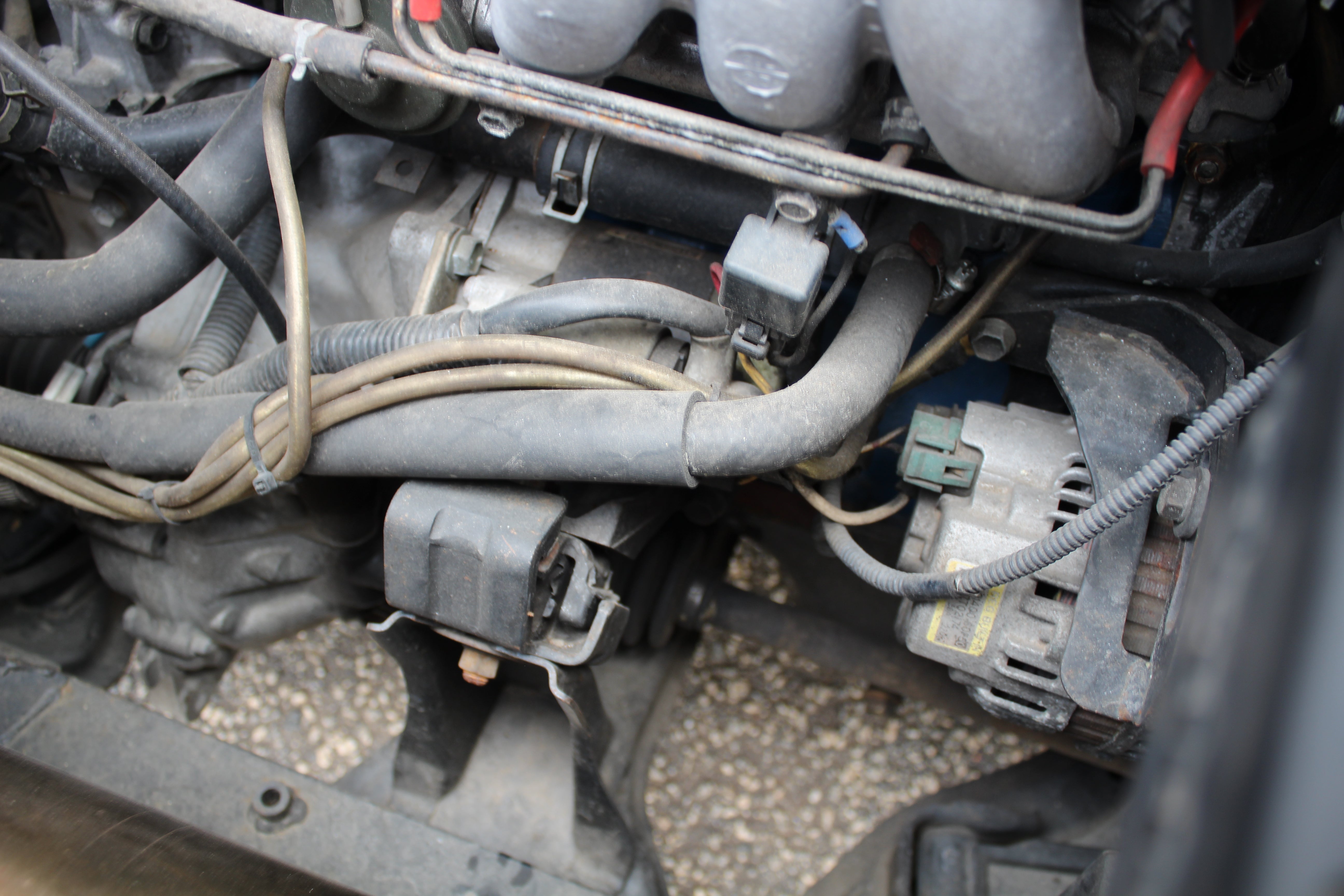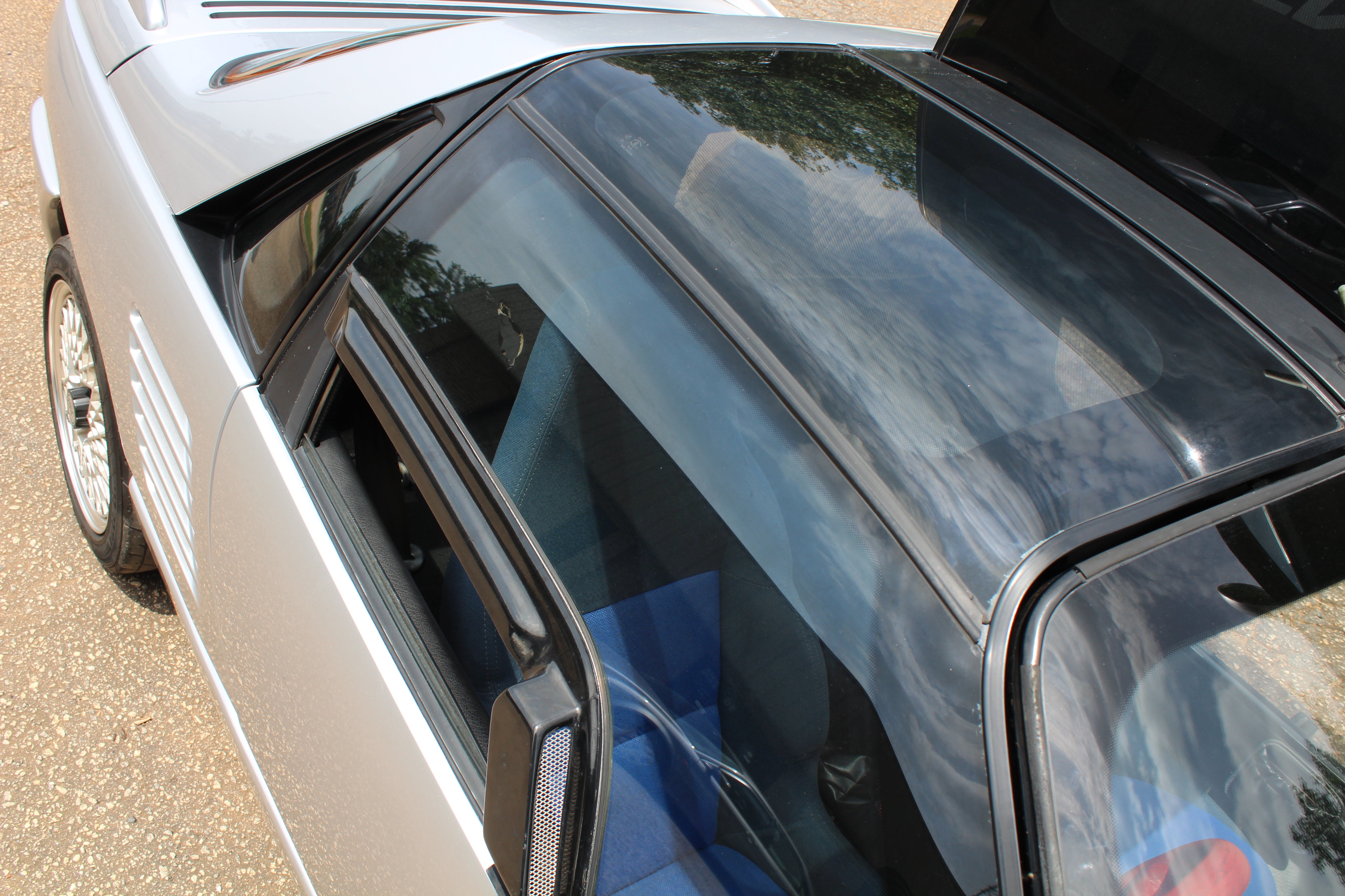 Interior: Driver seat shows wear with a cigarette burn, spare tire cover has sun fading, factory wiper squirter relocated from the hood to the wiper (hole in the hood from original placement)