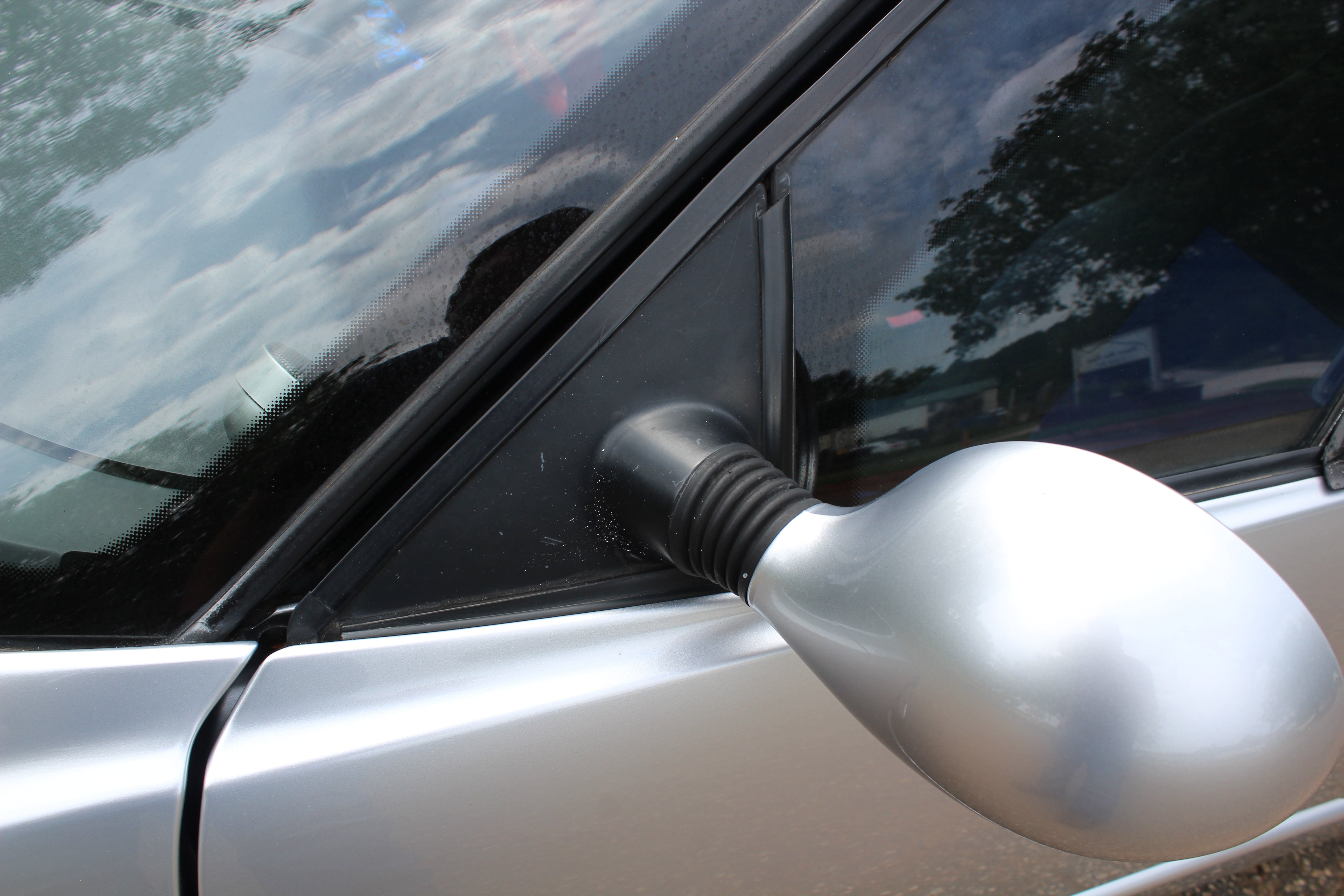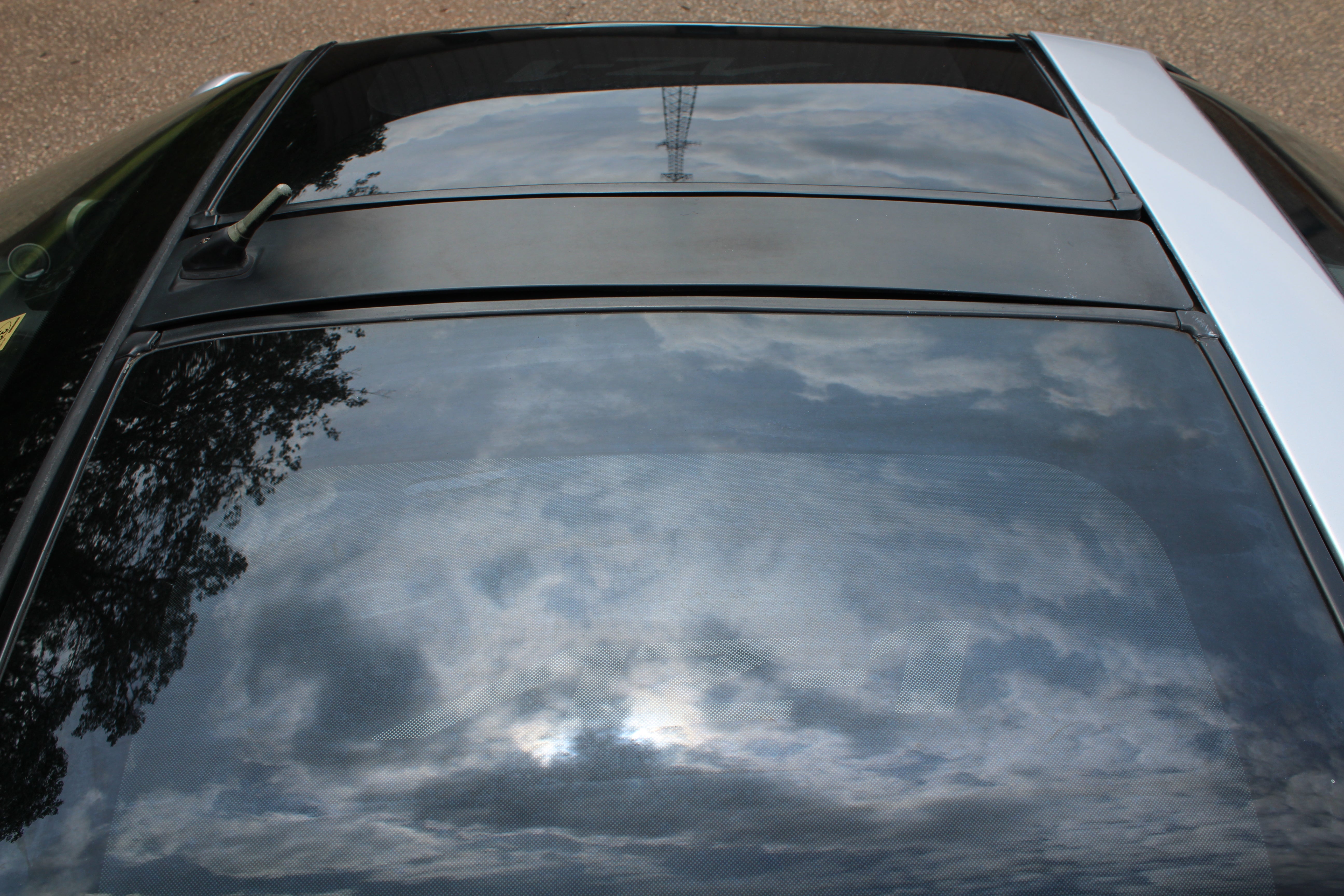 Exterior: Minor paint imperfections on black trim near mirrors, small line on the front-right bumper corner