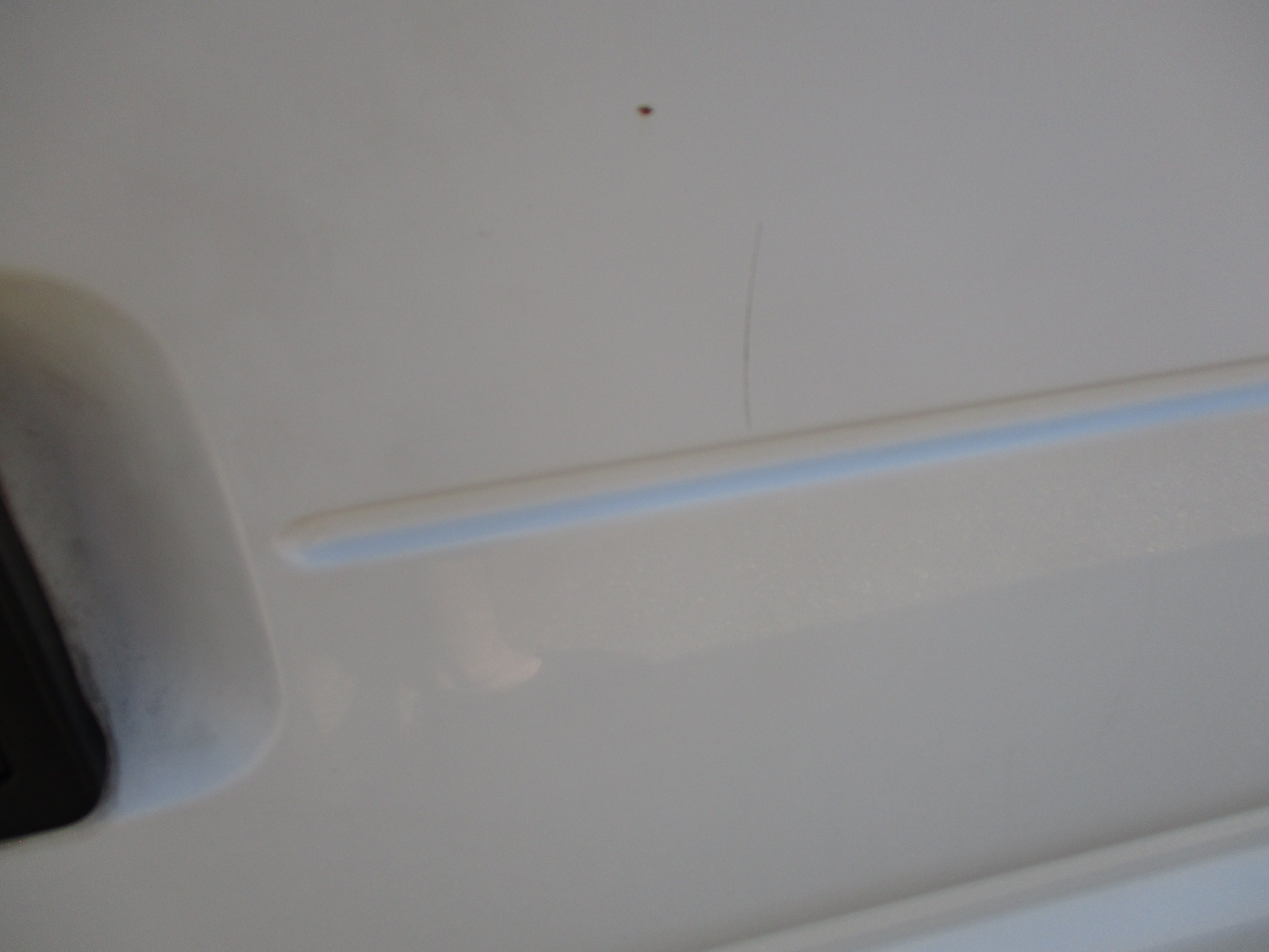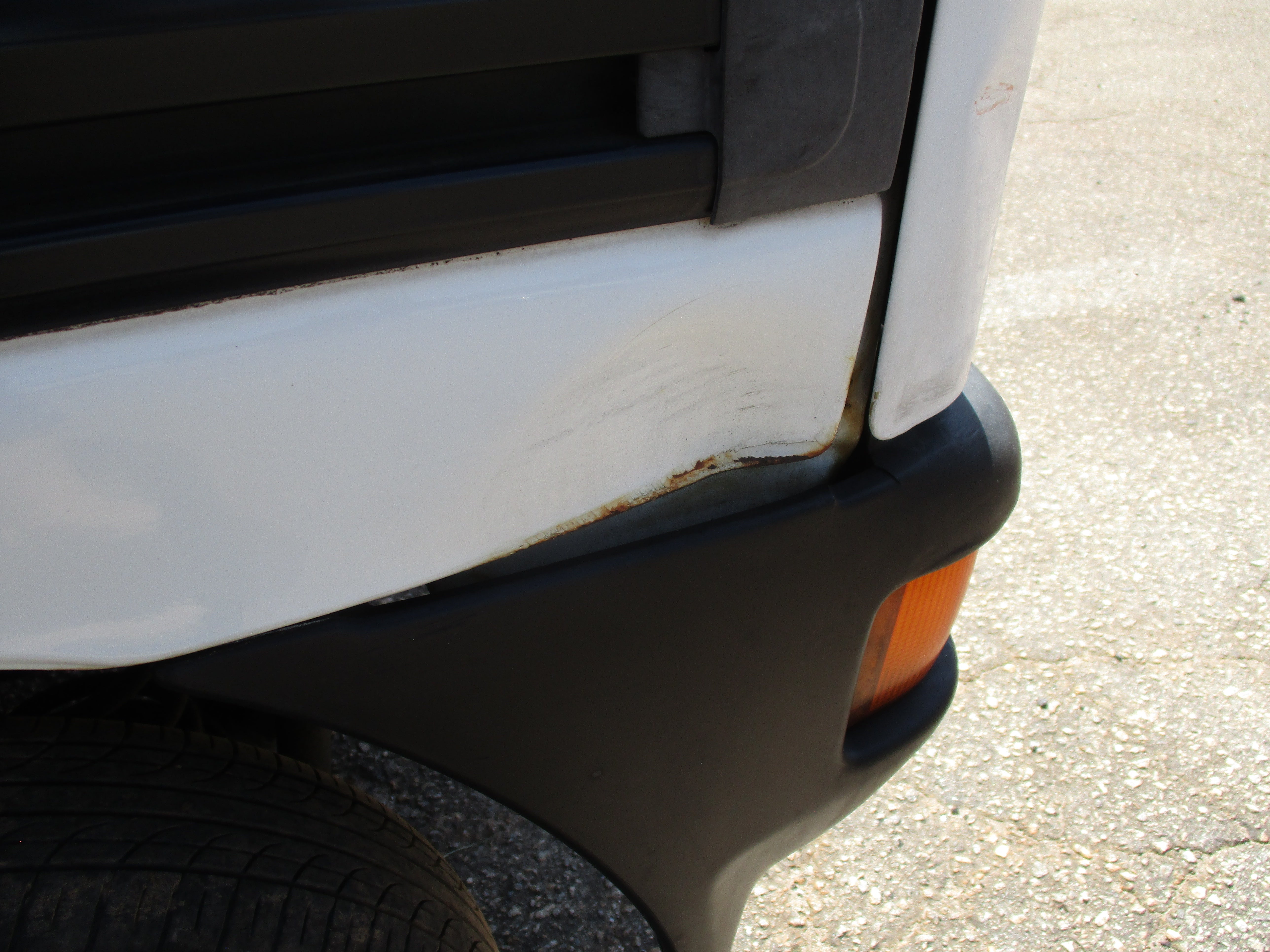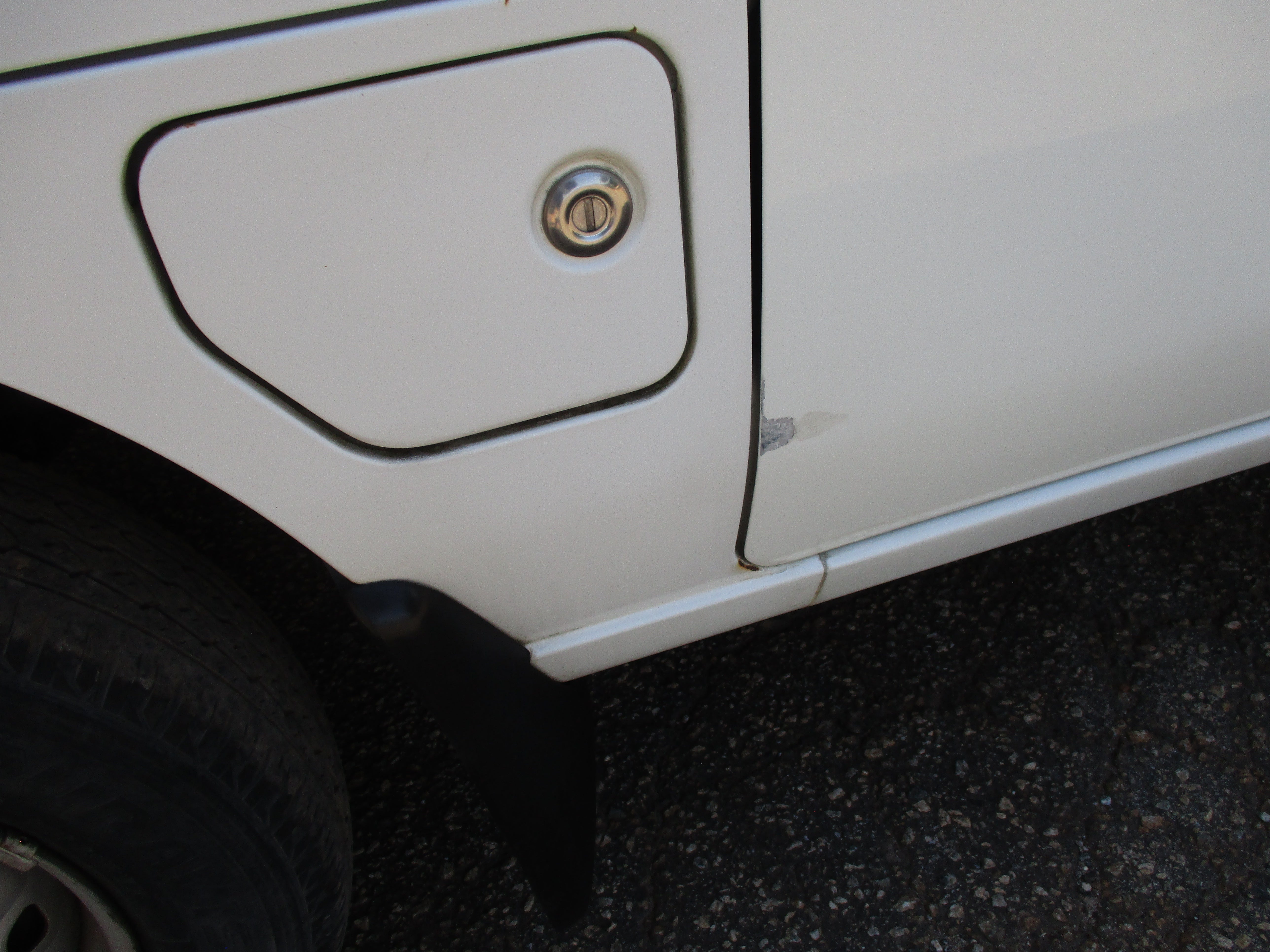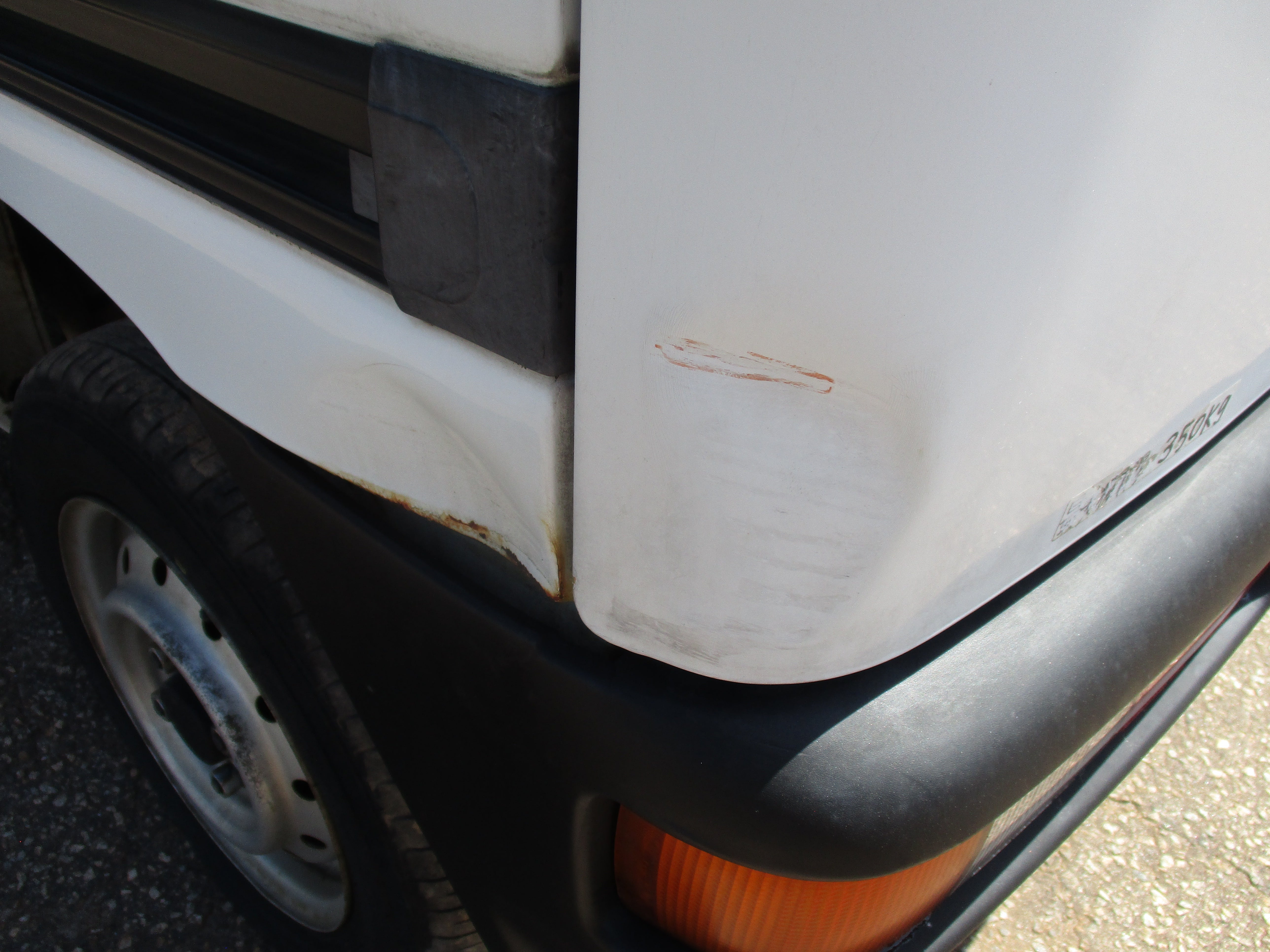 Has some scuffs as pictured, dent in rear left corner, scuff on left sliding door, all flaws pictured.