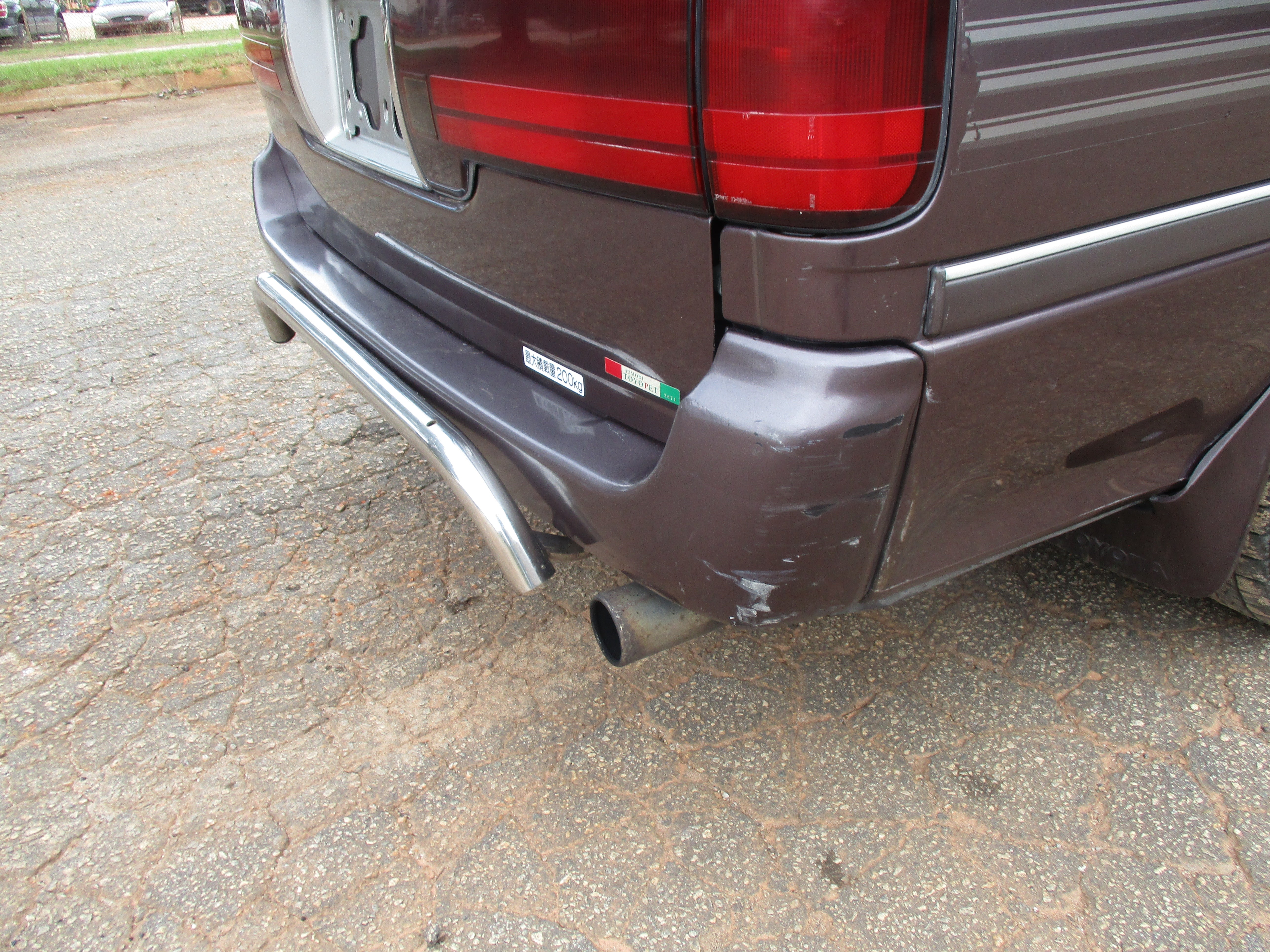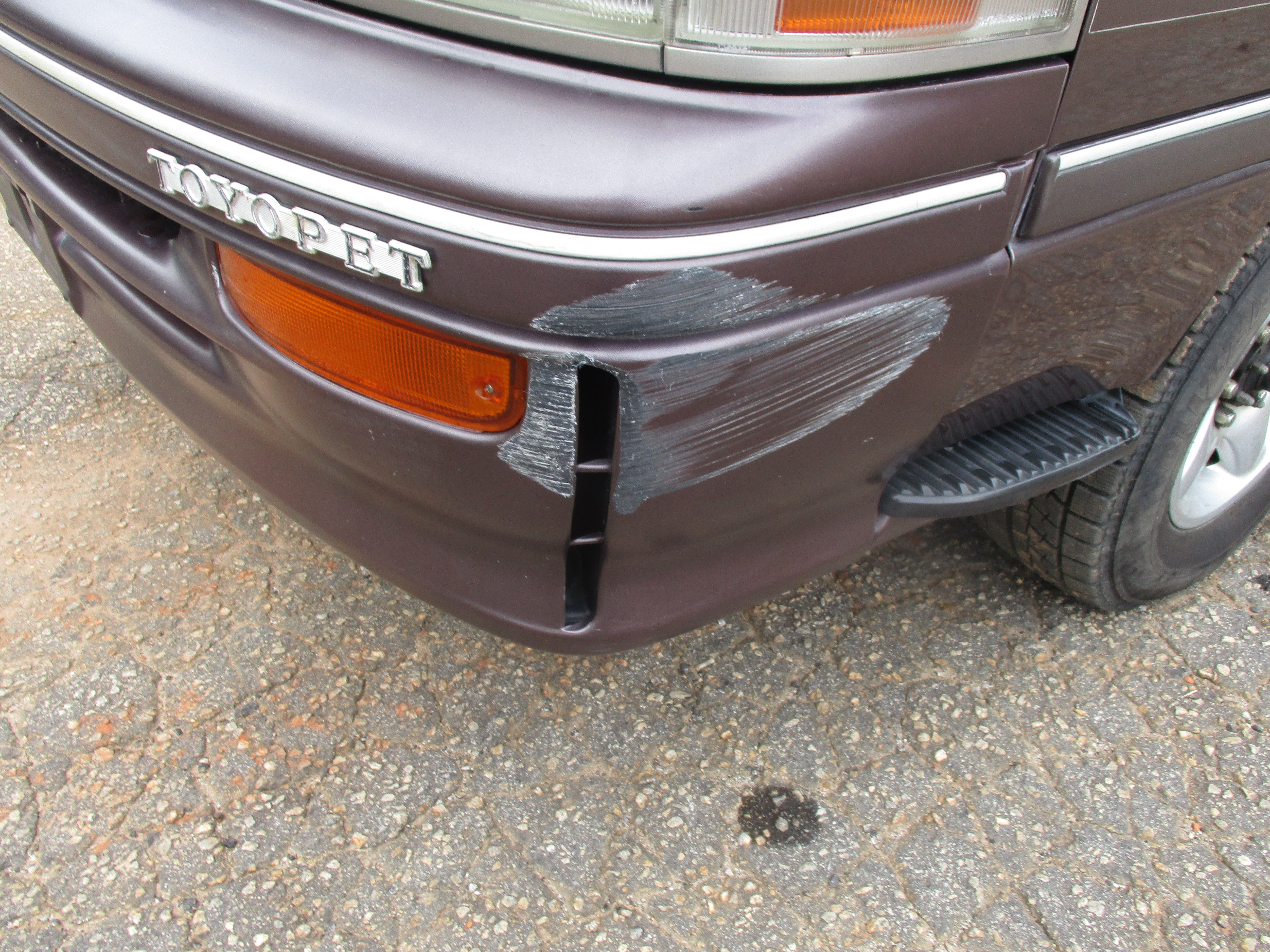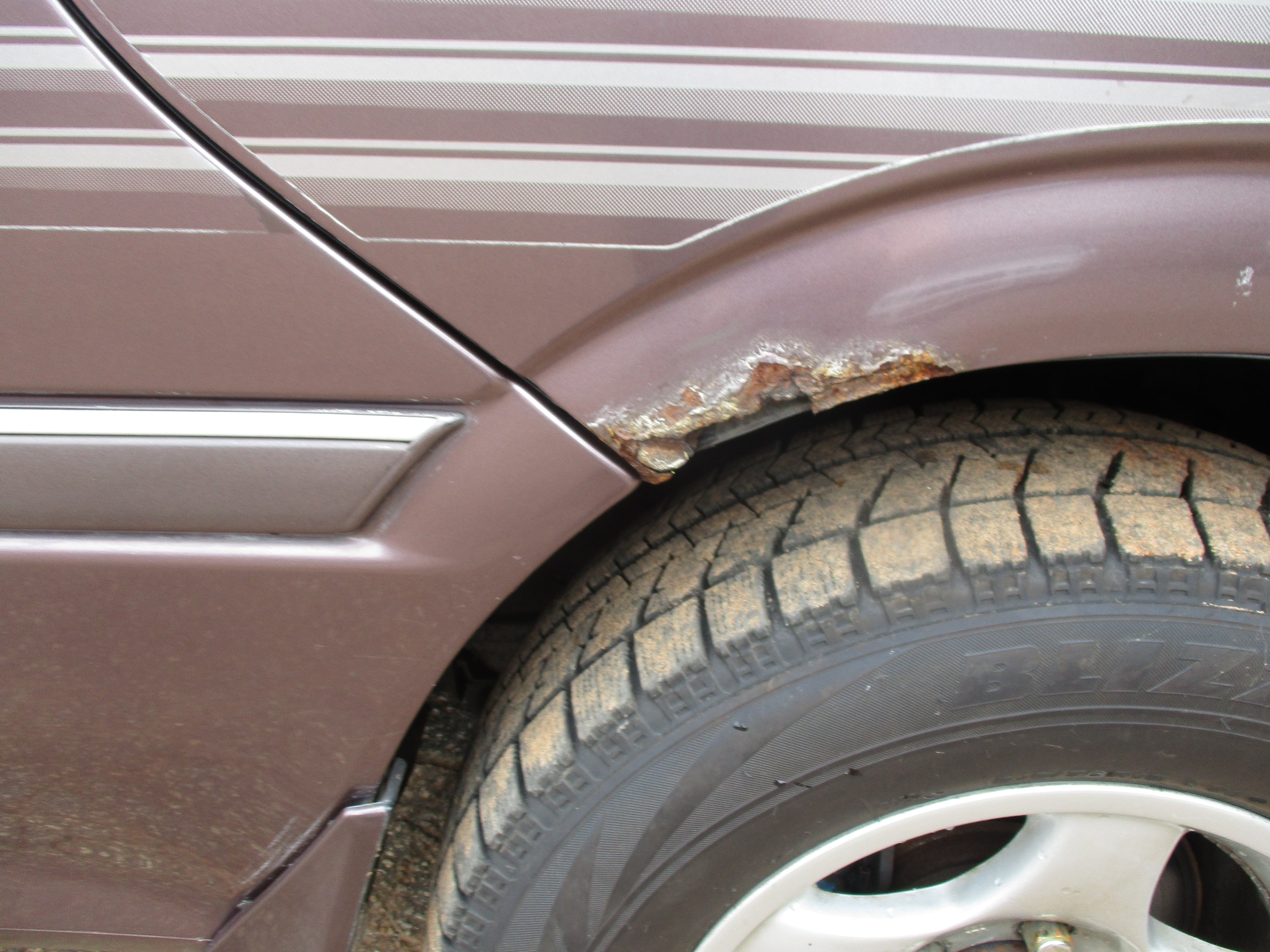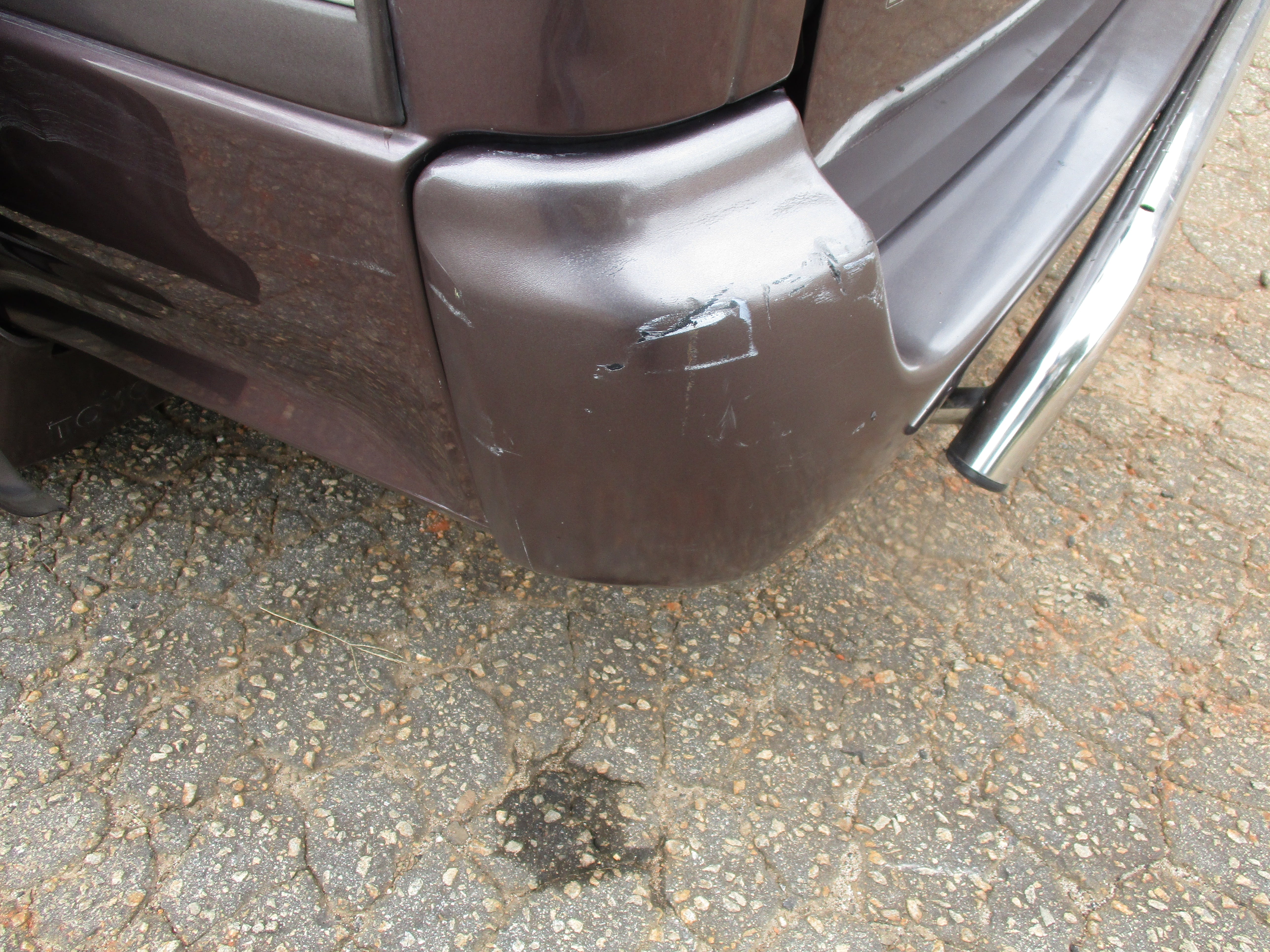 Has some scuffs on rear bumper corners, front bumper left corner, rust around bottom of driver door(only spot), and then looks like something got caught on the sliding door and put a dent in quarter as pictured.