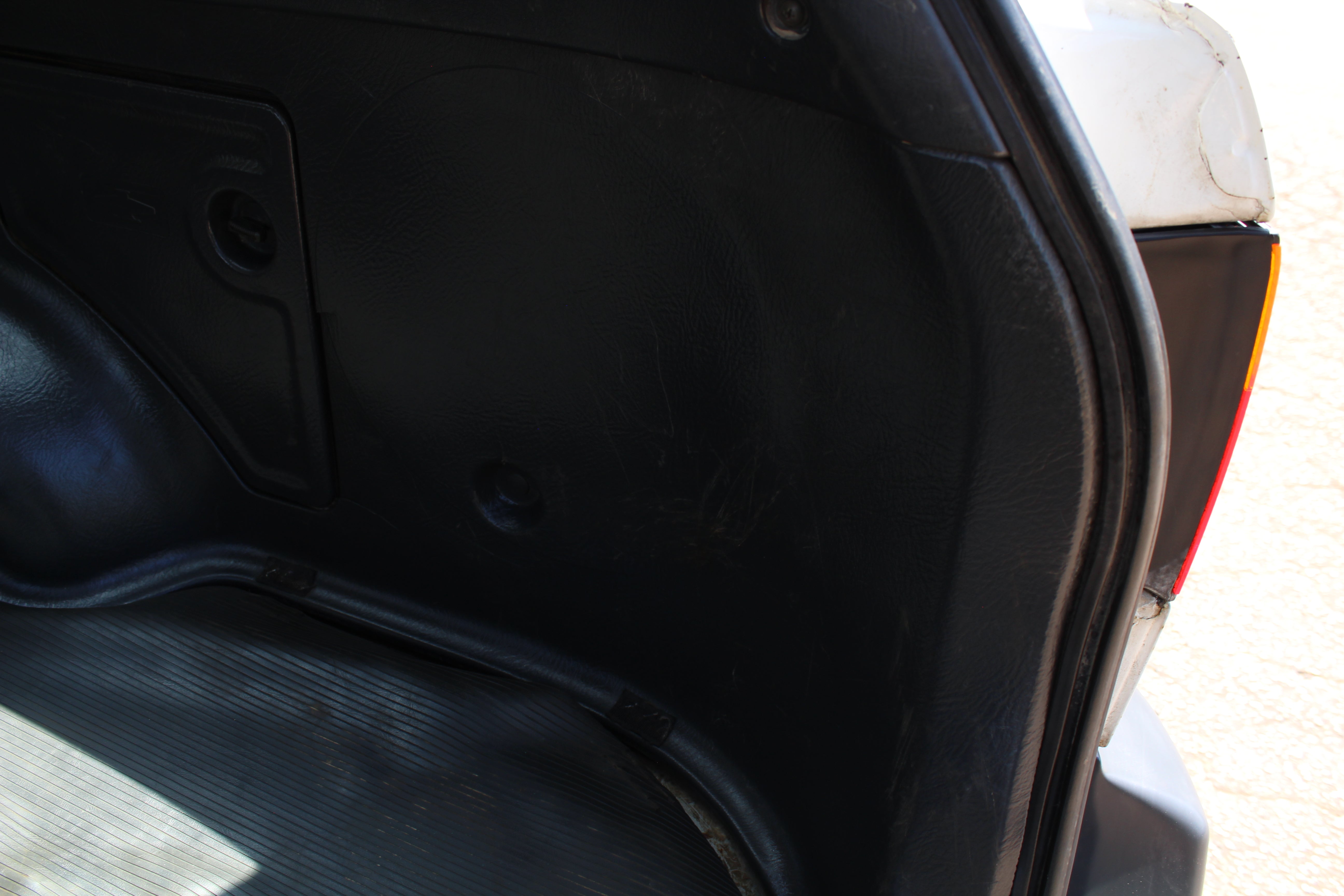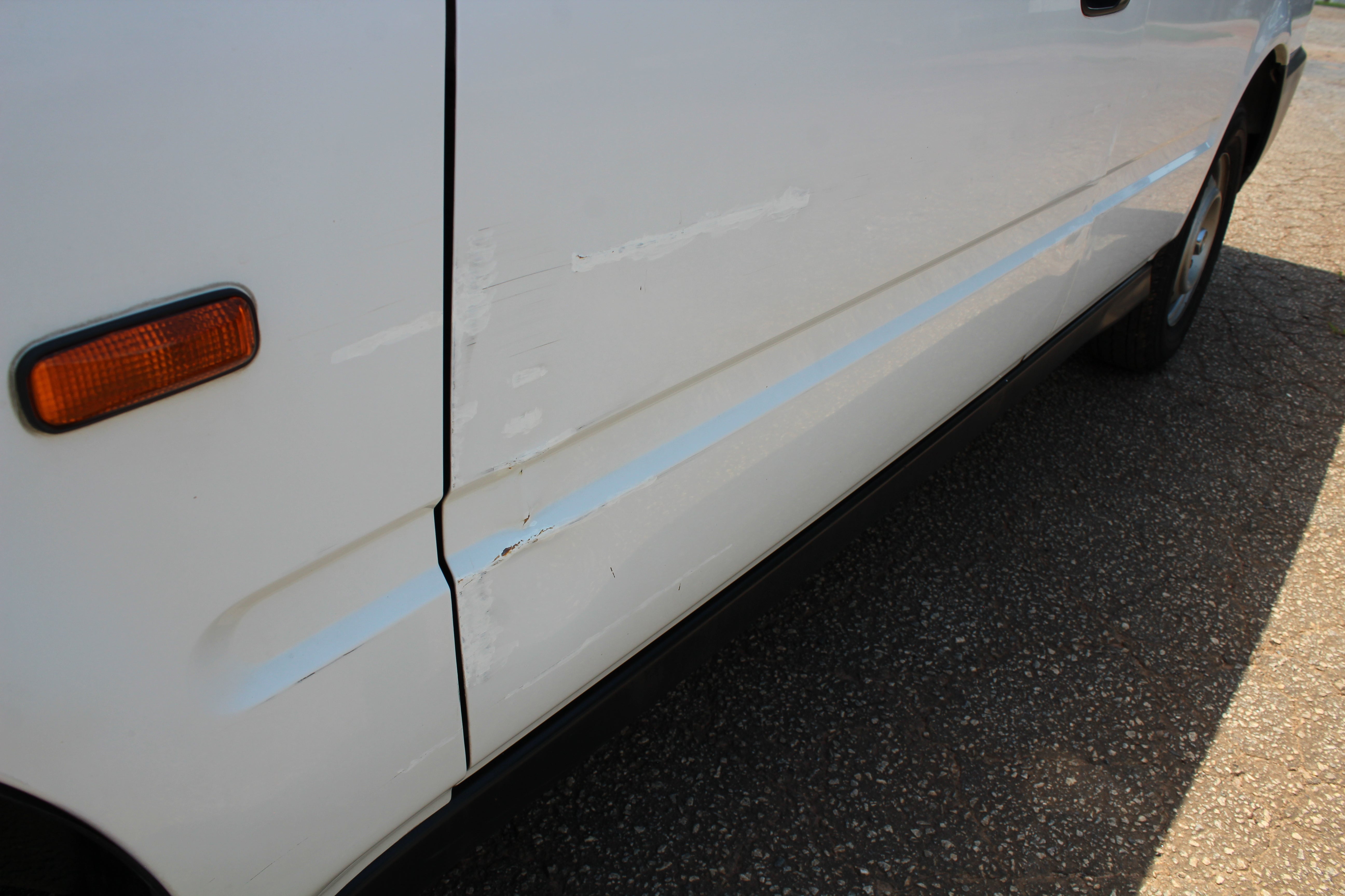 Driver seat has some wear, rear interior panels have scuffs and the rear right has a crack in it, front left bumper has a scuff, front left fender has a dent, left front door has a dent/scuffs, rear left door has a scuff, dent on rear right quarter, small ding on rear right door, scuffs/scratch on driver door, ding above rear left tail light, rear bumper has some scuffs. Rear right window crank handle is missing. Please look at all pictures carefully as all flaws are pictured.