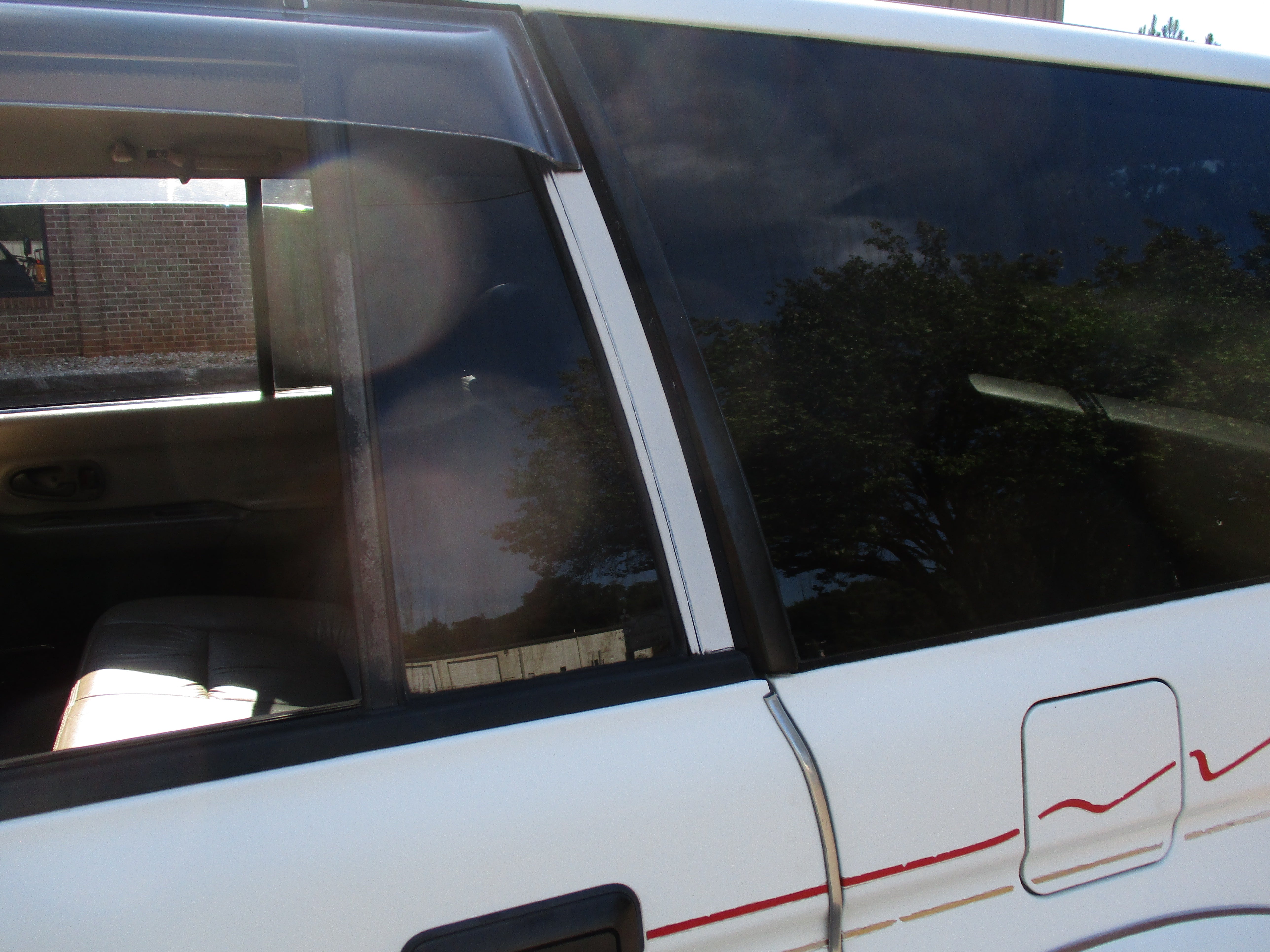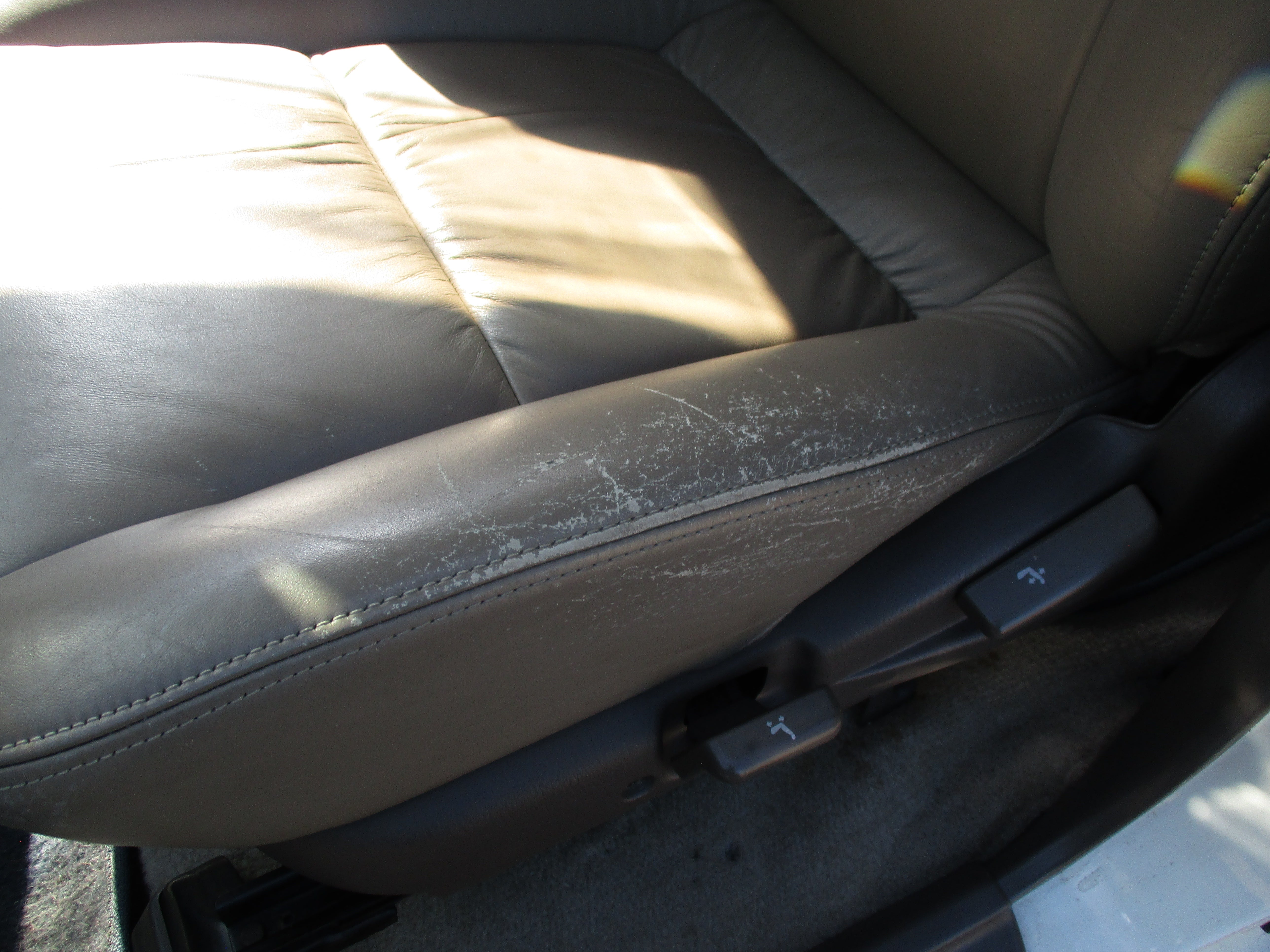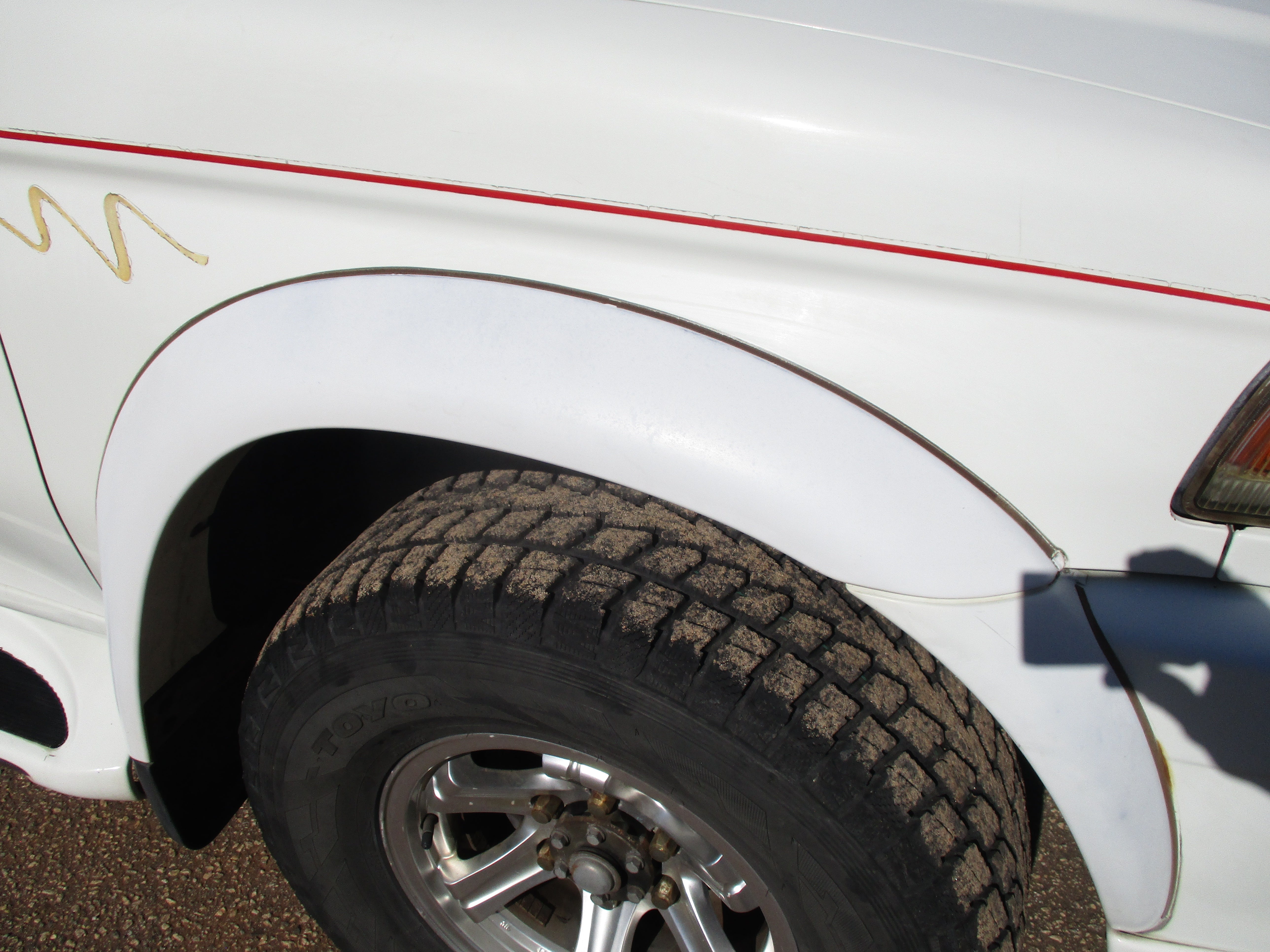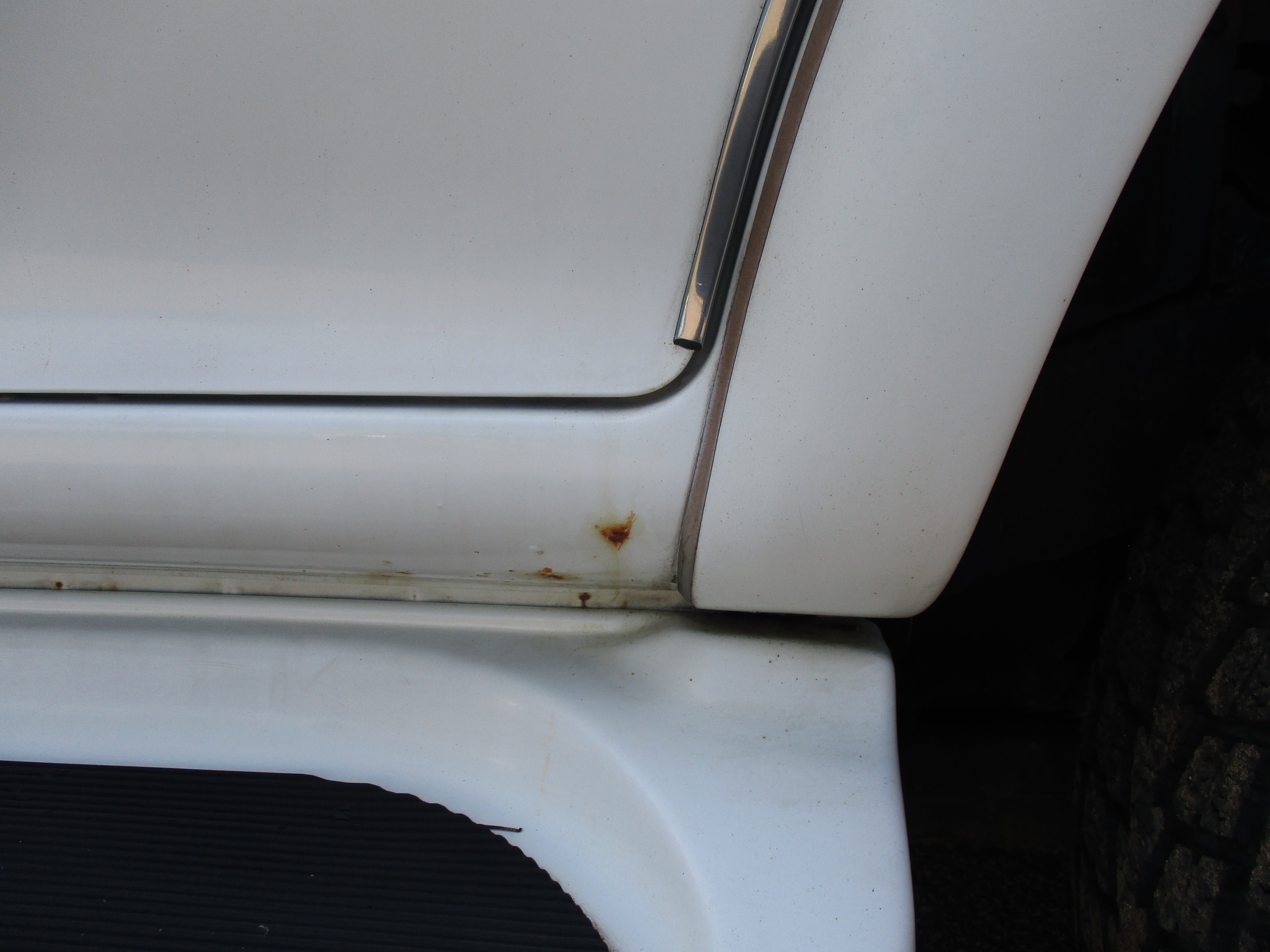Exterior paint is in good condition, sporty rear spoiler and front grill option, has some scuffs as pictured on front and rear bumpers, small rust starting in front of rear wheel wells by both doors as pictured. Hood Scoop has paint fade and front fender flares paint starting to get dull. Right running board has some wear as pictured. Leather front seats have some wear.