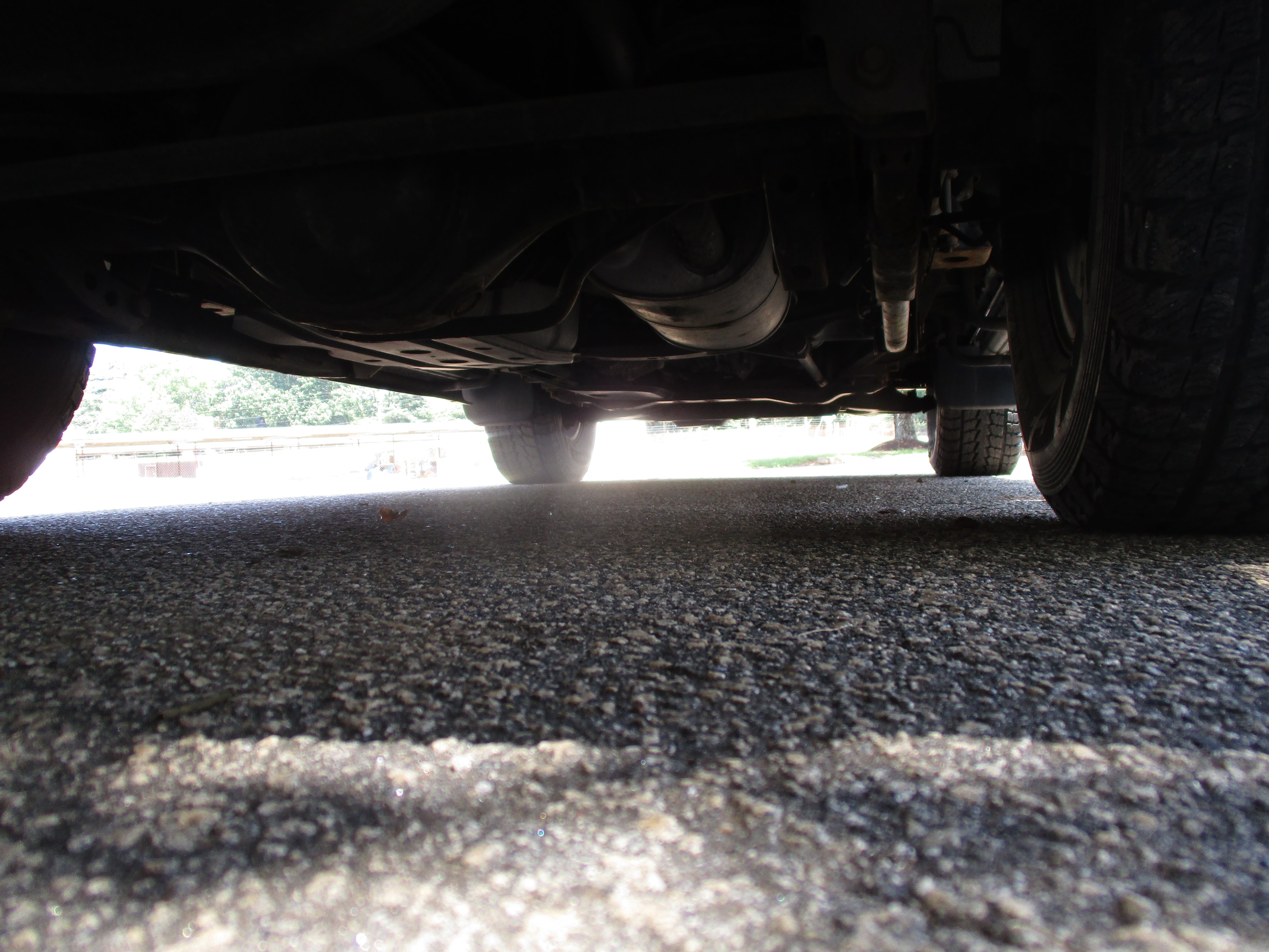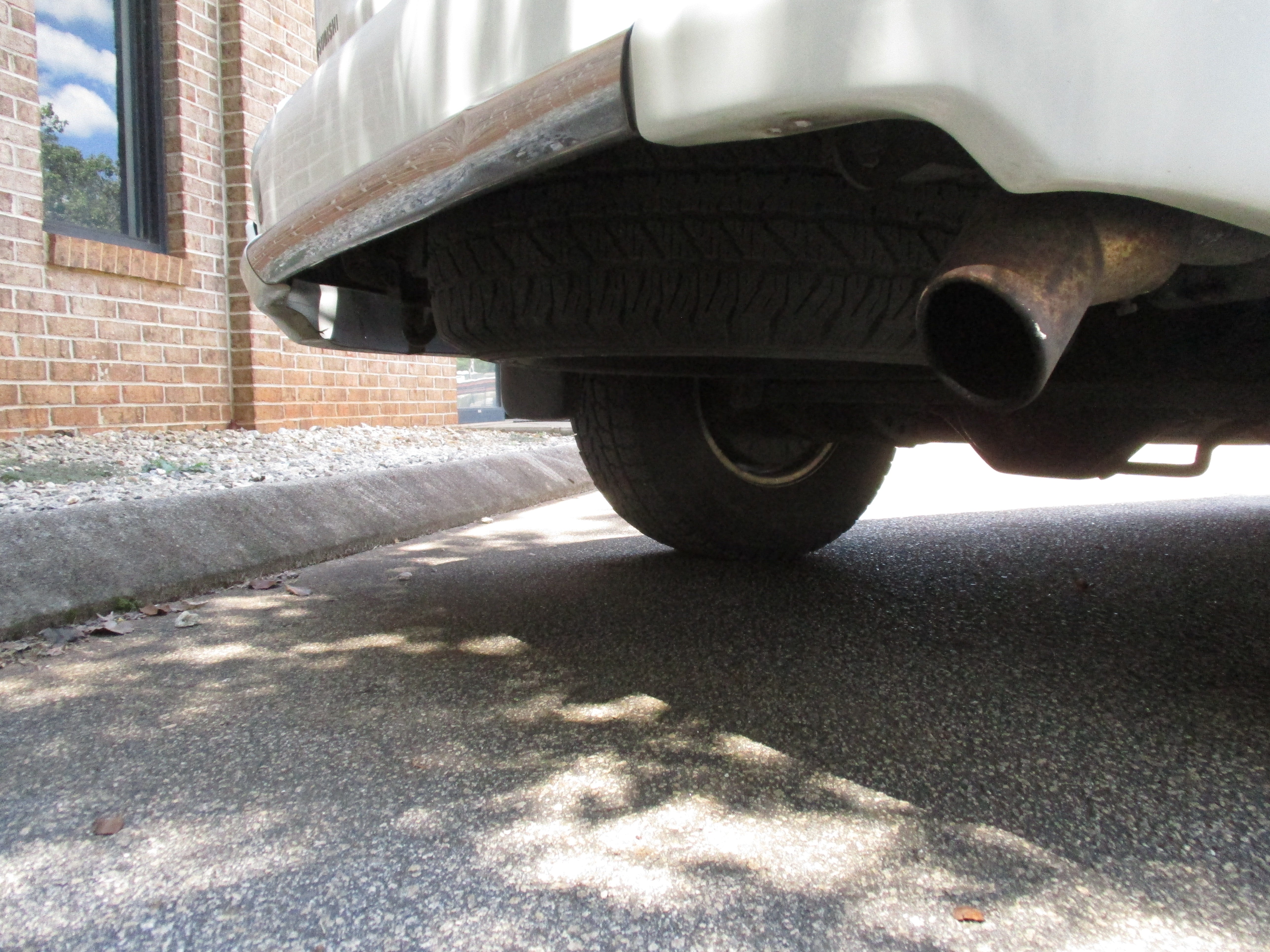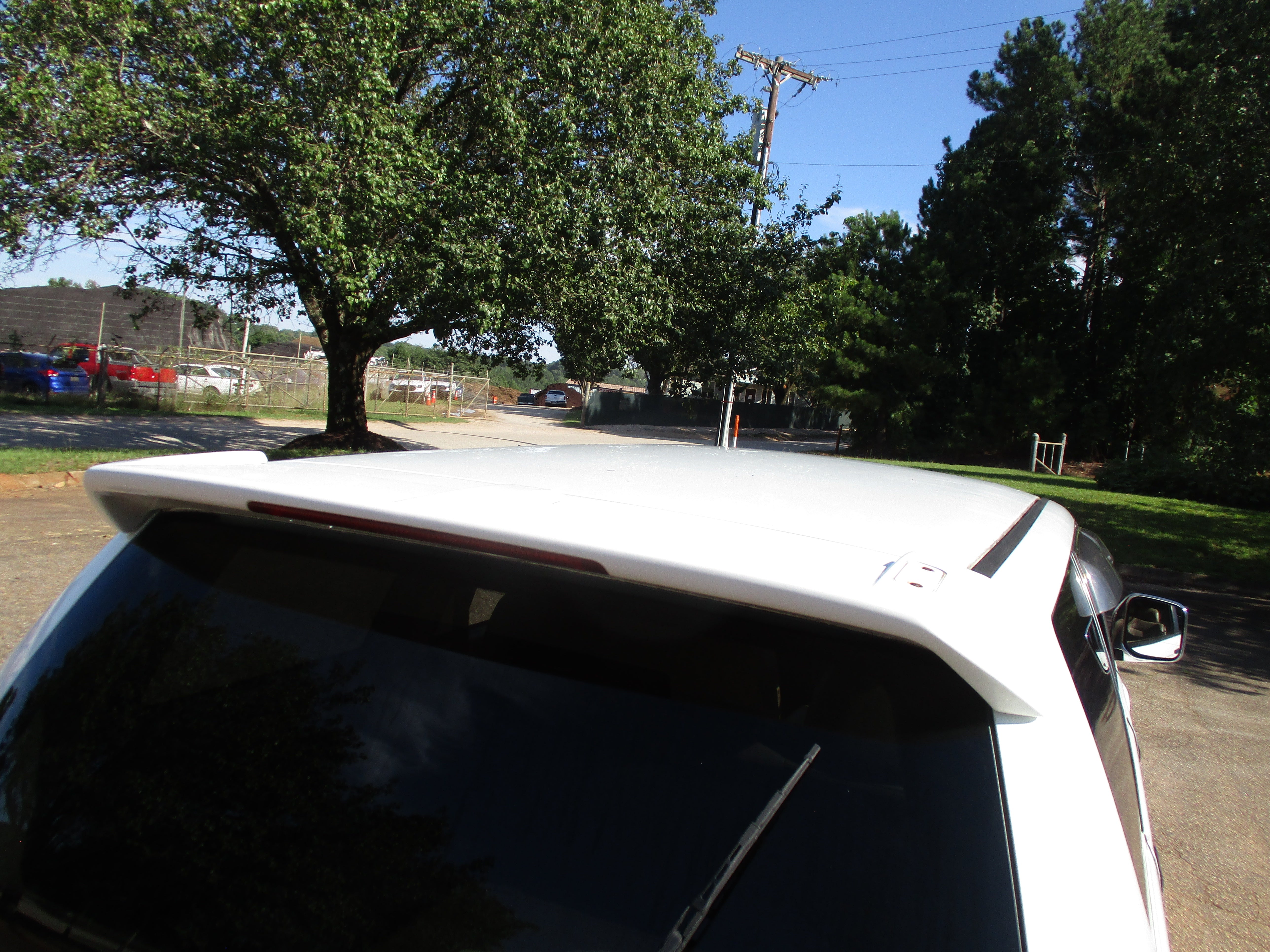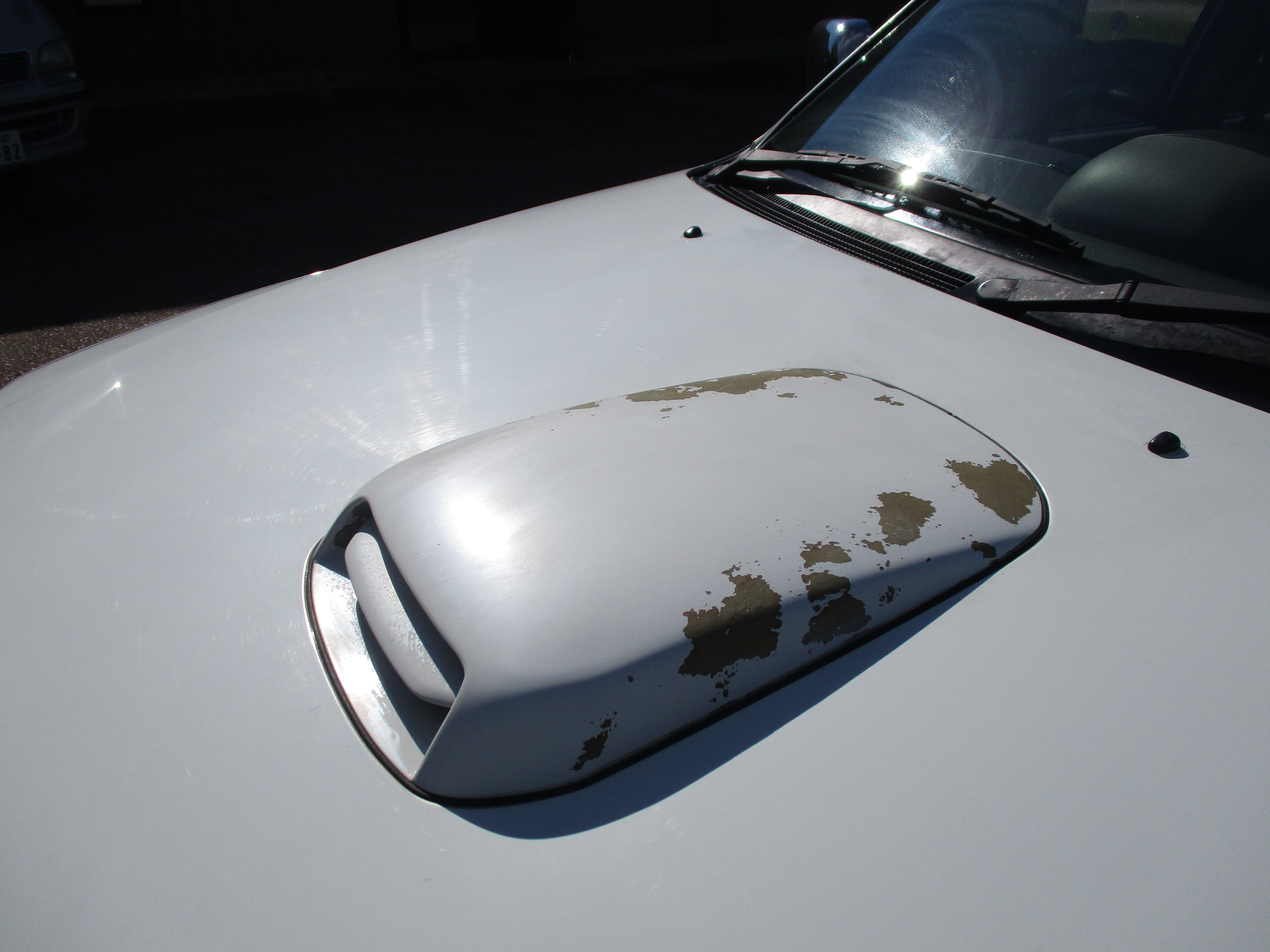 Exterior paint is in good condition, sporty rear spoiler and front grill option, has some scuffs as pictured on front and rear bumpers, small rust starting in front of rear wheel wells by both doors as pictured. Hood Scoop has paint fade and front fender flares paint starting to get dull. Right running board has some wear as pictured. Leather front seats have some wear.