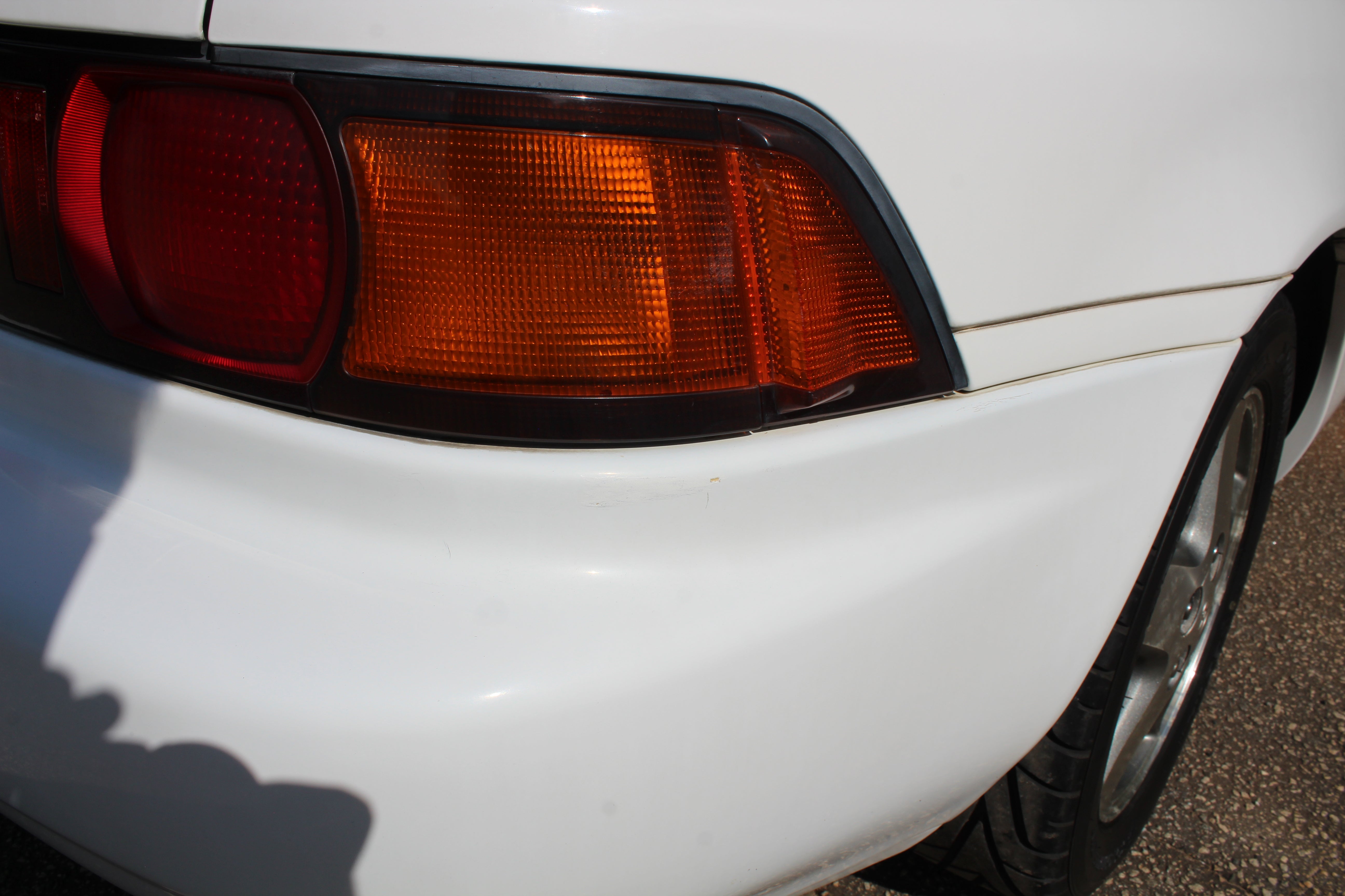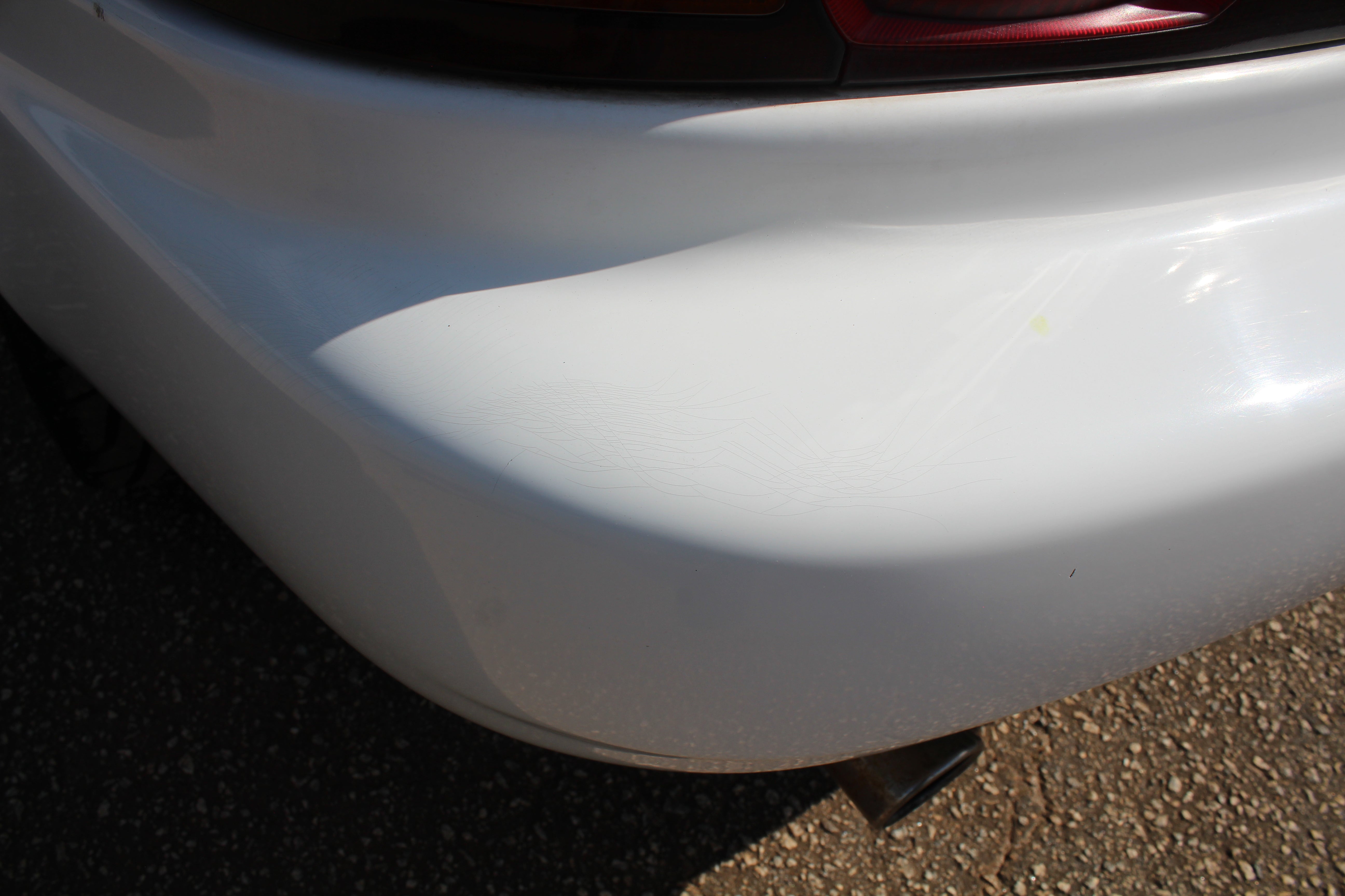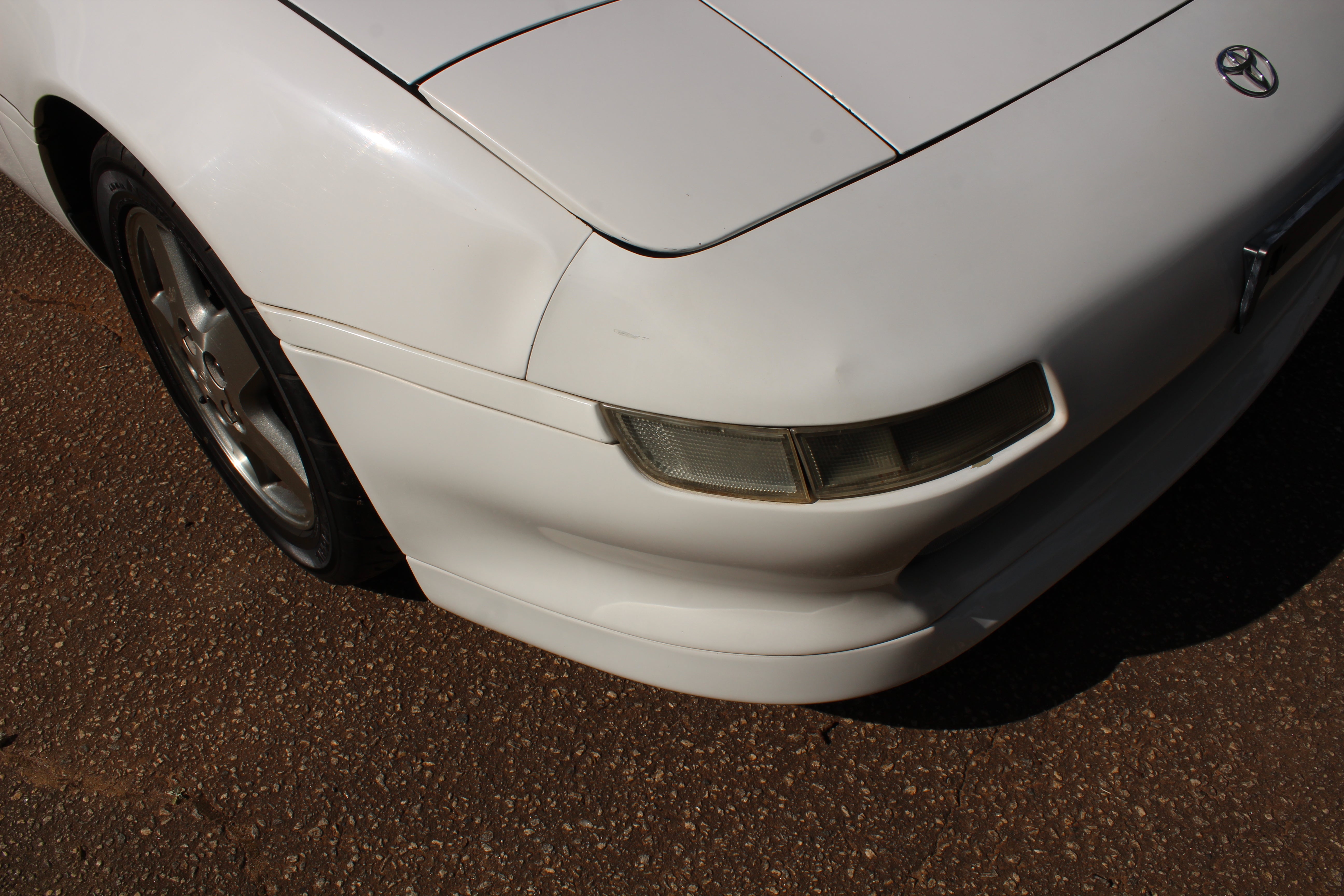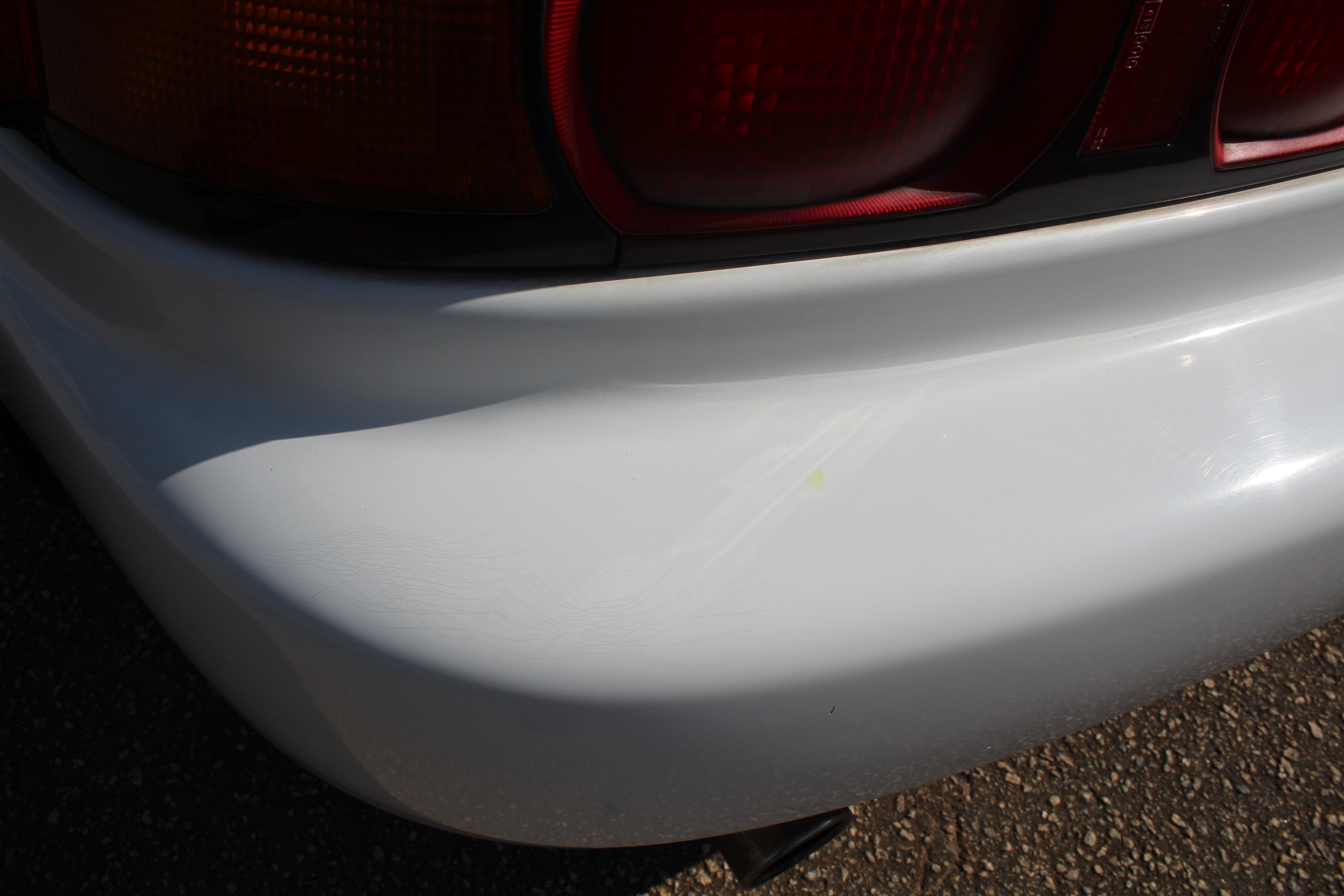 Small scuff on front right corner of bumper, small indent on right fender, small scratch on right induct vent, rear bumper on corner has some paint crack from indent, small scuff on rear left quarter, scuff on front left bumper corner and nicks on front lip. All flaws are pictured.