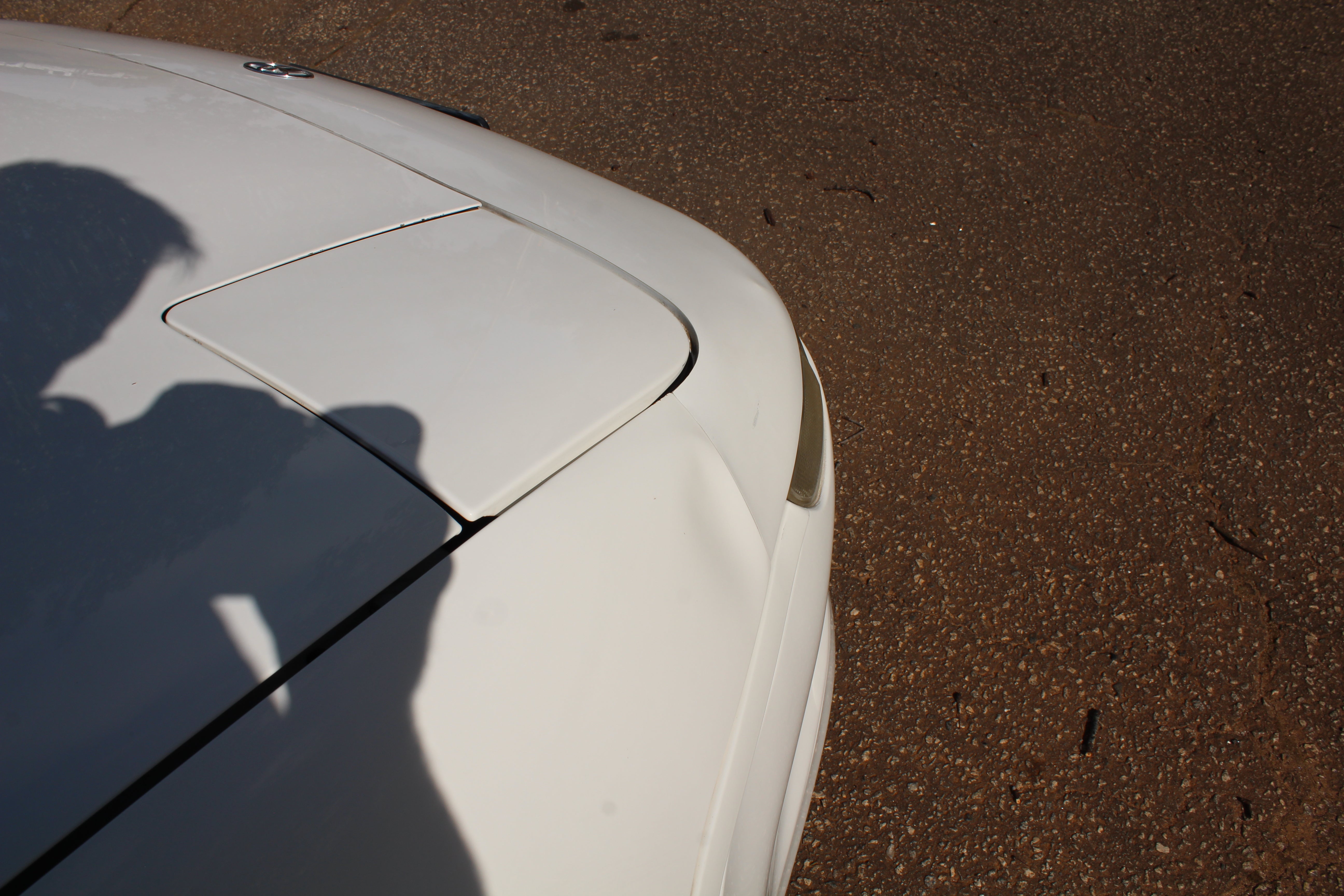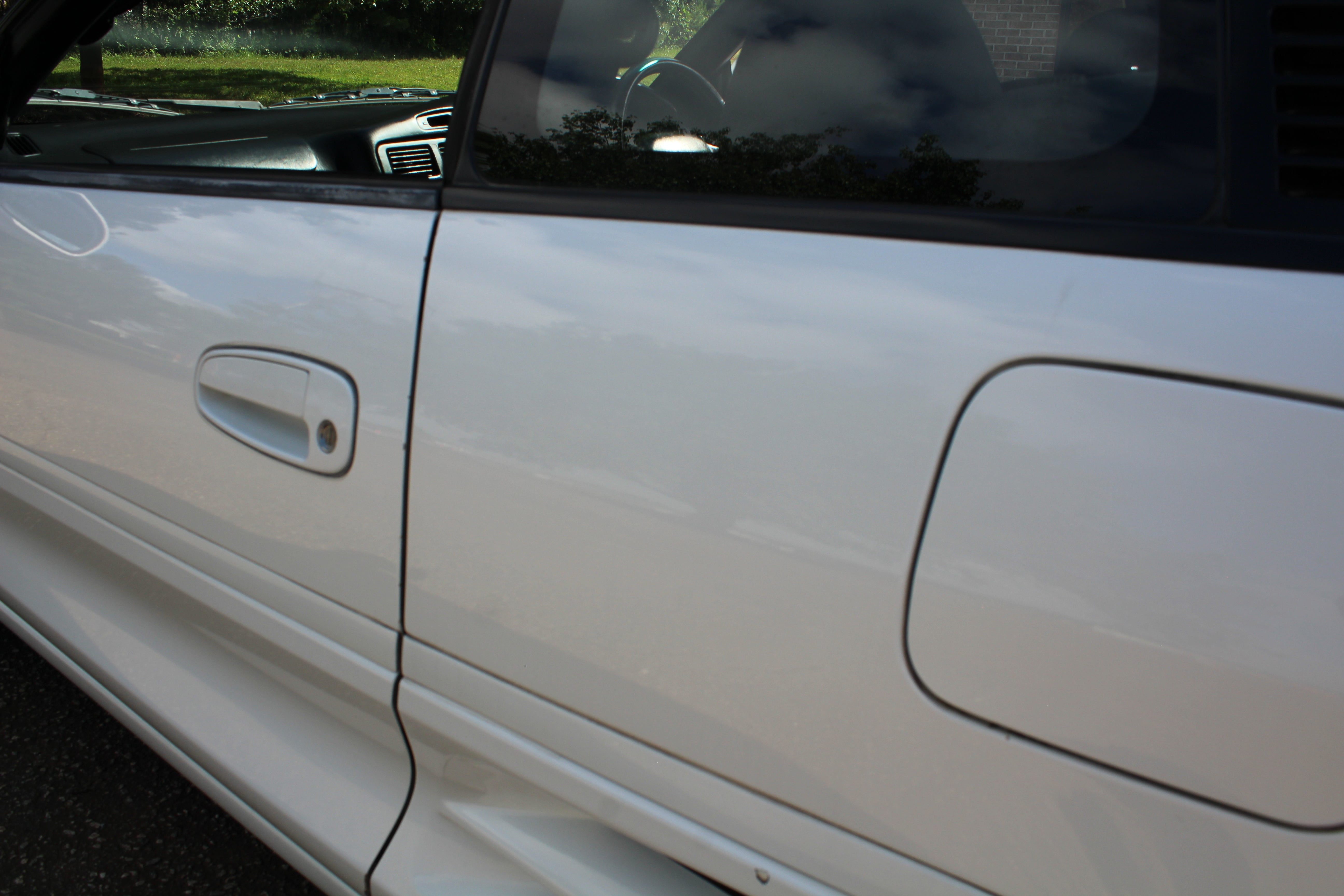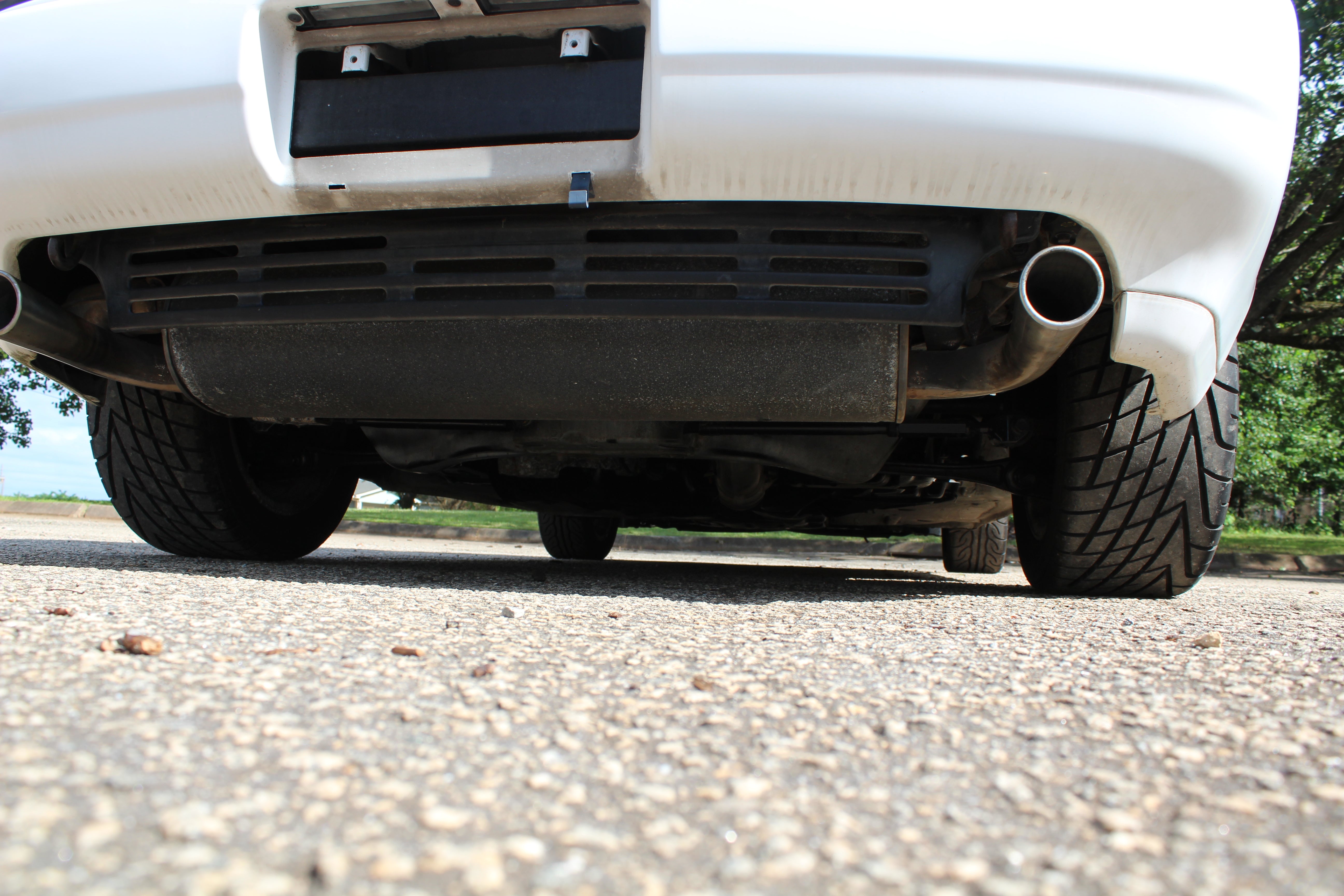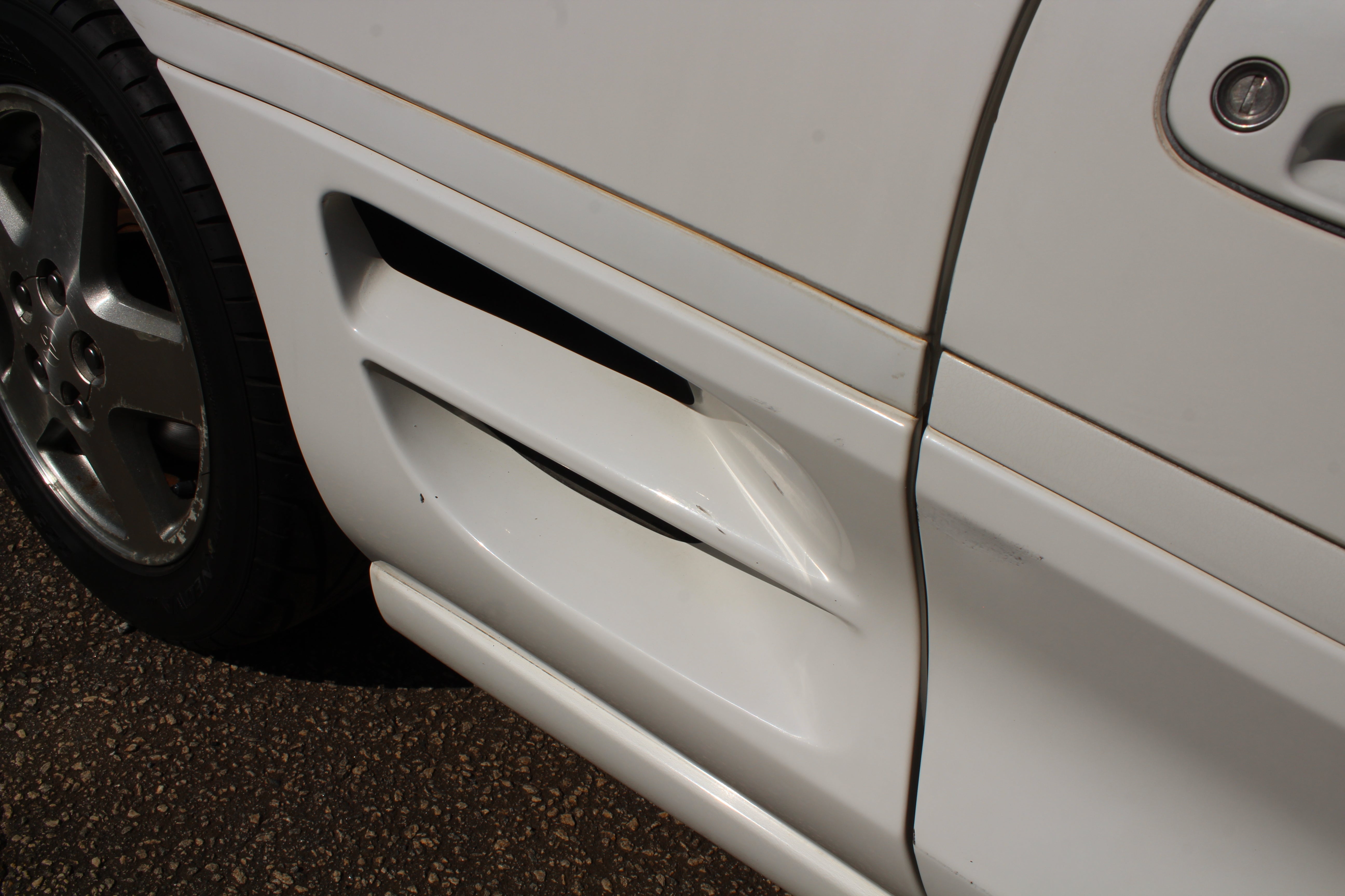 Small scuff on front right corner of bumper, small indent on right fender, small scratch on right induct vent, rear bumper on corner has some paint crack from indent, small scuff on rear left quarter, scuff on front left bumper corner and nicks on front lip. All flaws are pictured.