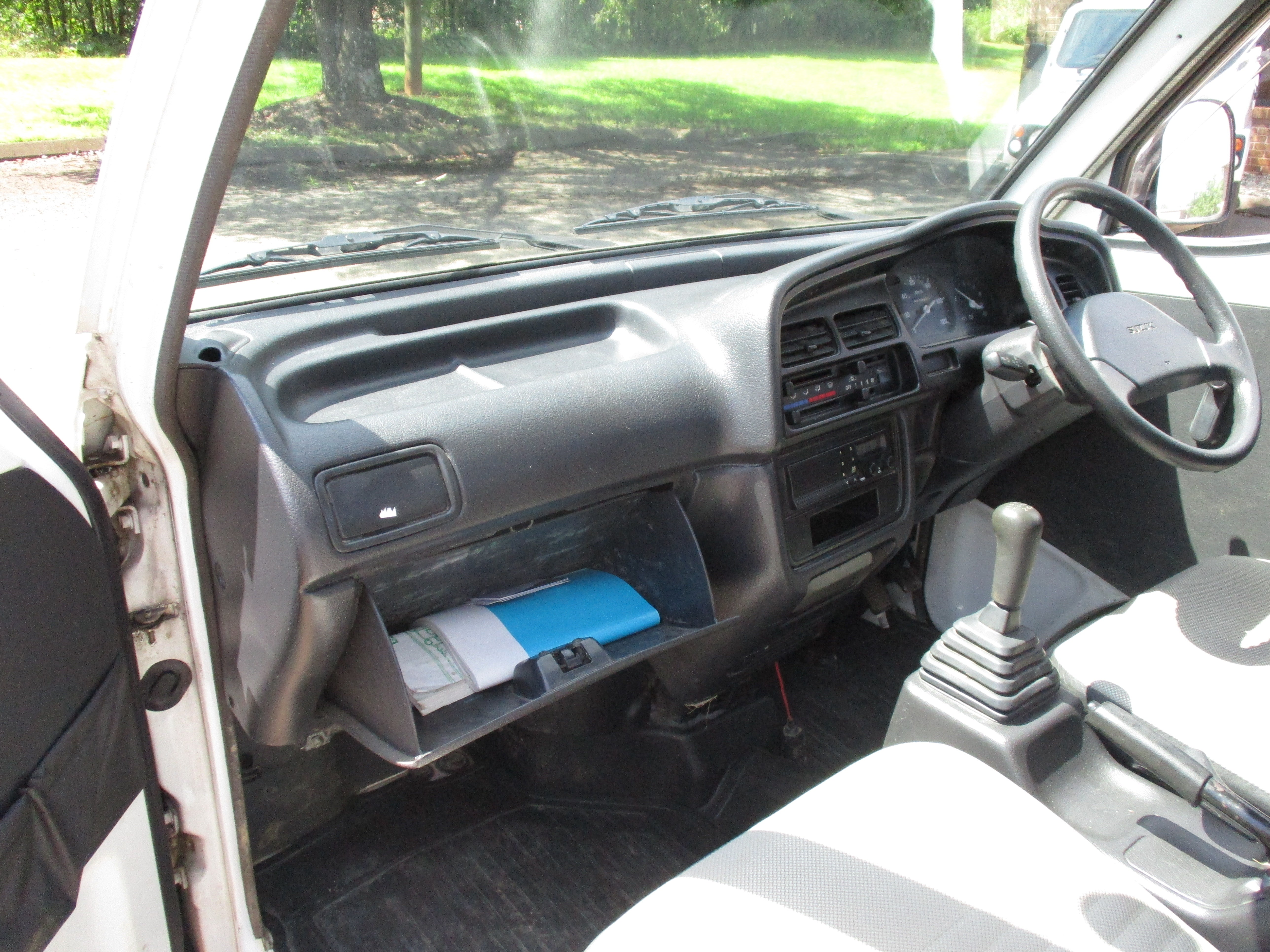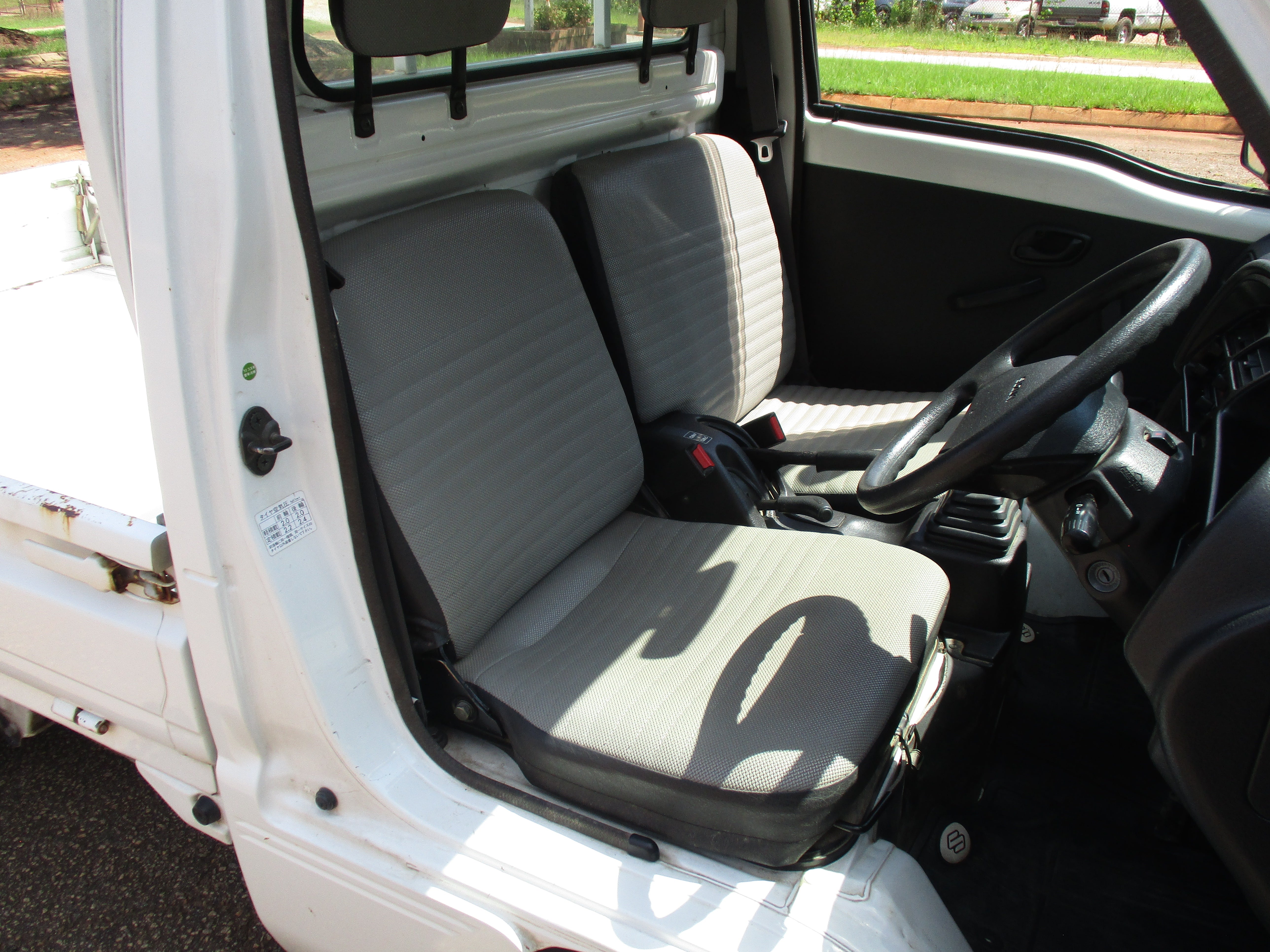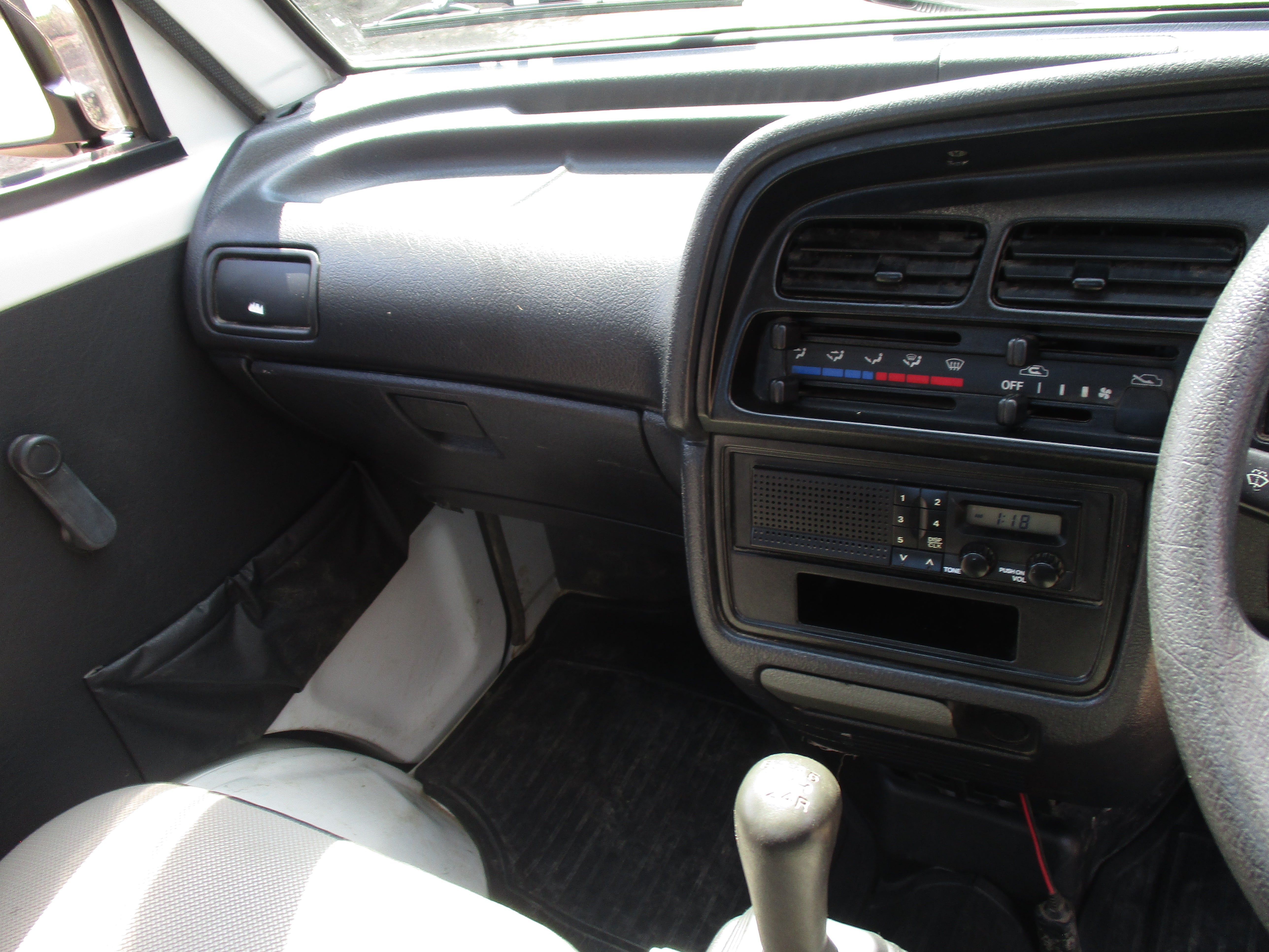 3 Cylinder 660cc engine, 5 Speed Manual Transmission 4WD with rear locking diff button and 2WD/4WD, has a extra low gear, these trucks are great to have especially if you have some property to work on. They're work horses and do not come with AC. Has Heat and everything works