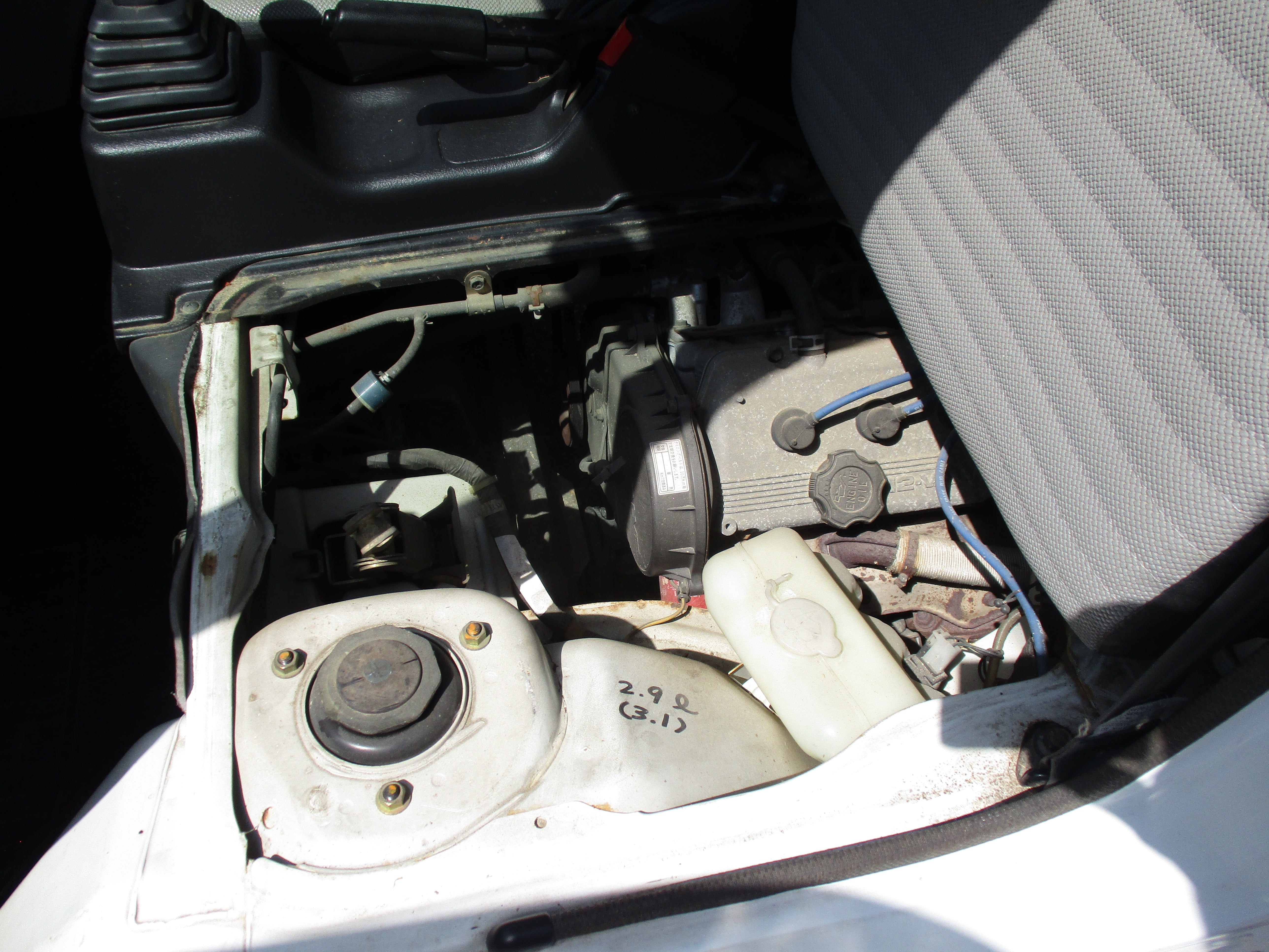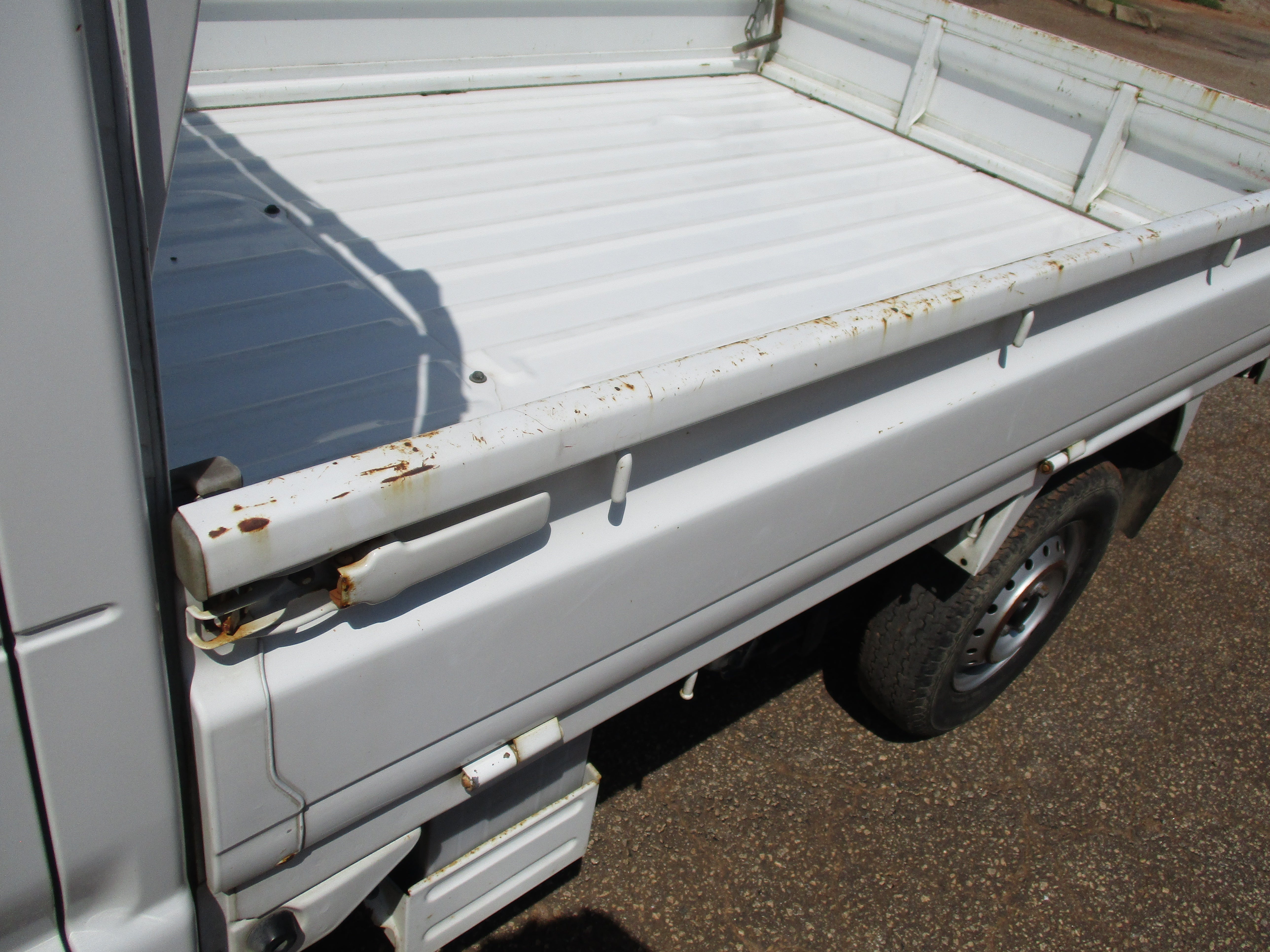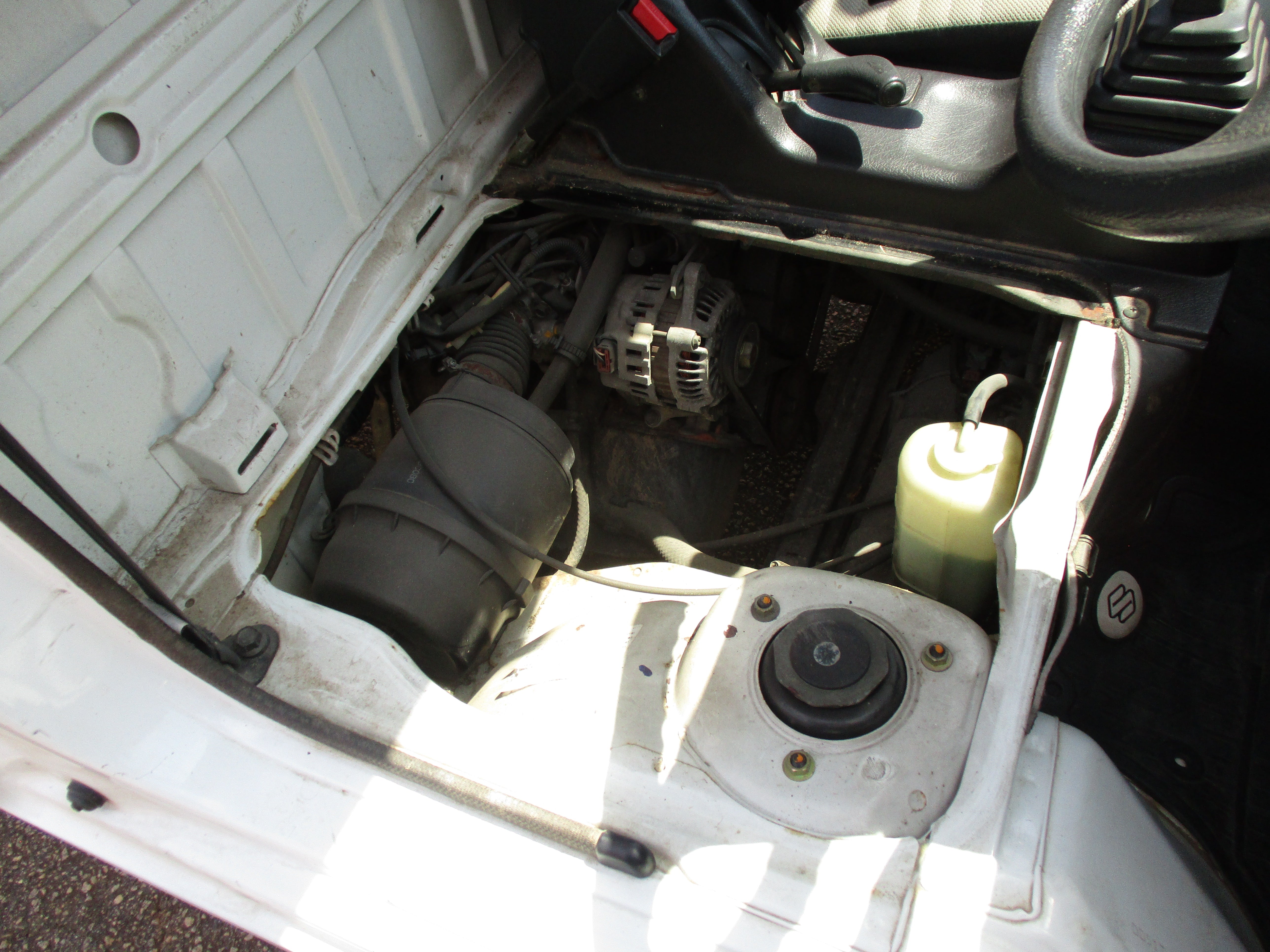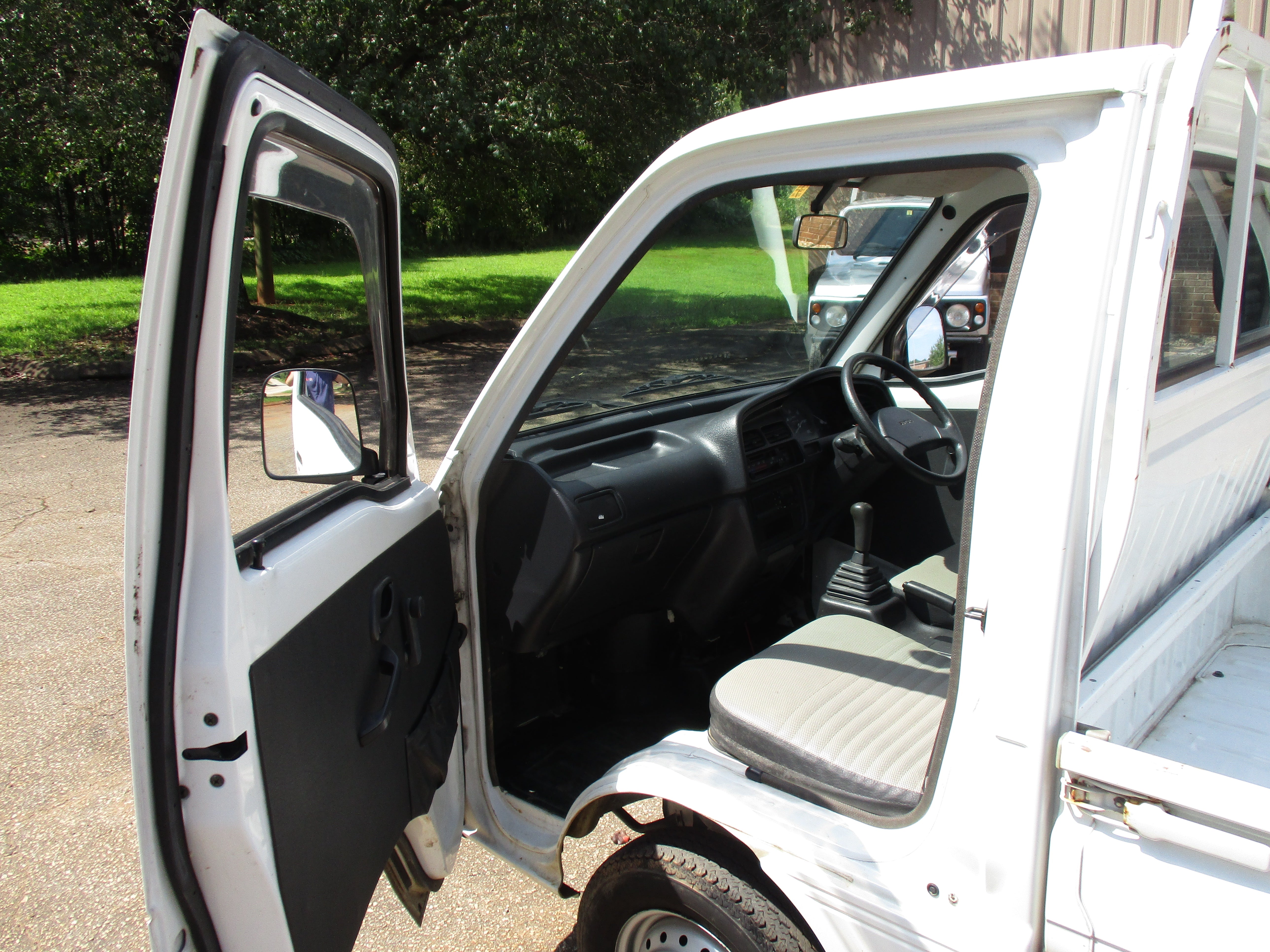 3 Cylinder 660cc engine, 5 Speed Manual Transmission 4WD with rear locking diff button and 2WD/4WD, has a extra low gear, these trucks are great to have especially if you have some property to work on. They're work horses and do not come with AC. Has Heat and everything works