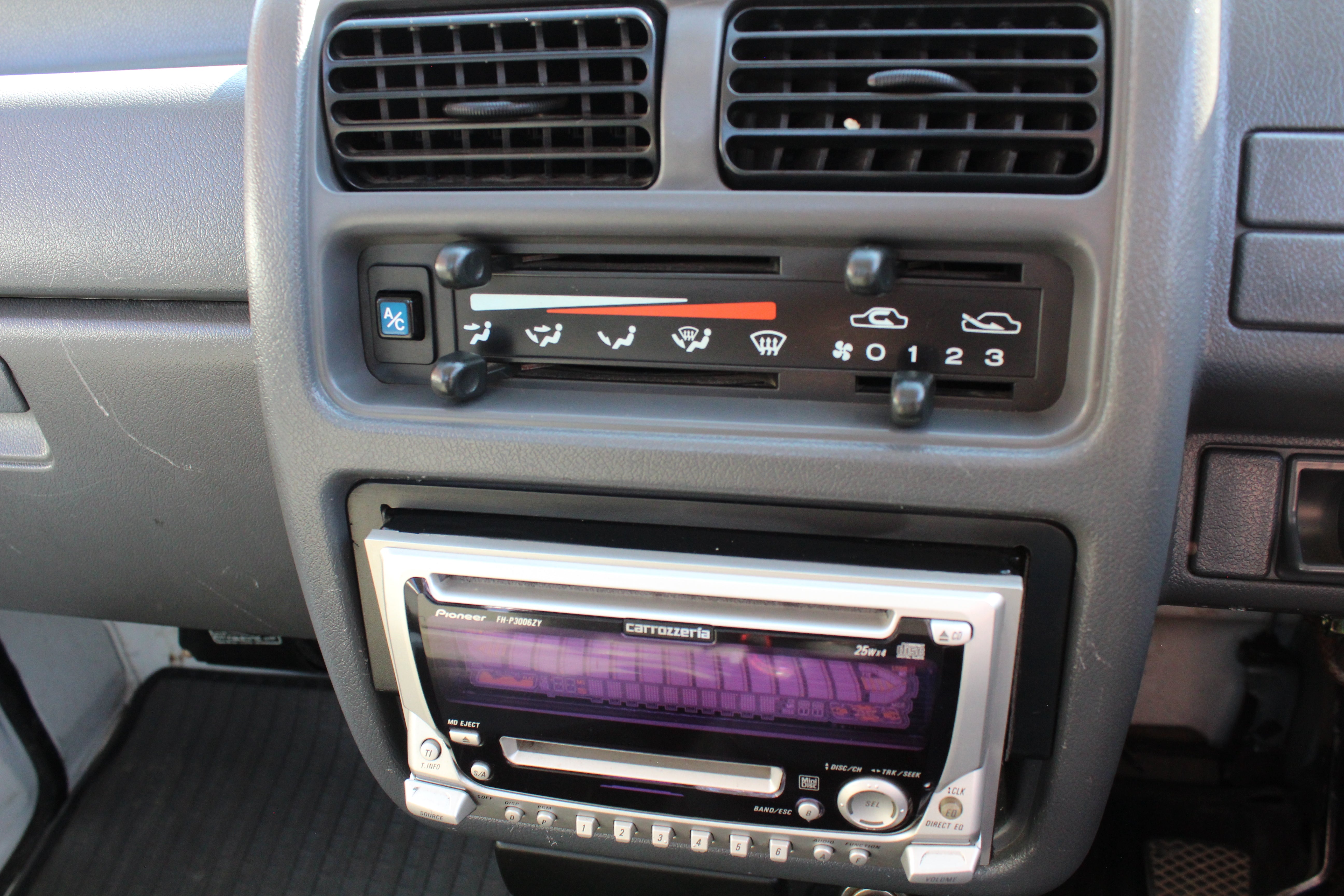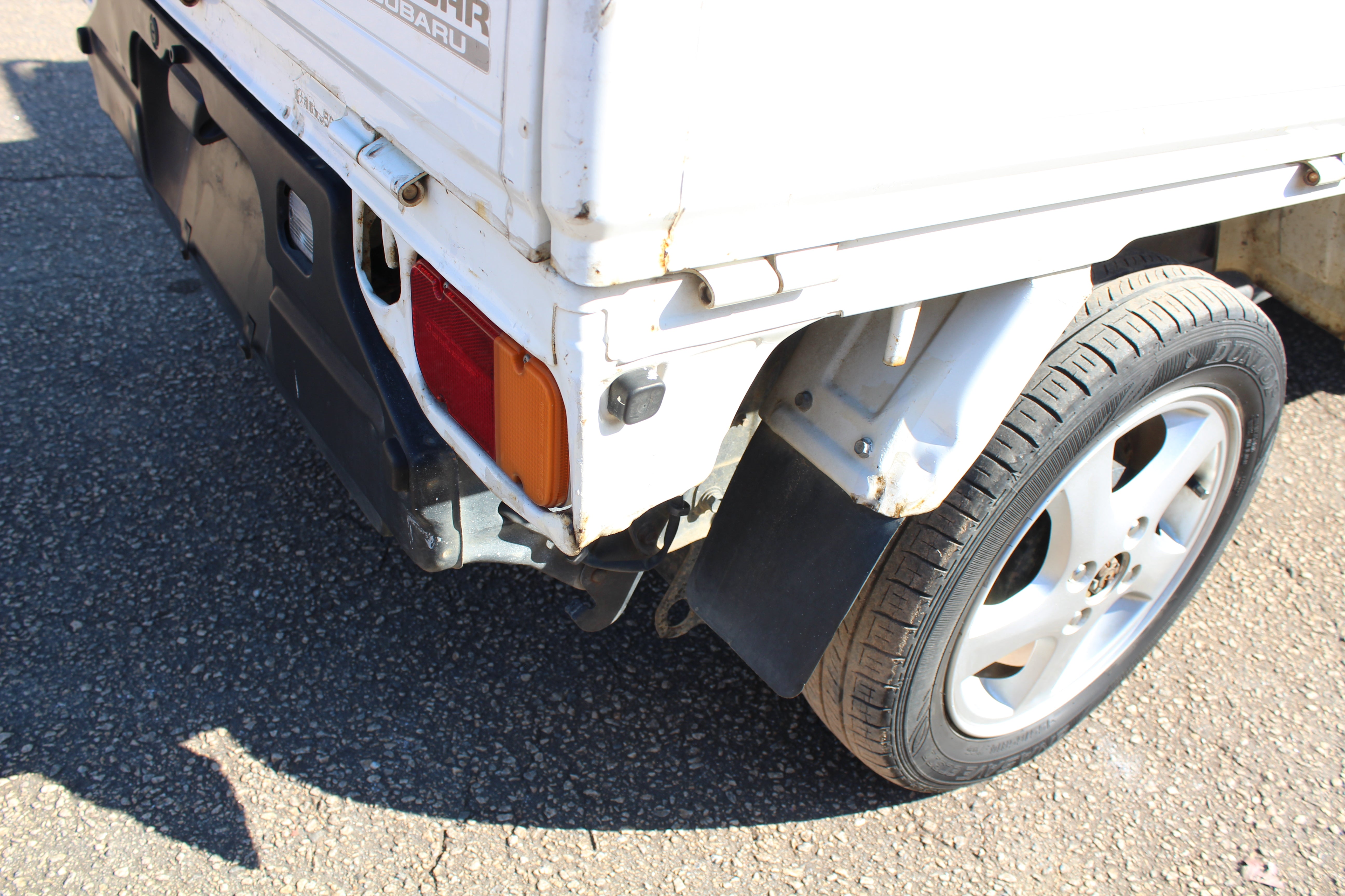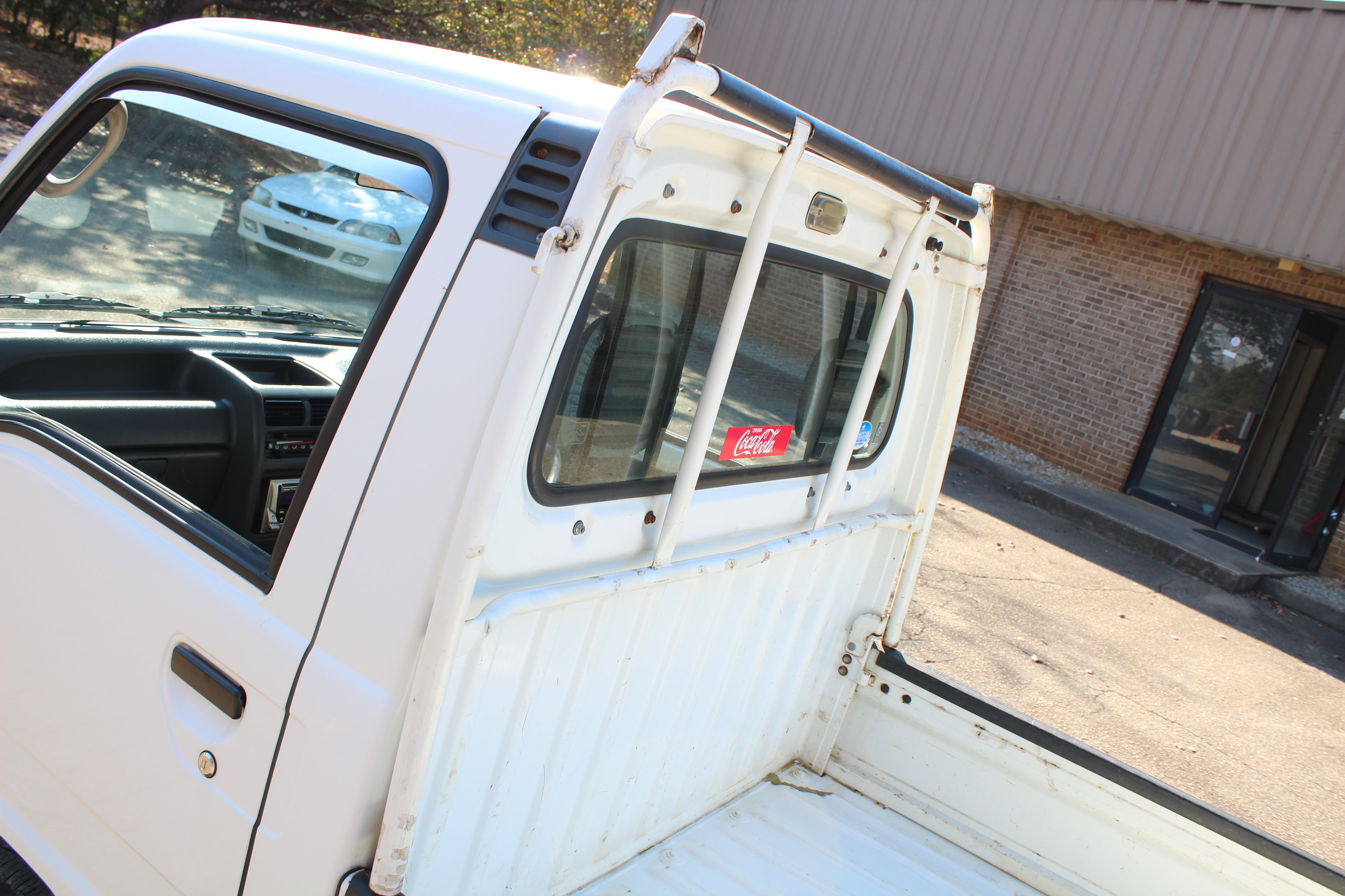 Truck is in good condition, someone put a aftermarket radio and speakers in, also upgraded to Subaru 14" wheels, truck has some scuffs and scratches. driver seat has some wear, rear right fender has some damage, rear corners of bed have some scuffs and left side bed has some scuffs, dent near gas door, and some scuffs and surface rust on head ache rack as pictured. Mirrors also have paint fade. Please look at all pictures carefully as all flaws are pictured.