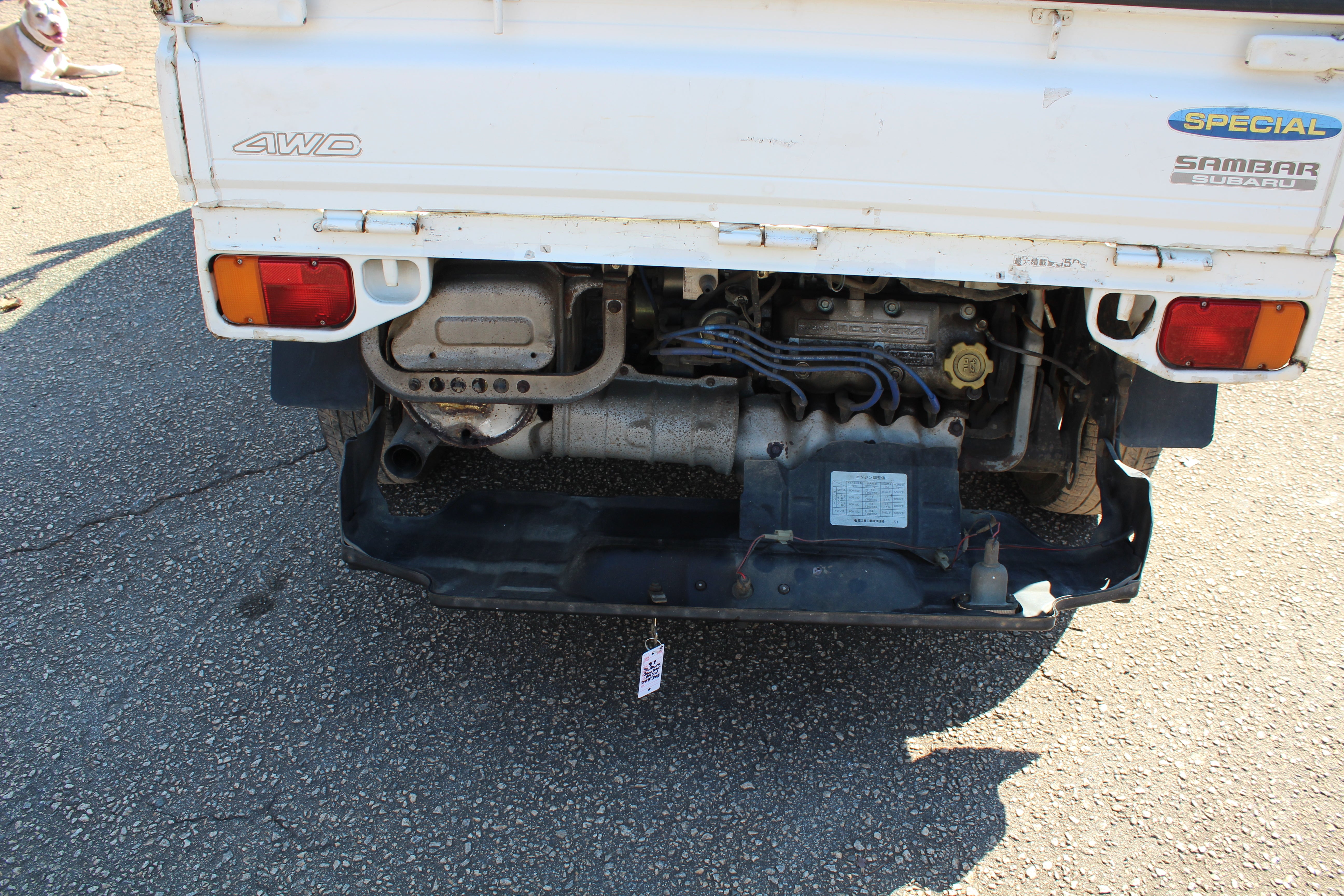 Engine is in the rear for good weight distribution, 5 Speed Transmission with a Low gear locking front diff, 4WD can be turned on with the push of a button in the center of the shifter. Bed sides fold down for easy access, great turning radius. Fun little truck to drive, great for farms, can do 65mph, road legal. This truck also has AC which is rare and works.