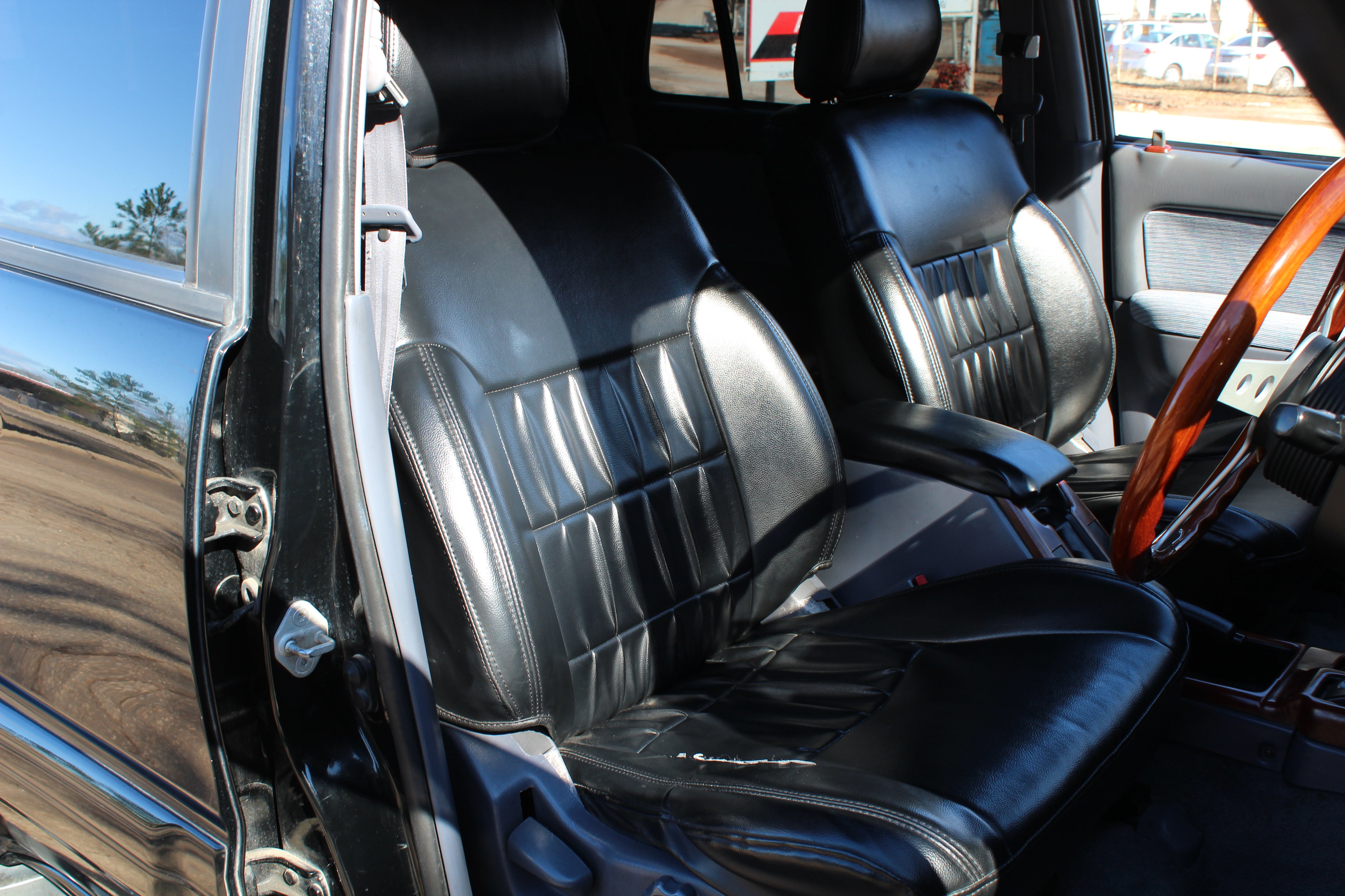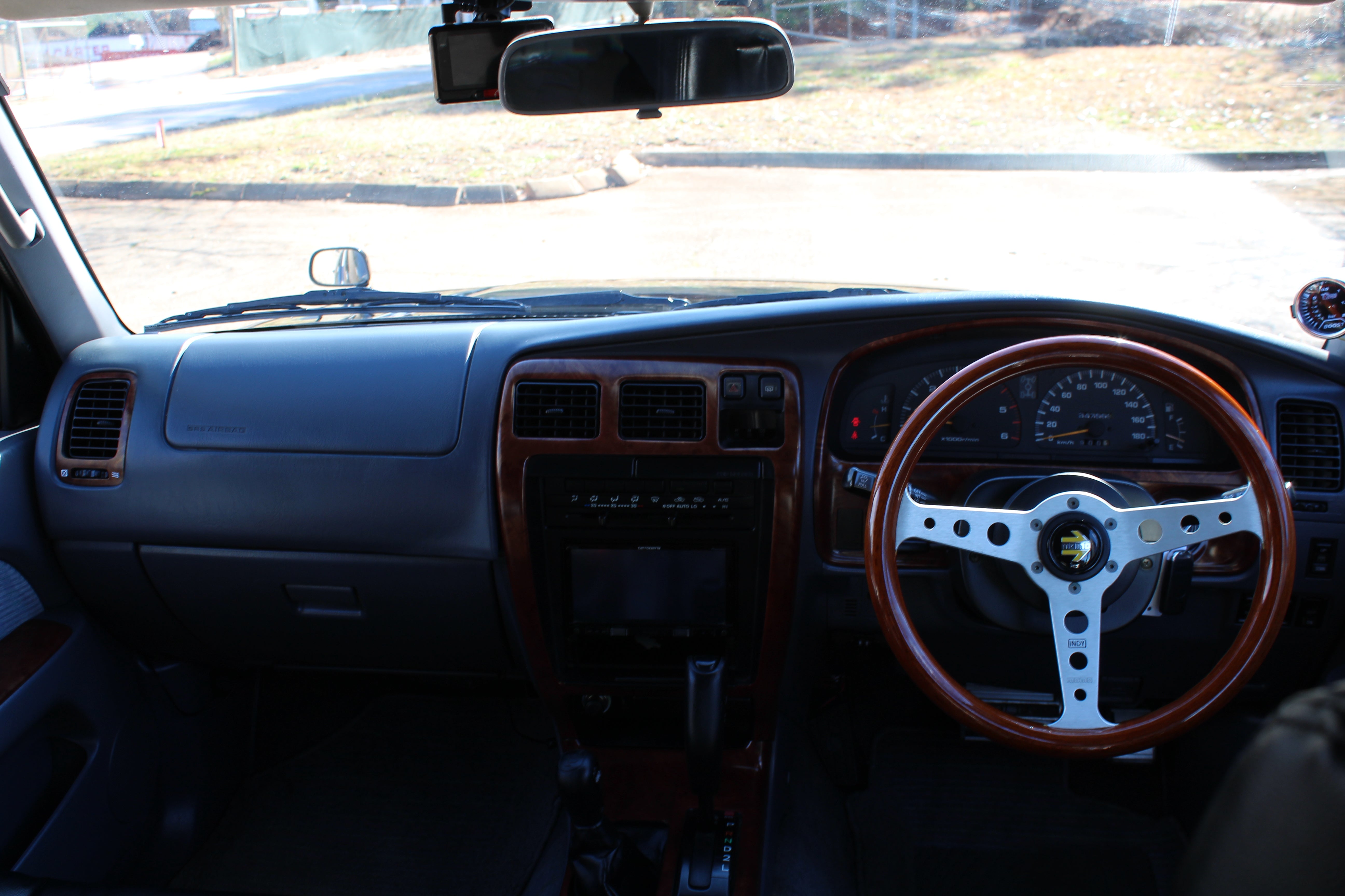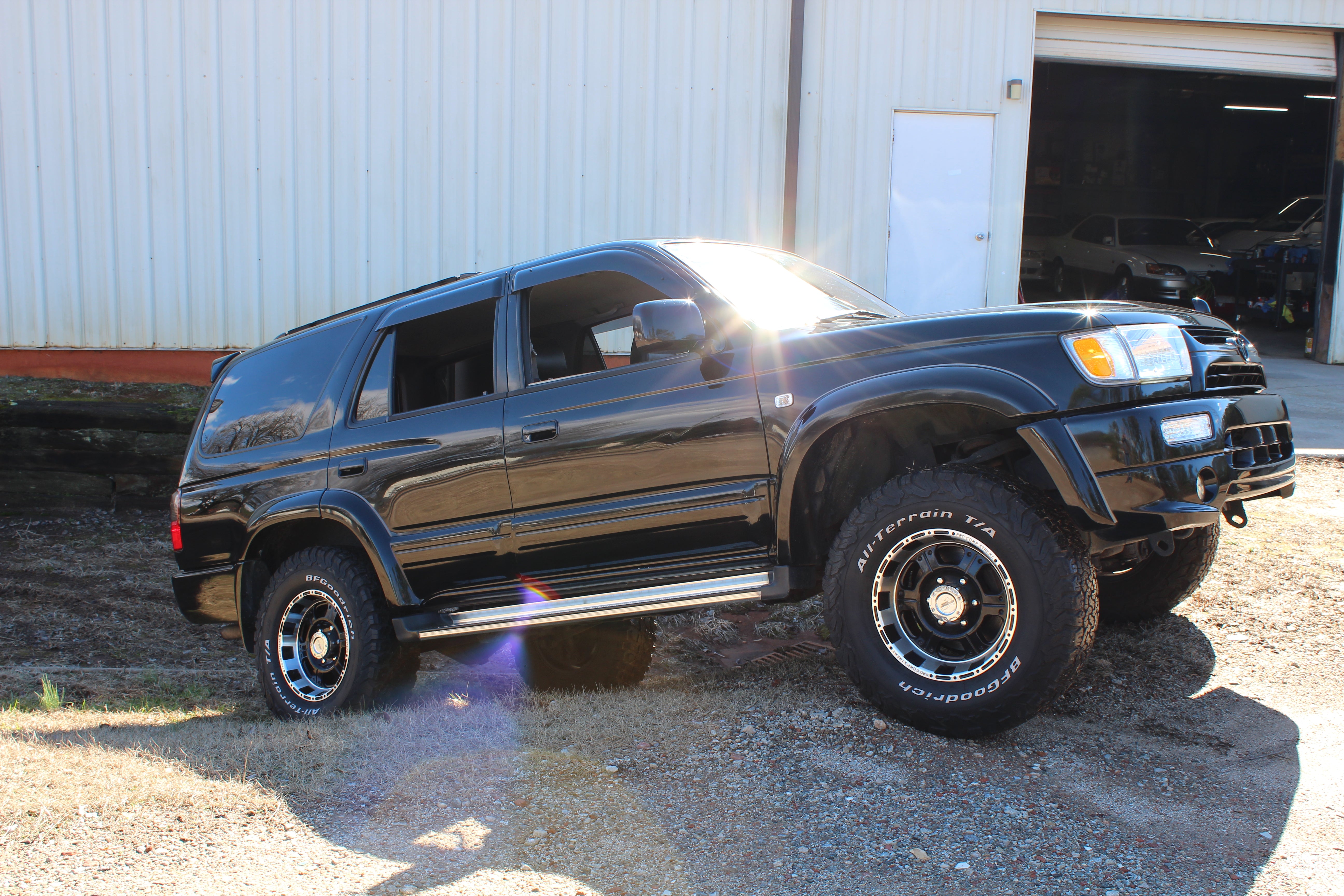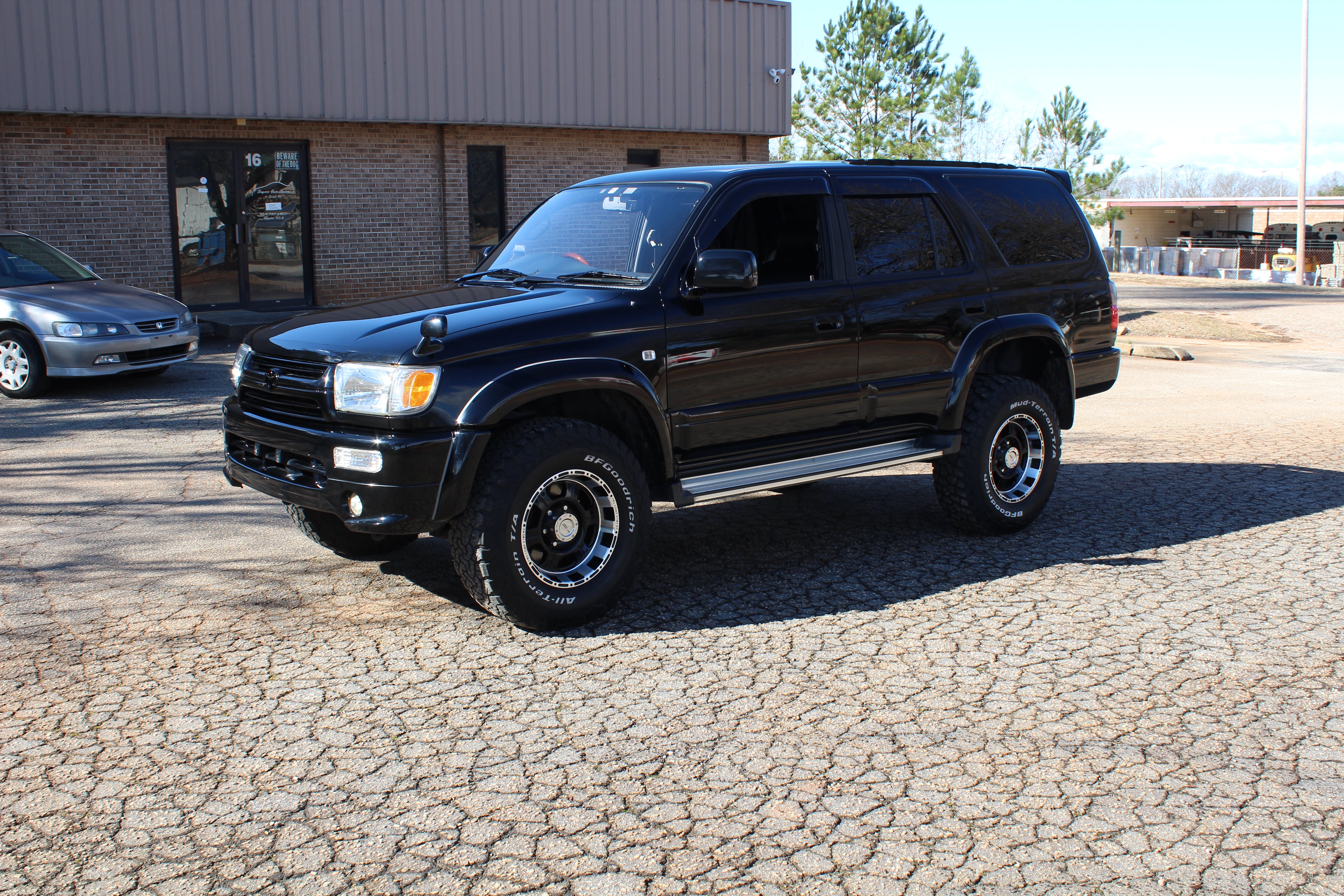 Has Pro Comp aftermarket 16" wheels with 265/75r16 bfgoodrich all terain tires. Has a lift kit, came like this from Japan, cold air intake, momo woodgrain steering wheel, seats have leather seat covers and original seats look good underneath, LED Headlights, Aftermarket led fog lights, Aftermarket Headunit, Has Hitch. Had a full service done 30k miles ago
