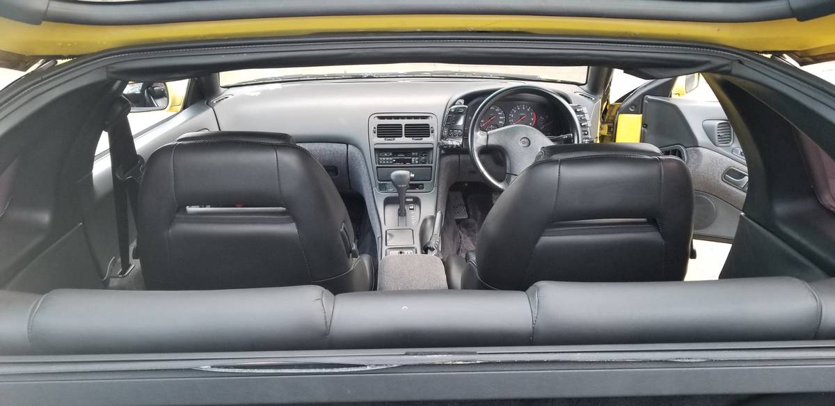 It's a 2+2 meaning it has back seats which was not a option in America with the factory Twin Turbo drivetrain, Driver Power Front Seats. Black Leather Interior, T-Tops, Cruise Control, A/C, Power Steering, factory Sony CD player, all the bells and whistles with this one.